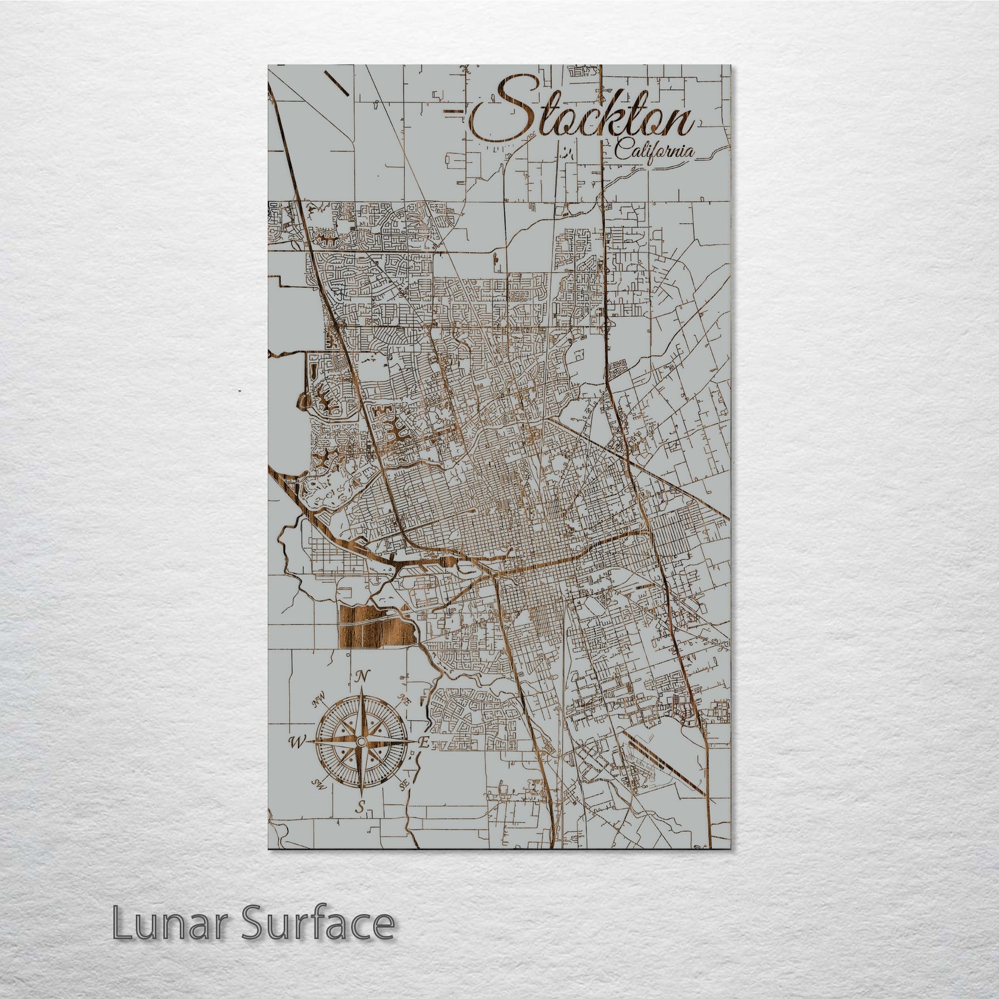 This is a street map of Stockton, CA designed by Fire & Pine artists.