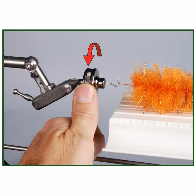 The Turbo Spin is an accessory that placed in the jaws of any type of vise allows, thanks to a precision ball bearing, an ideal rotation to create dubbing brushes.