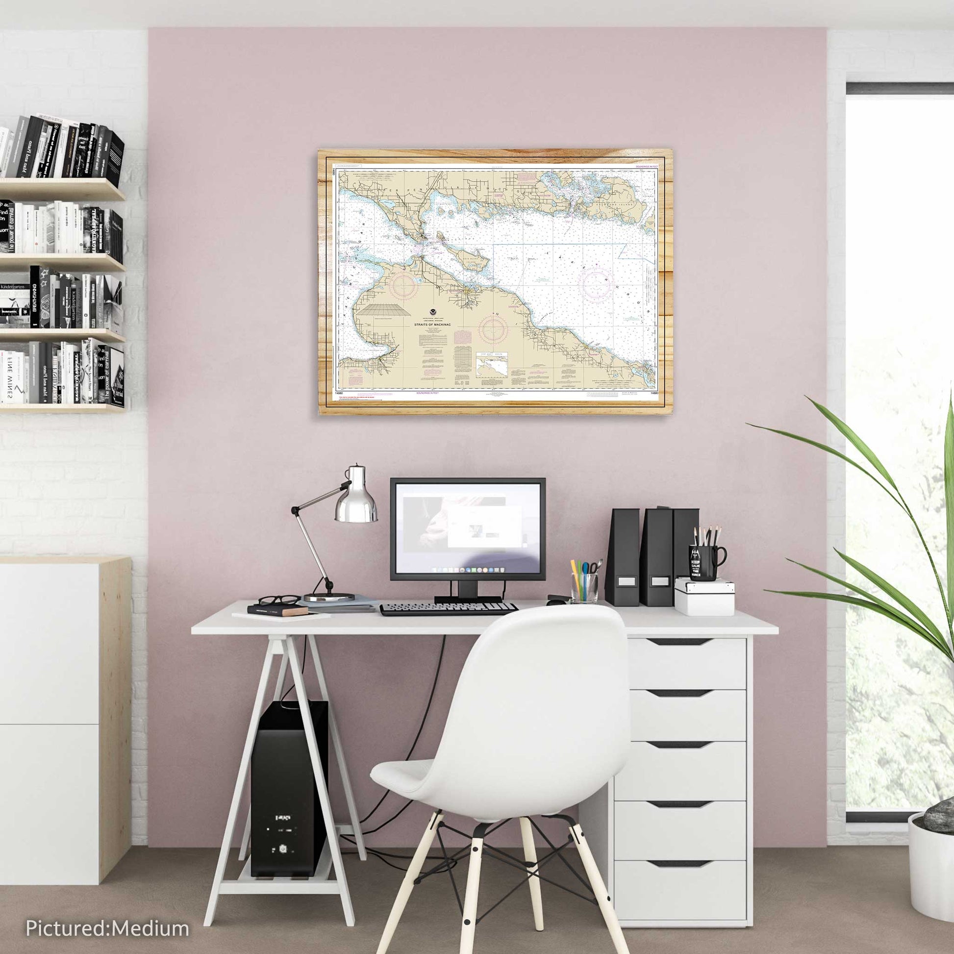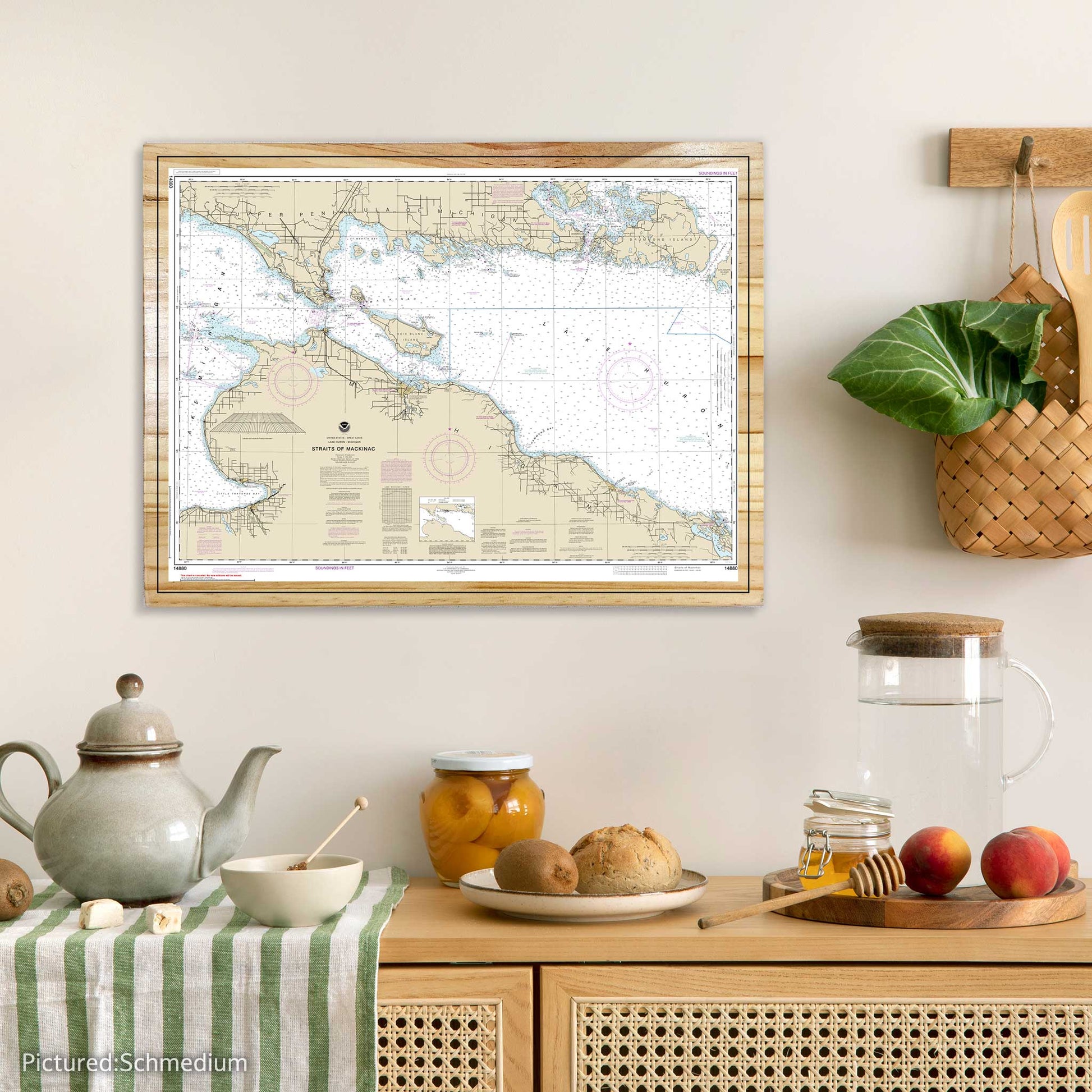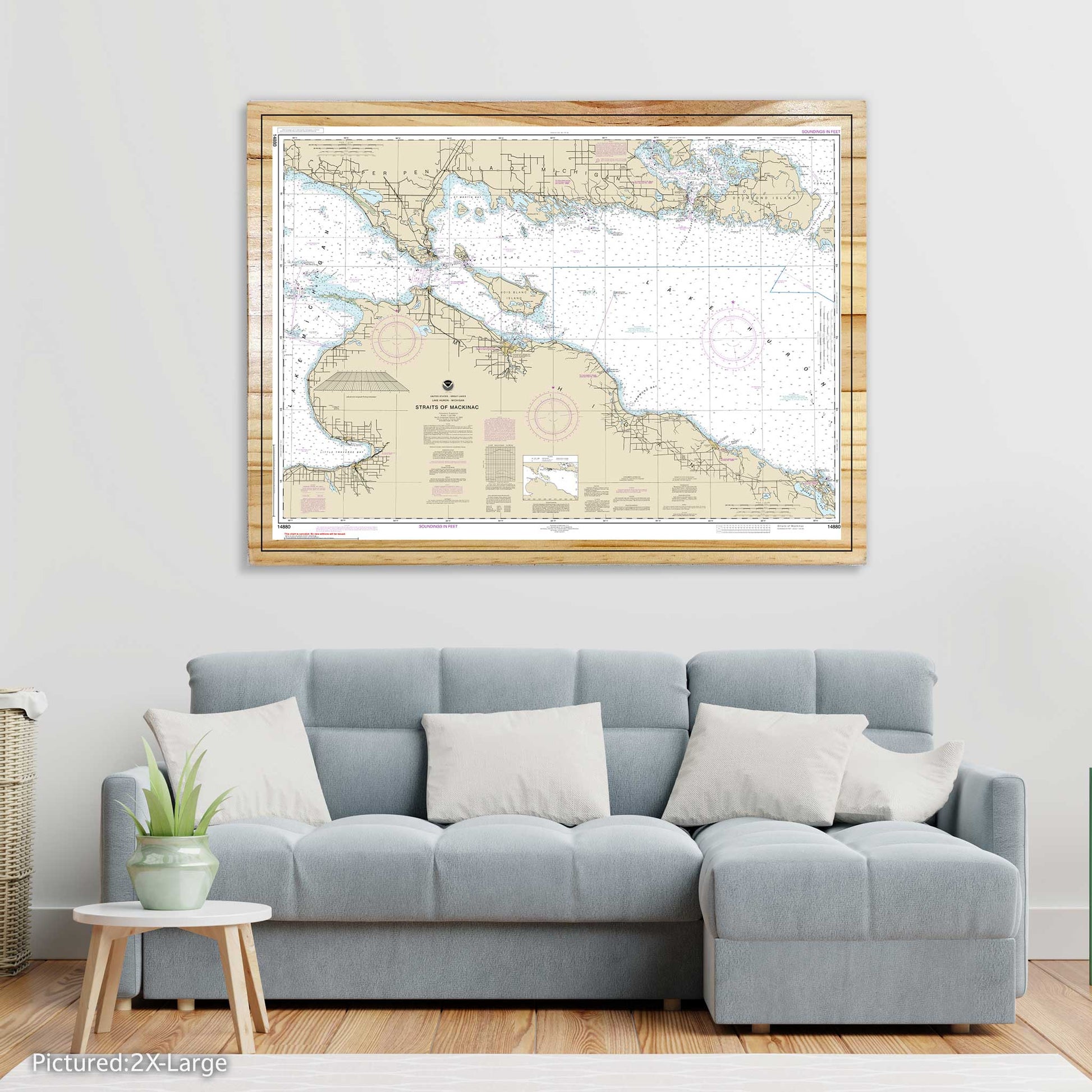 AN ELEGANT TOUCH TO ANY SETTING: This Straits of Mackinac Nautical Map adds a sophisticated and maritime charm to any part of the home or office. Whether placed in the living area, study, private nook, or even unconventional spaces like the kitchen or bathroom, it enhances the ambiance with its unique appeal.