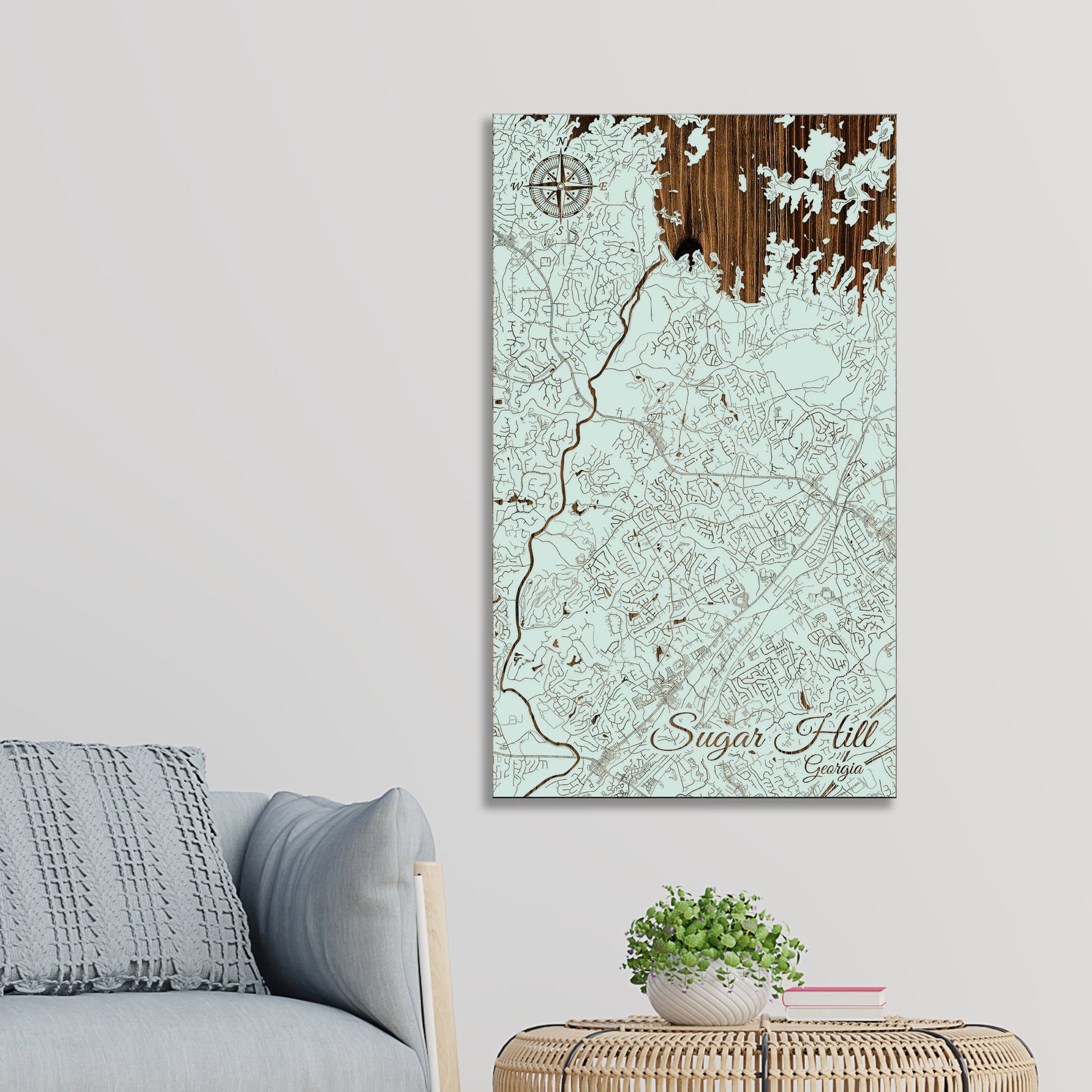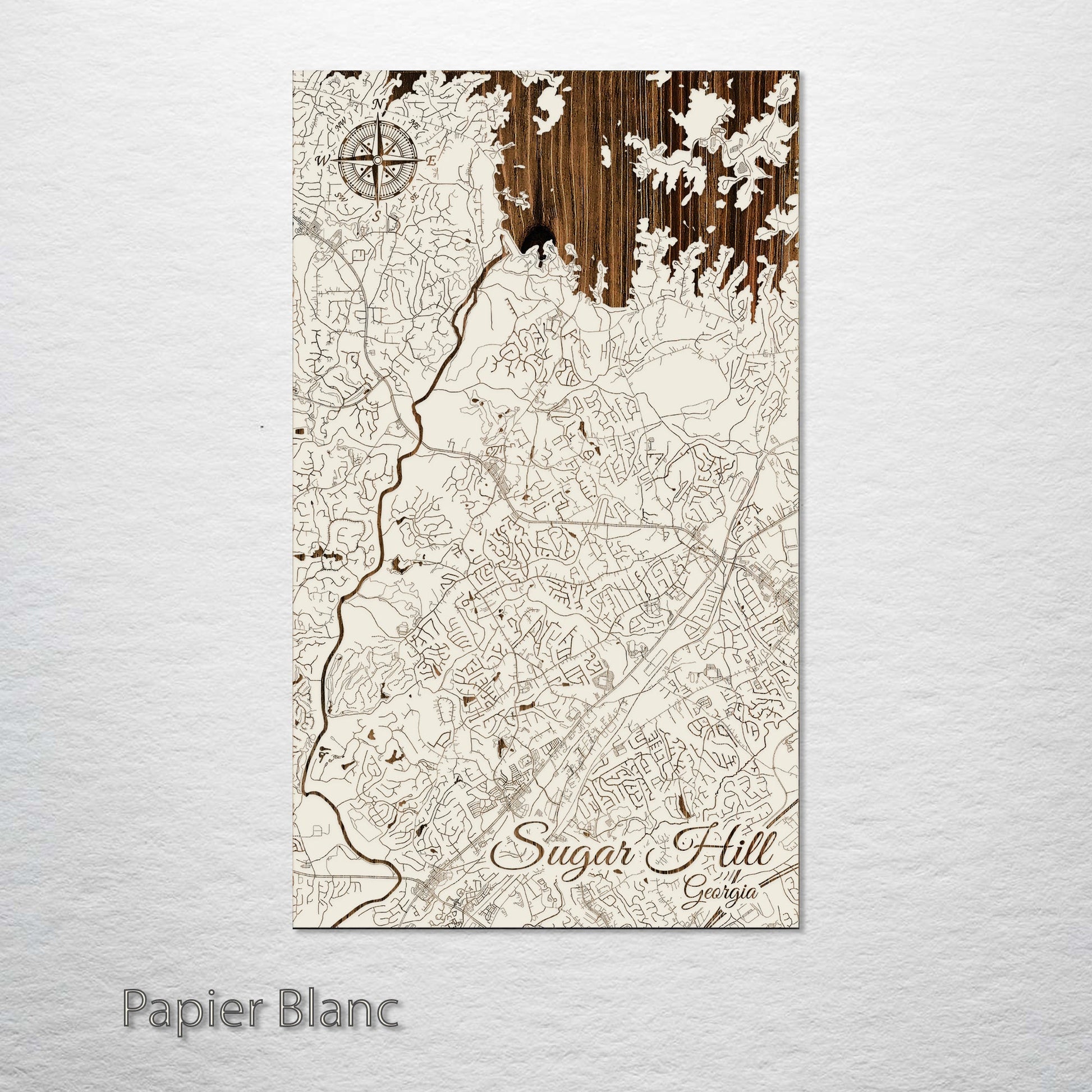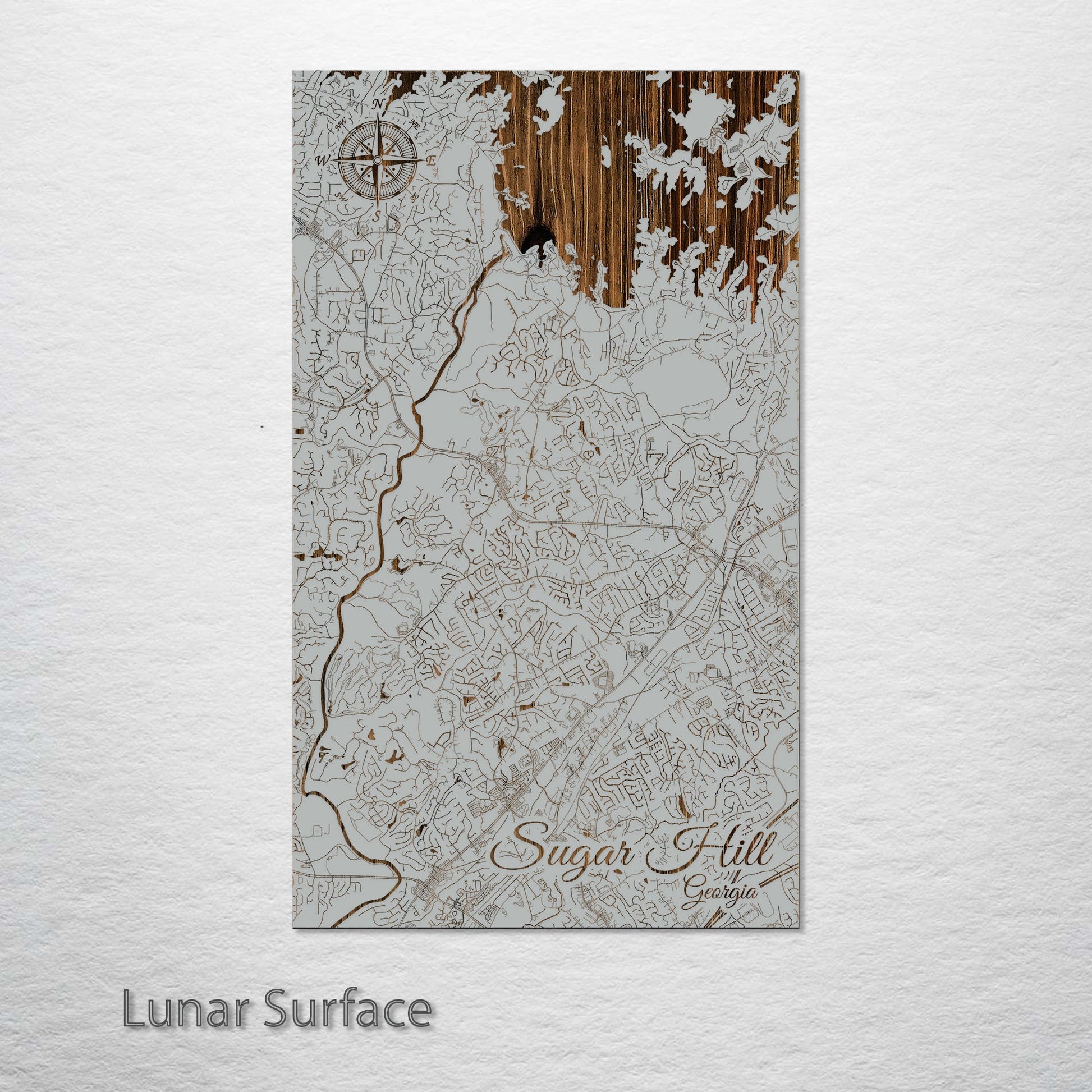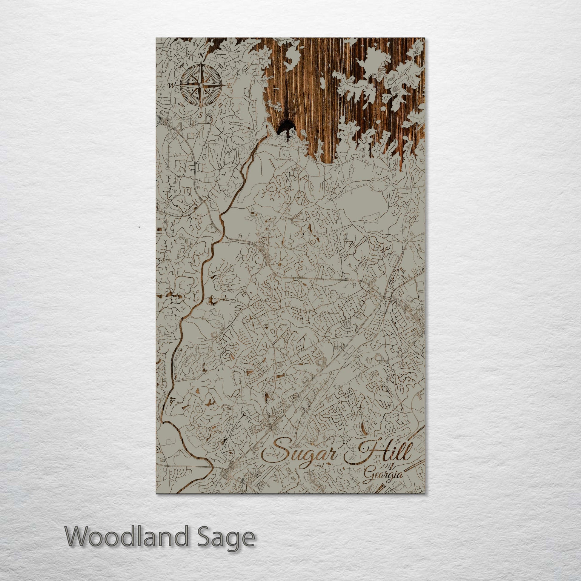 This is a street map of Sugar Hill, GA designed by Fire & Pine artists.