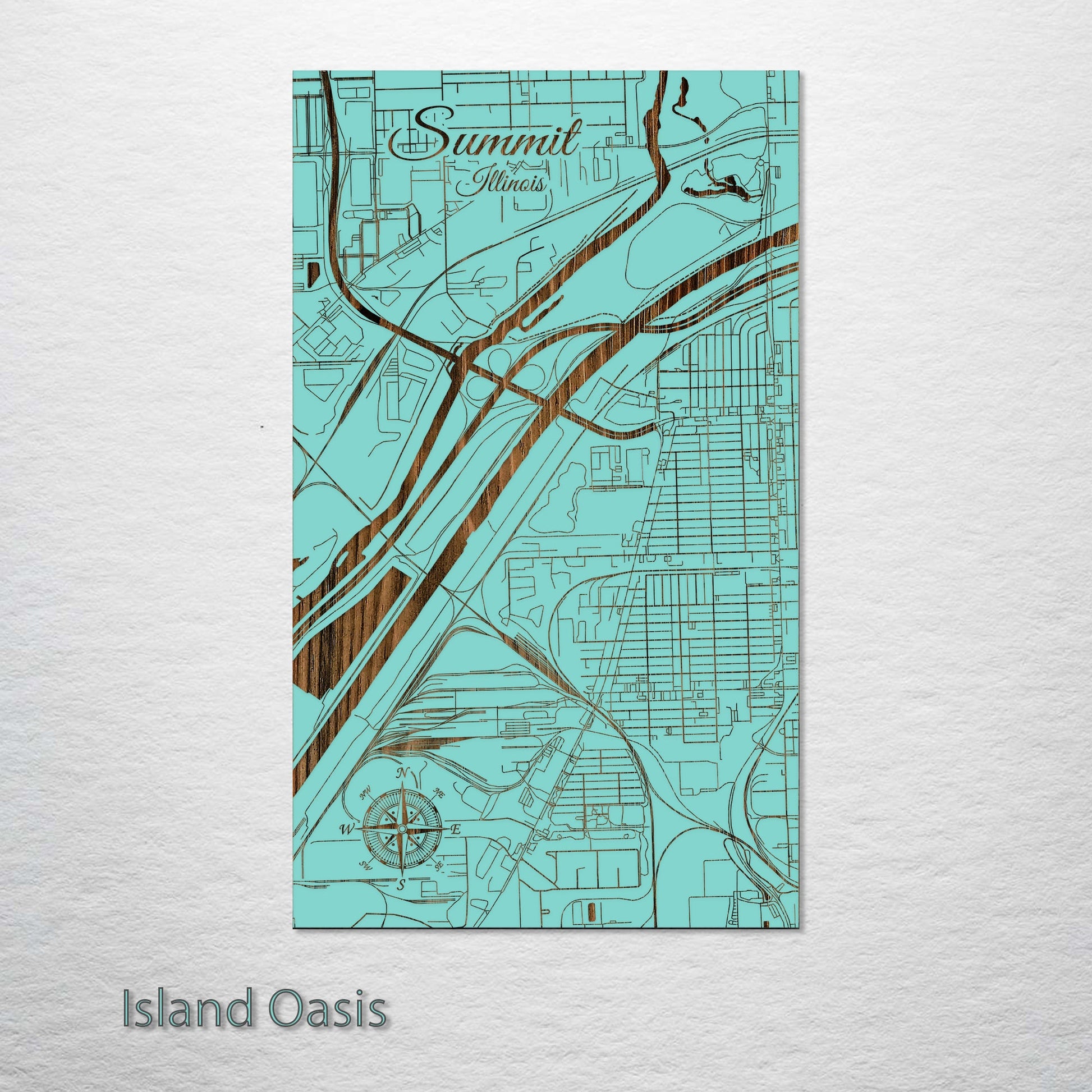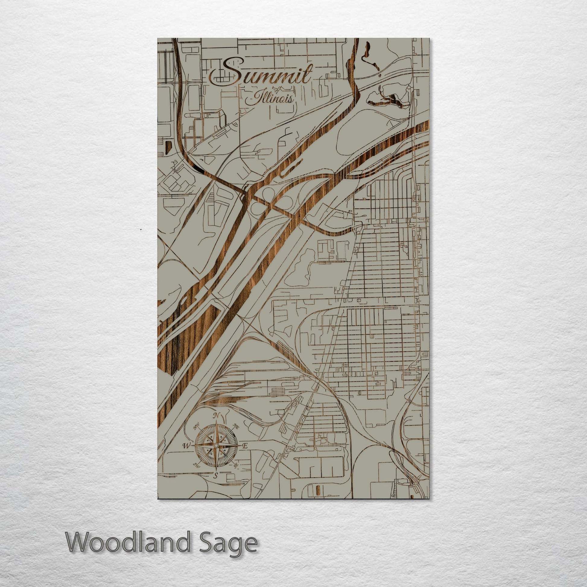 Summit, Illinois Street Map: Crafted from high-quality pine wood, this detailed wood-engraved map showcases the street grid of Summit, Illinois. It's an excellent conversation starter for those interested in cartography, Illinois towns, or unique wall decor.