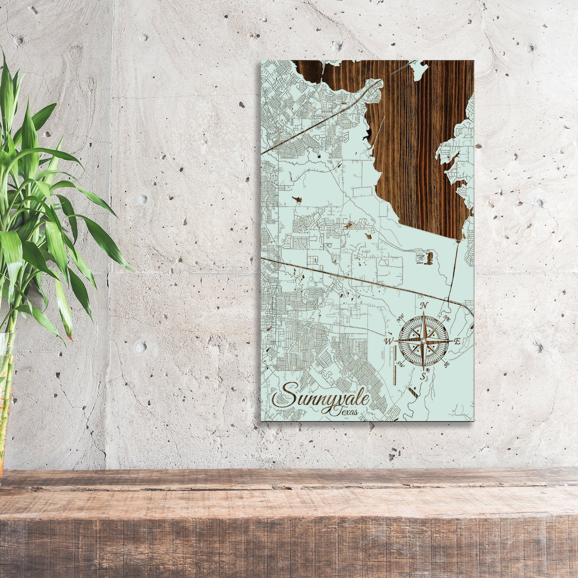 This is a street map of Sunnyvale, TX designed by Fire & Pine artists.