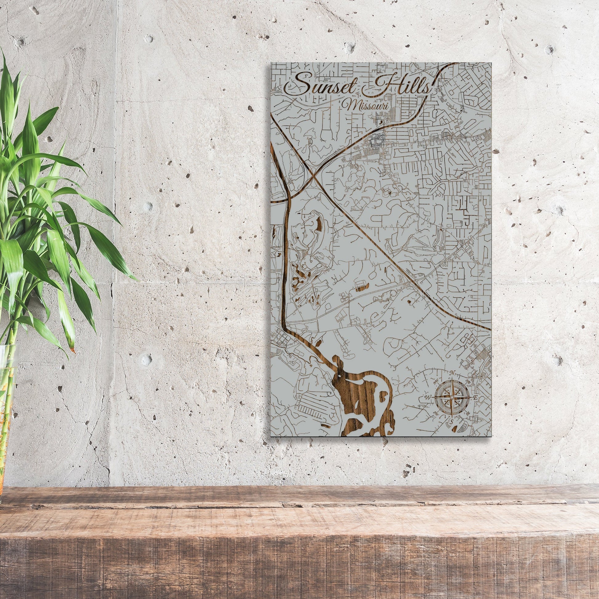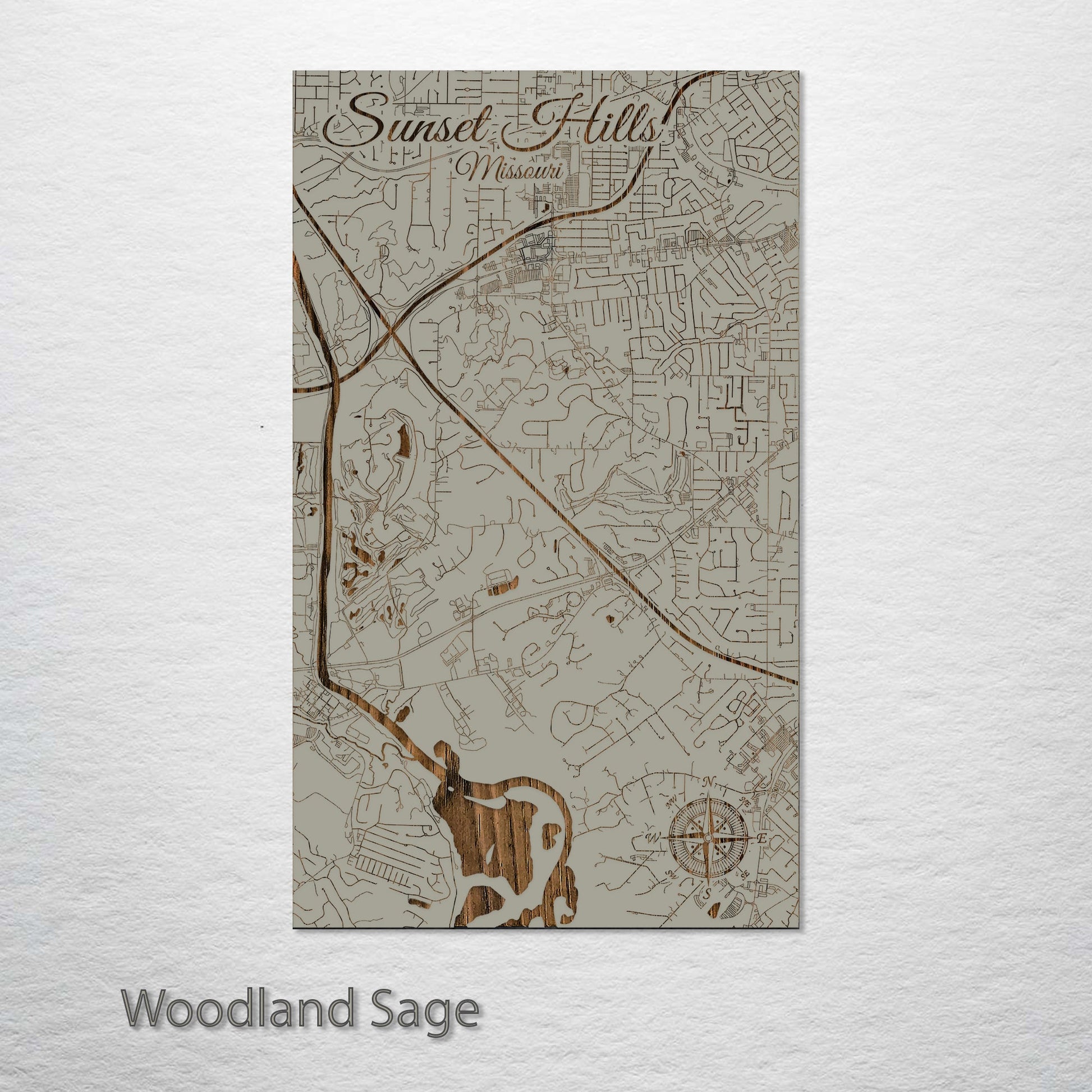 This is a street map of Sunset Hills, MO designed by Fire & Pine artists.