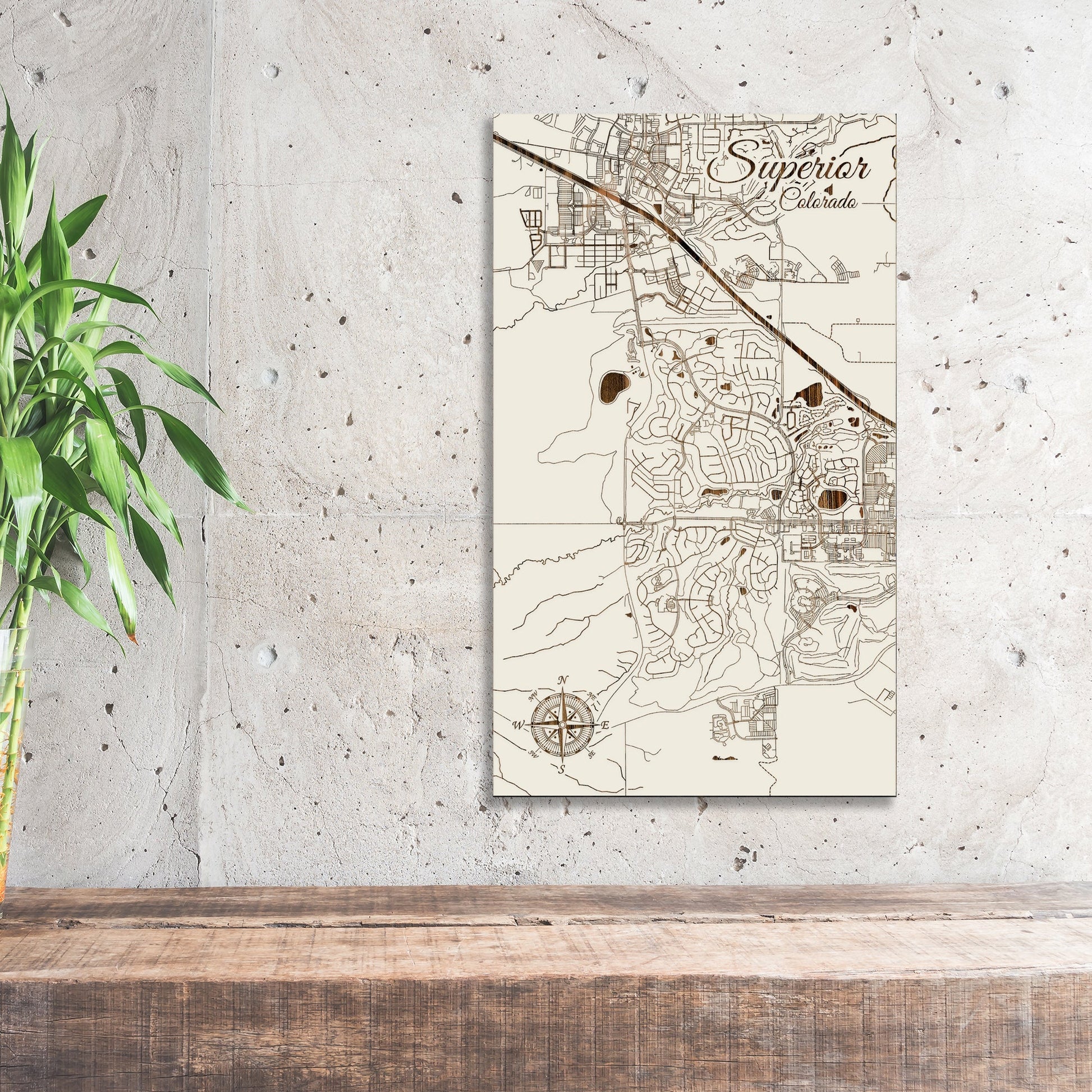 This is a street map of Superior, CO designed by Fire & Pine artists.
