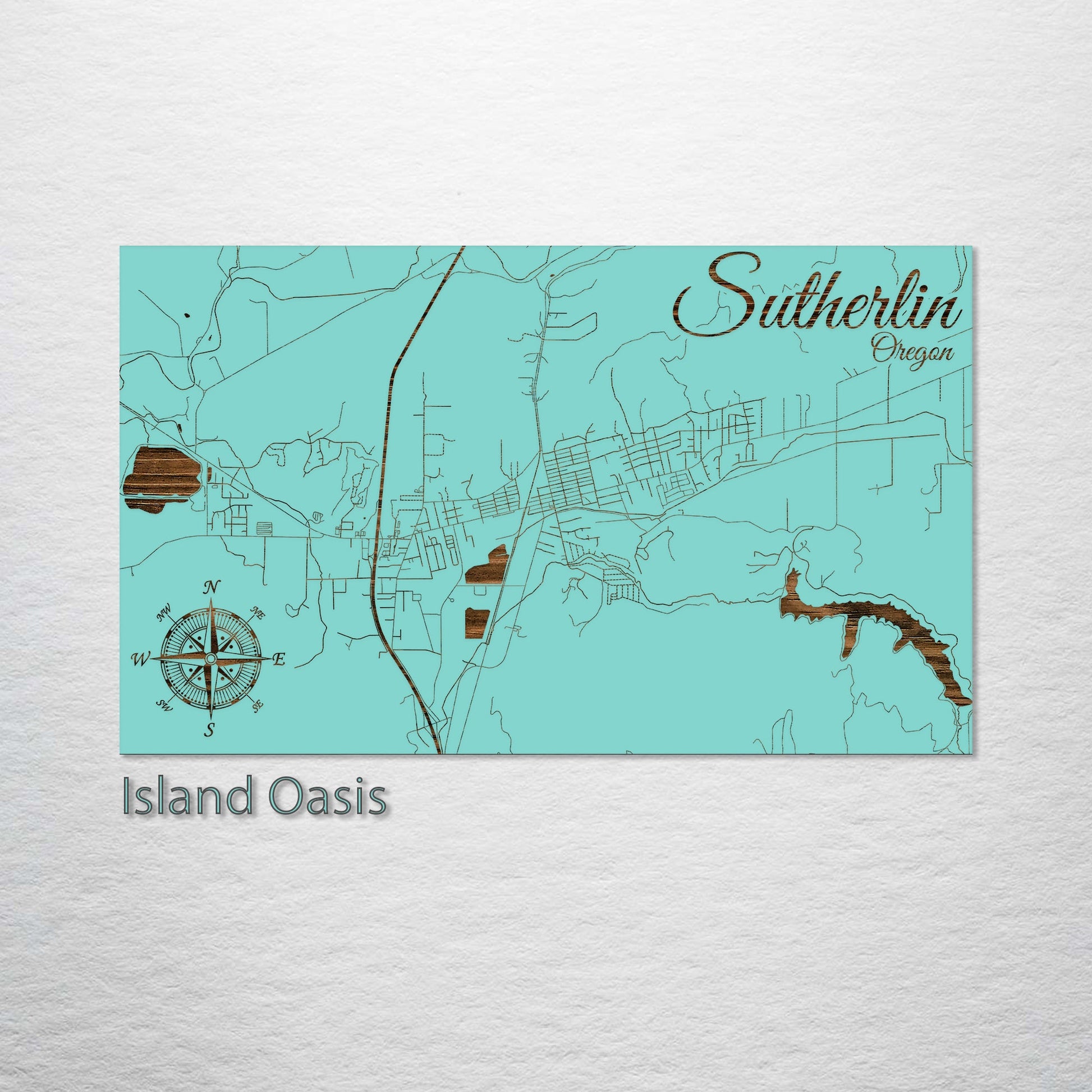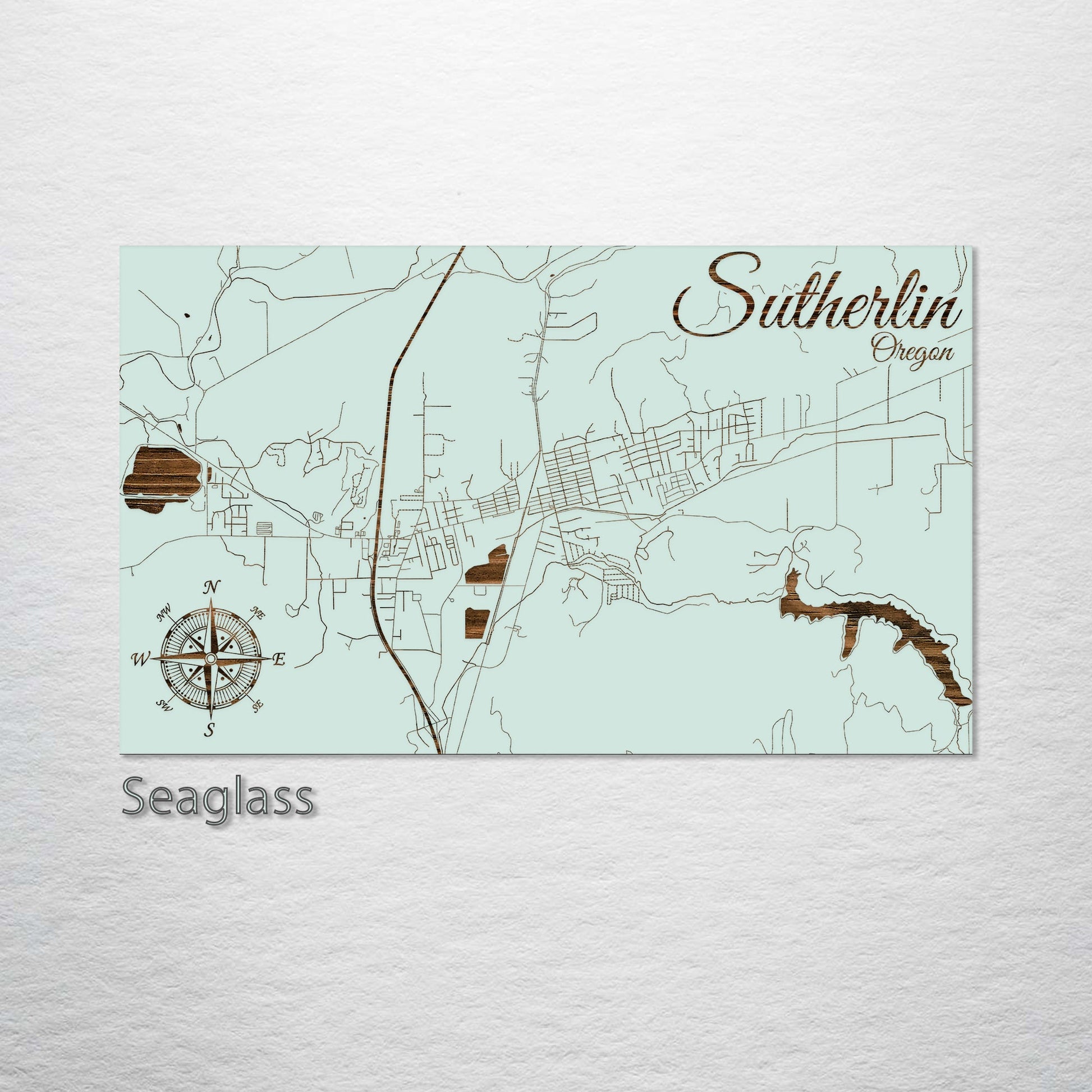 This is a street map of Sutherlin, OR designed by Fire & Pine artists.