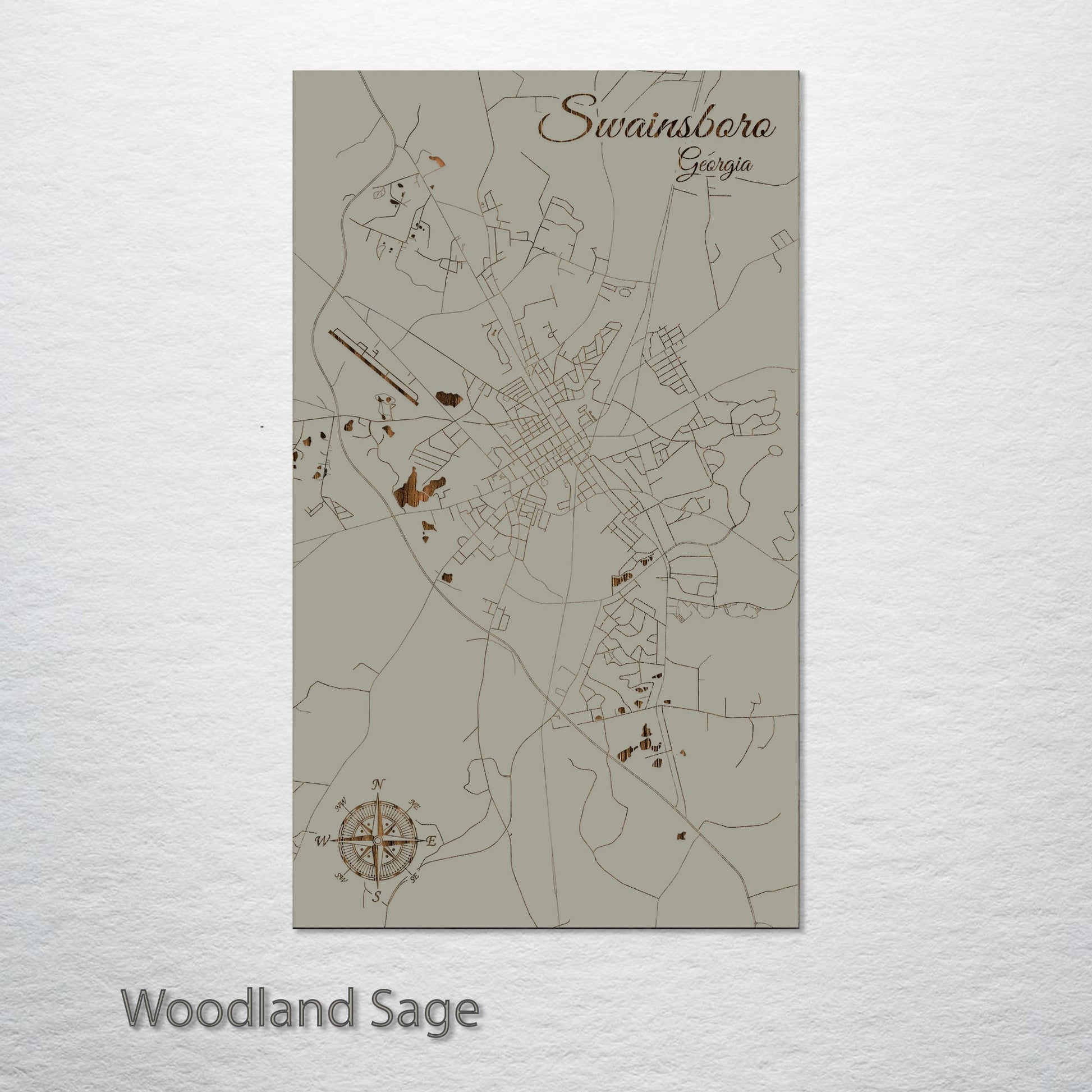 This is a street map of Swainsboro, GA designed by Fire & Pine artists.