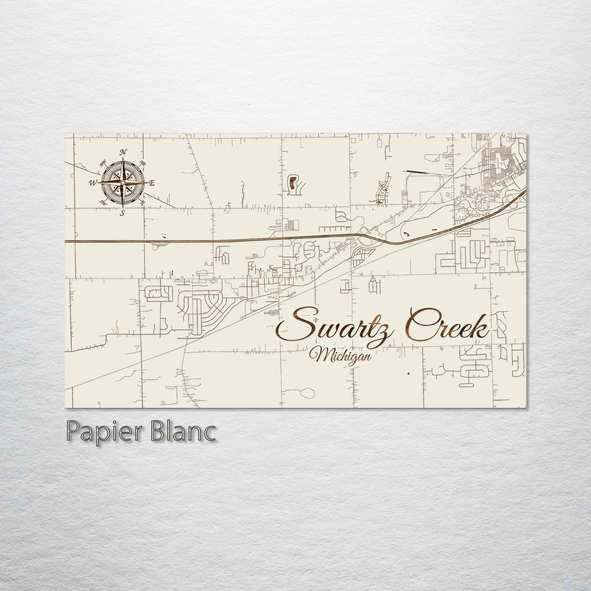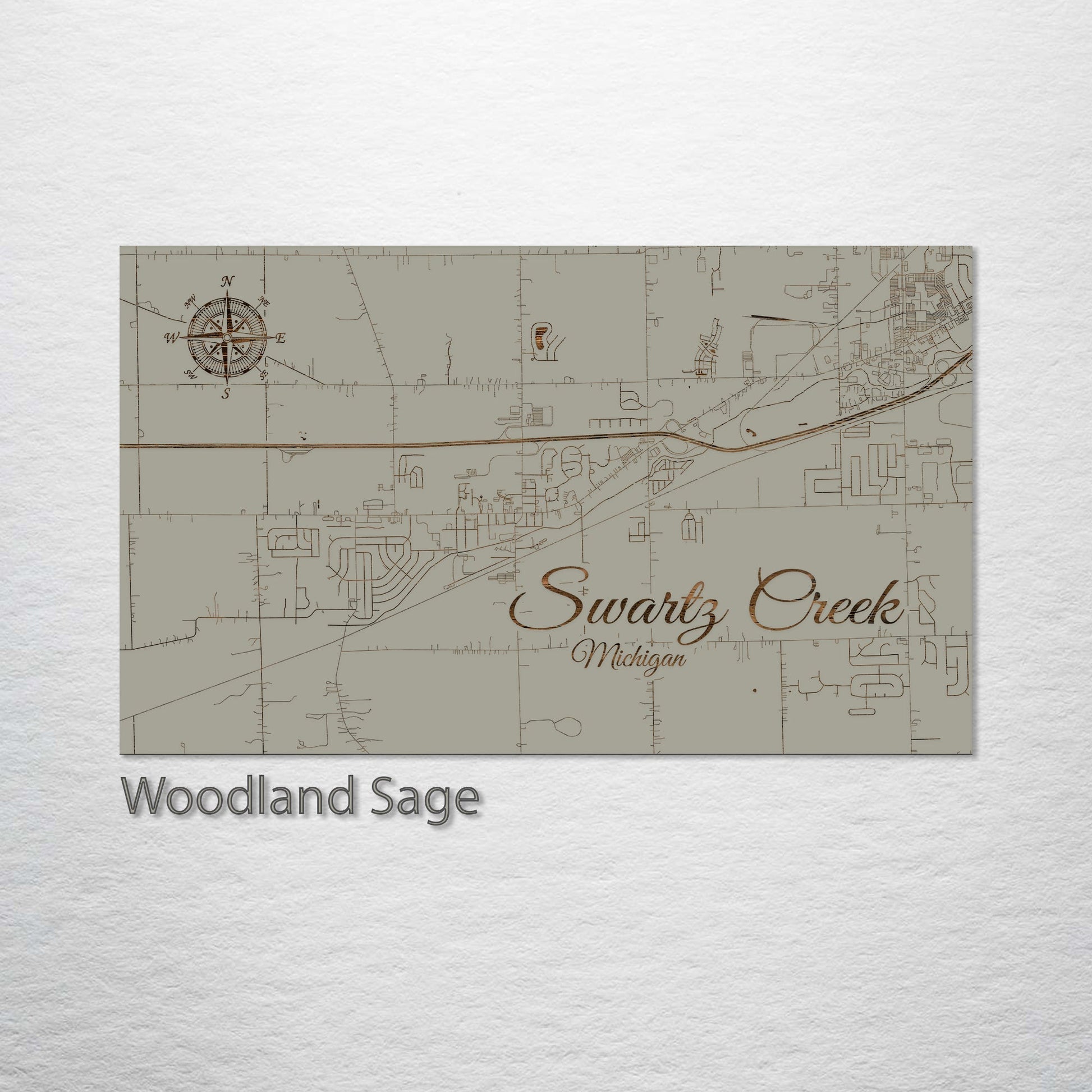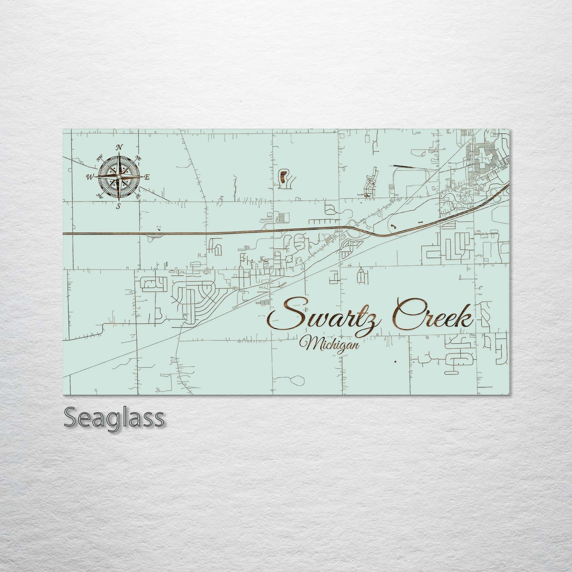 This is a street map of Swartz Creek, MI designed by Fire & Pine artists.