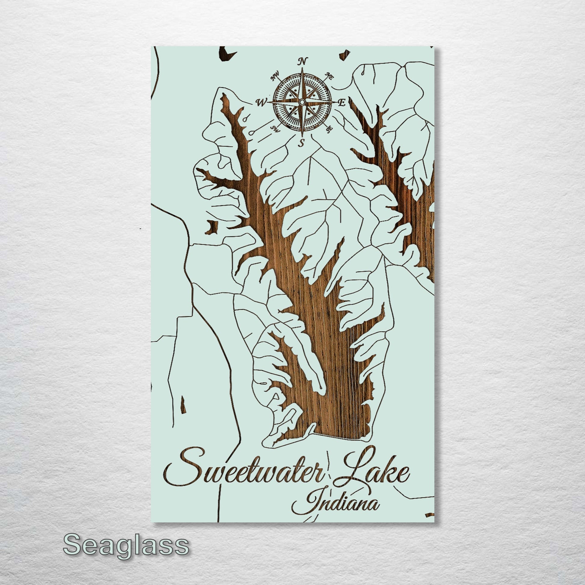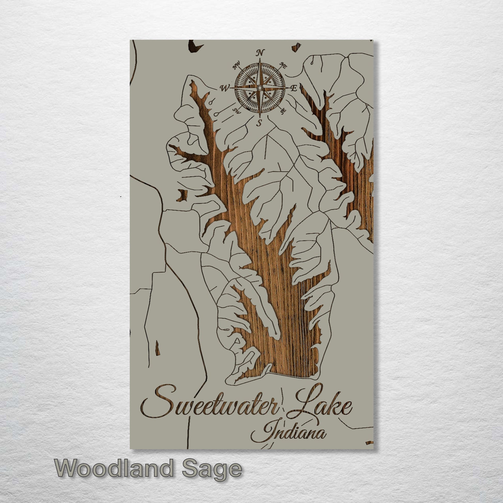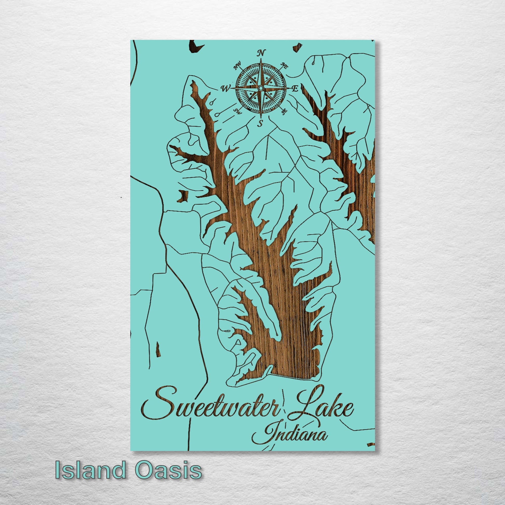 This is a map of Sweet Water Lake in Indiana designed by Fire & Pine artists.
