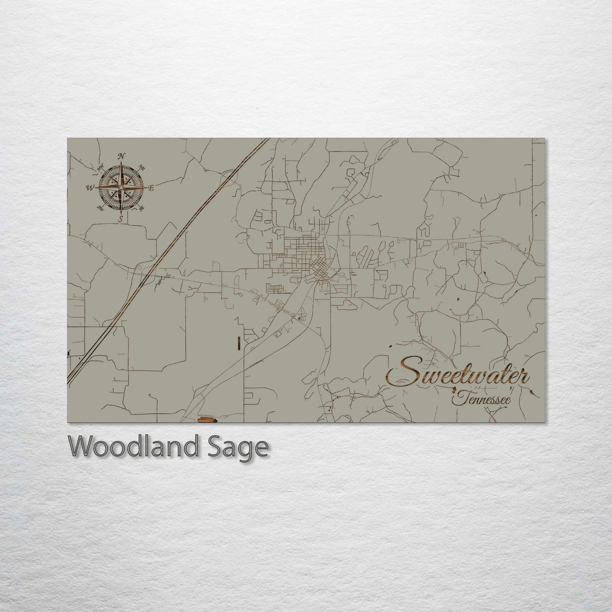 This is a street map of Sweetwater, TN designed by Fire & Pine artists.