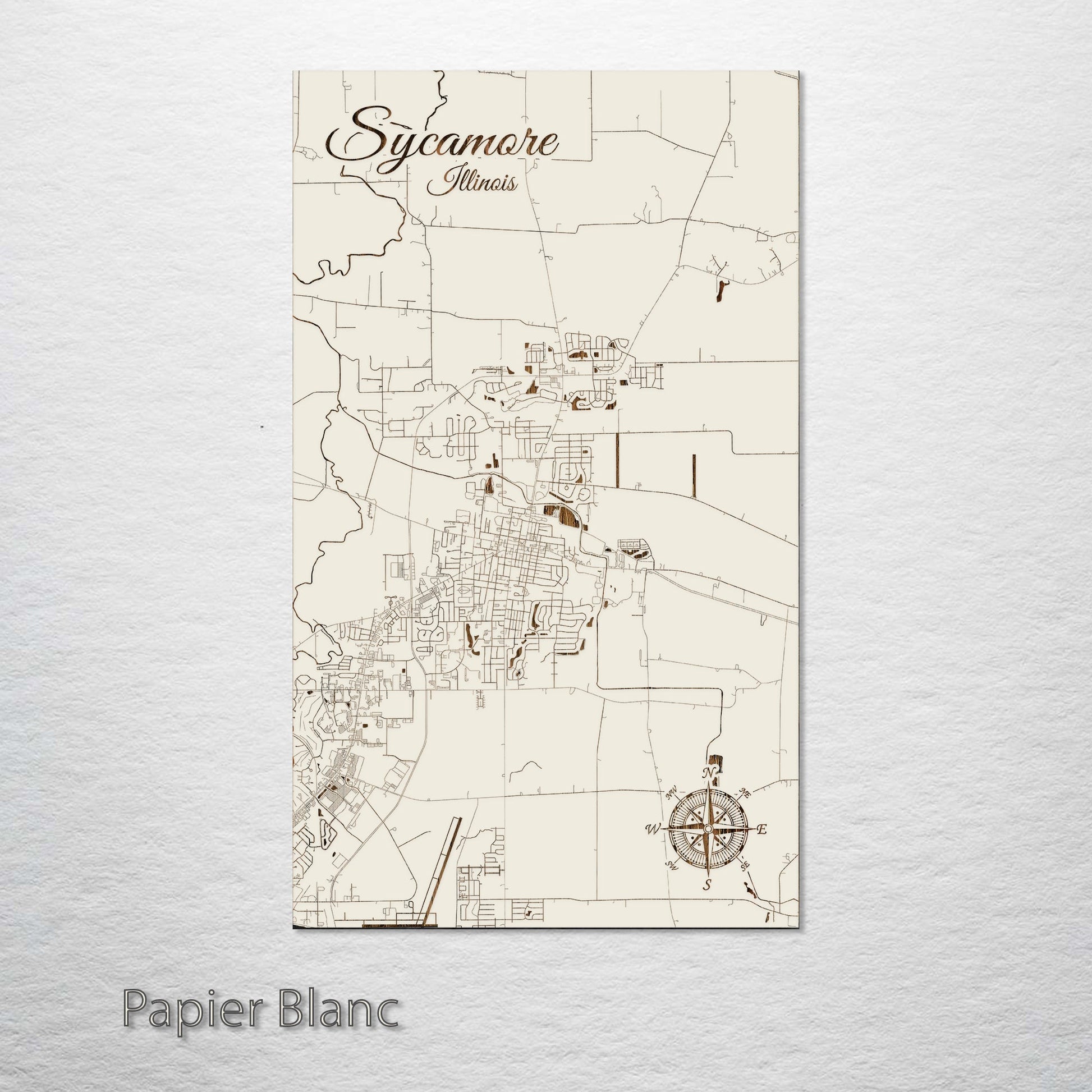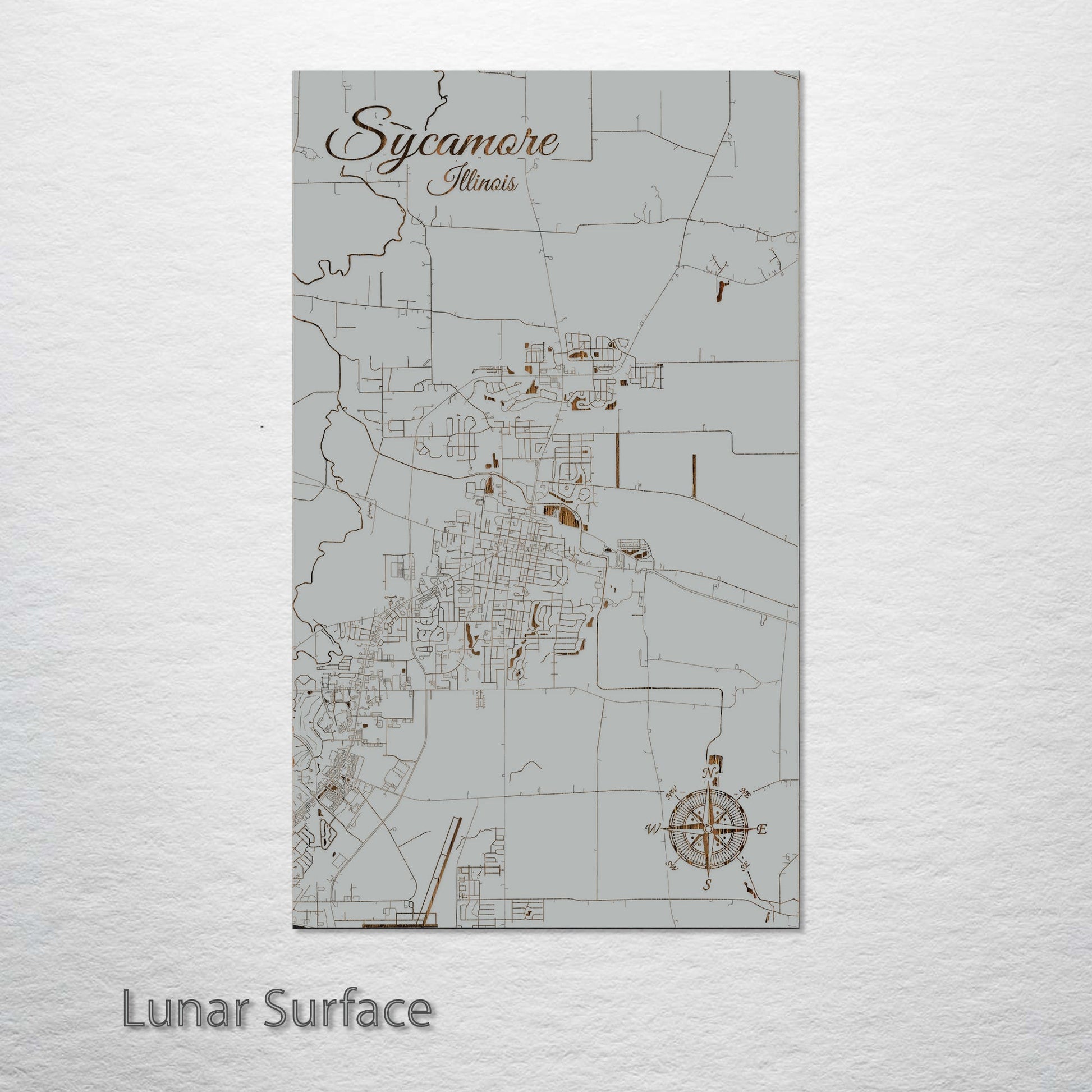 This is a street map of Sycamore, IL designed by Fire & Pine artists.