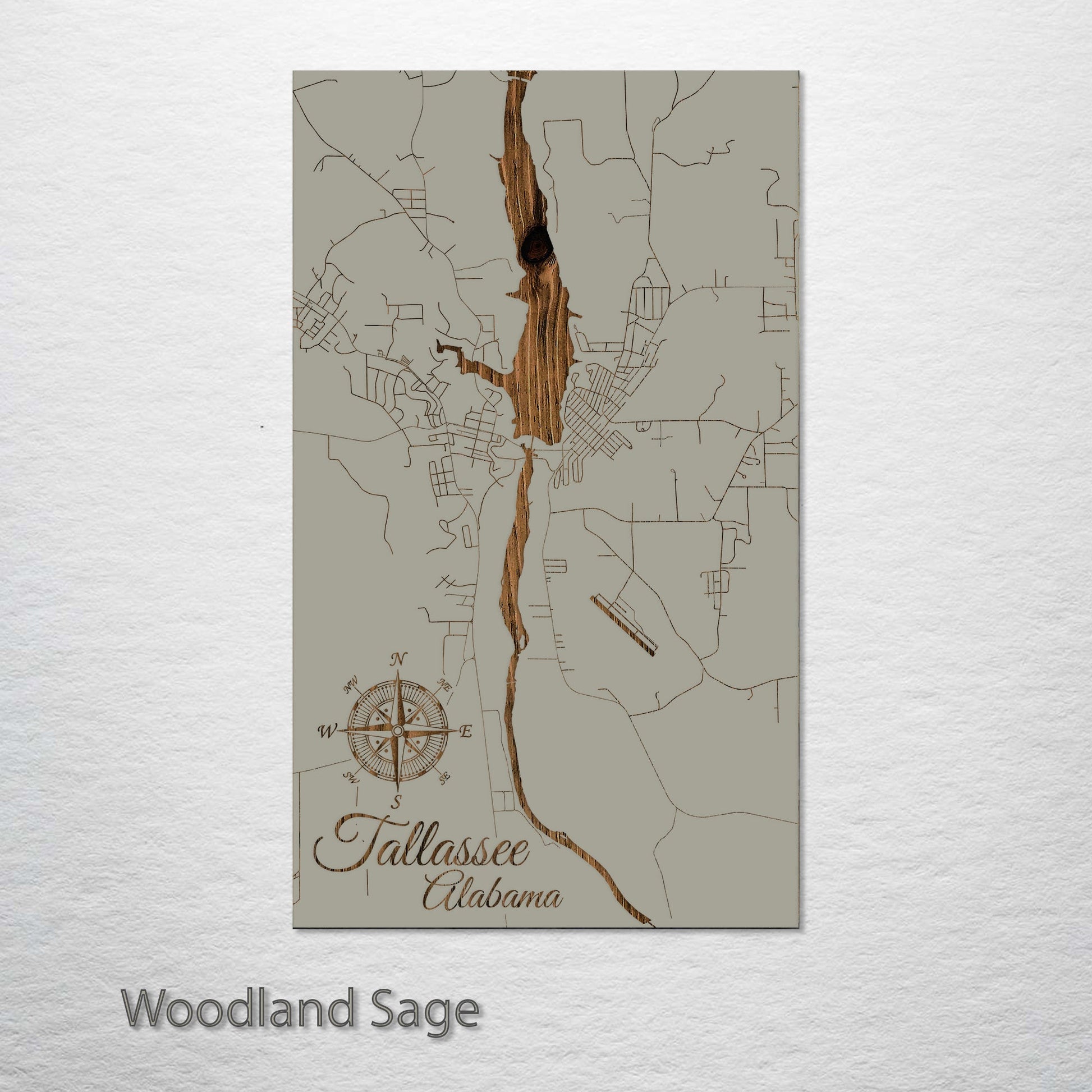 This is a street map of Tallassee, AL designed by Fire & Pine artists.