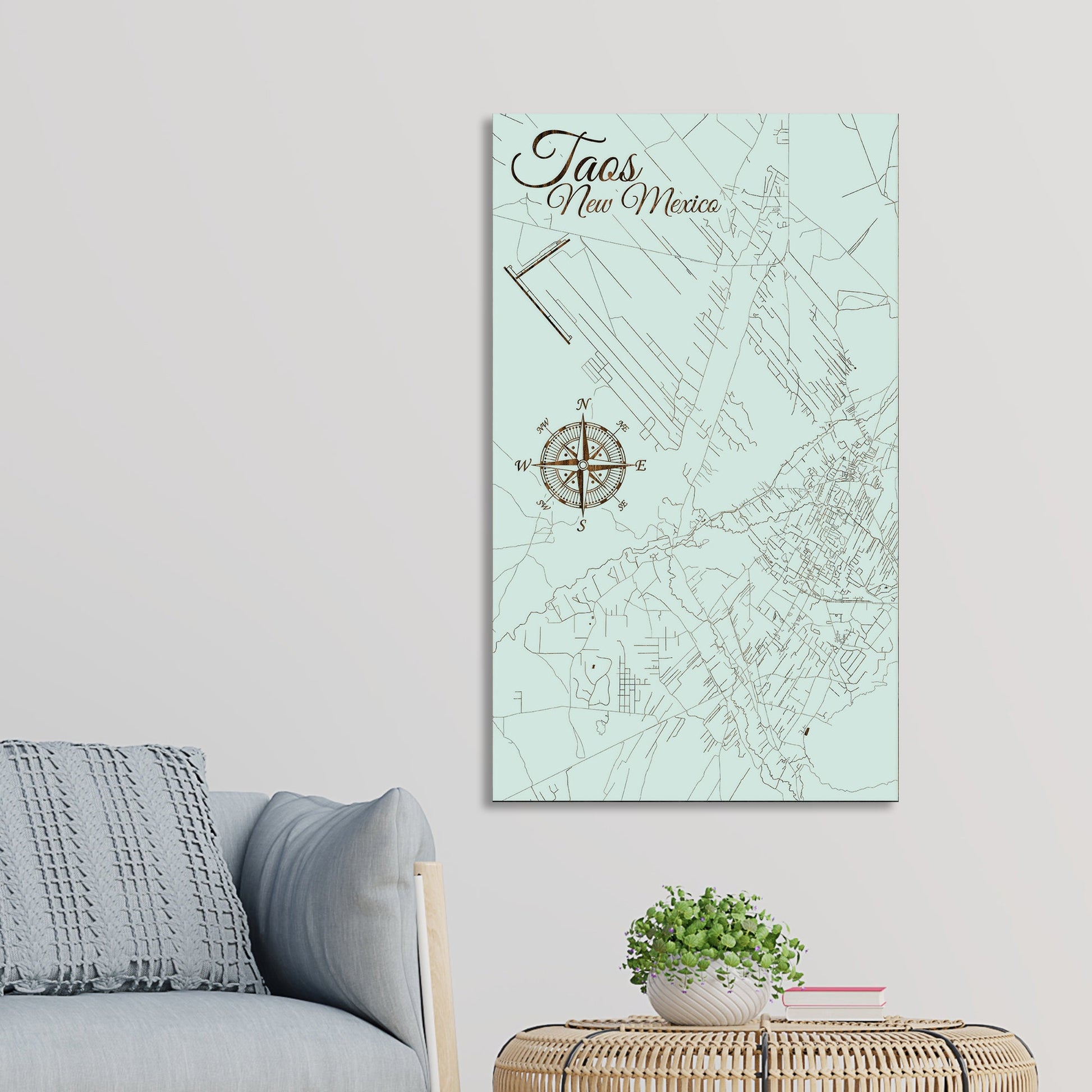 This is a street map of Taos, NM designed by Fire & Pine artists.