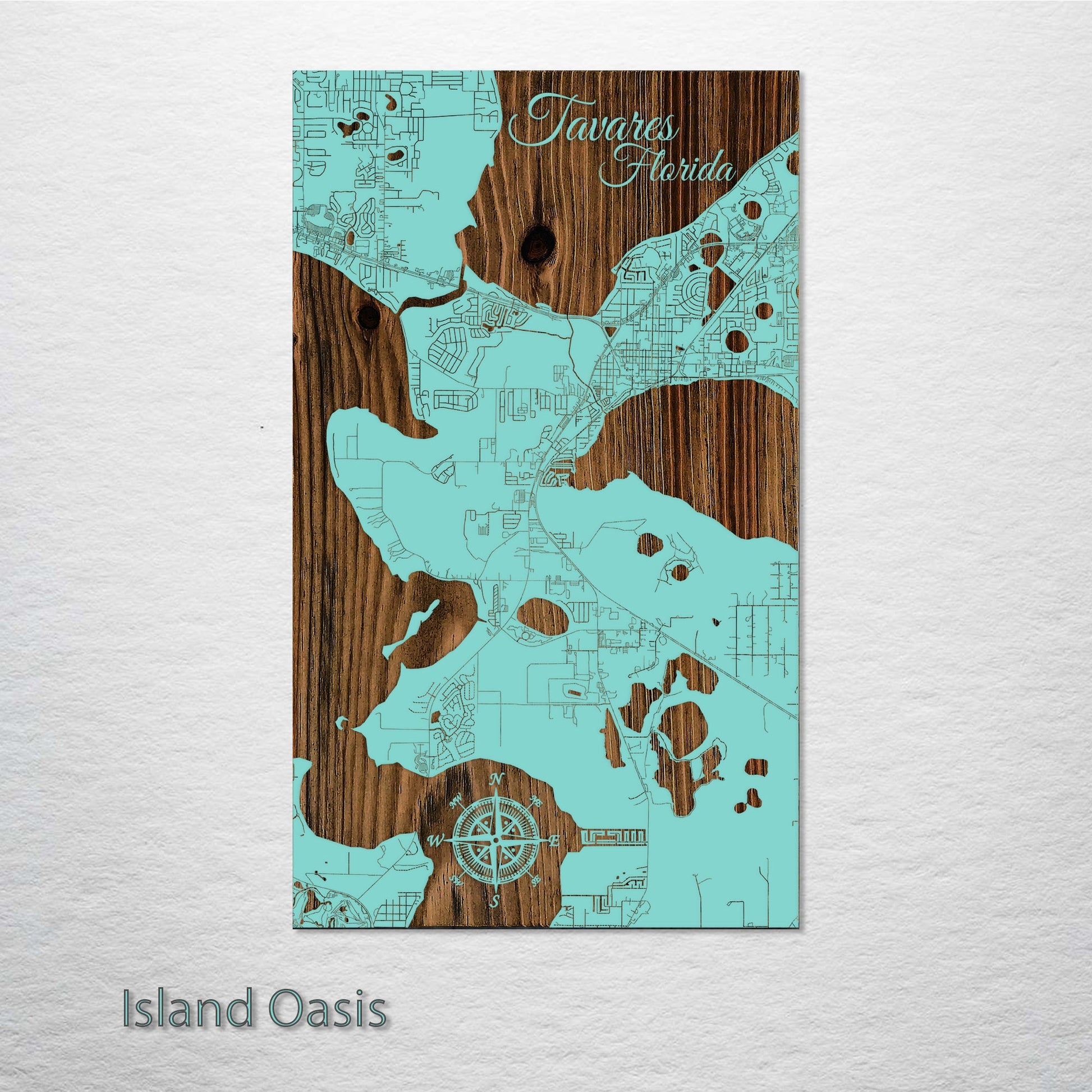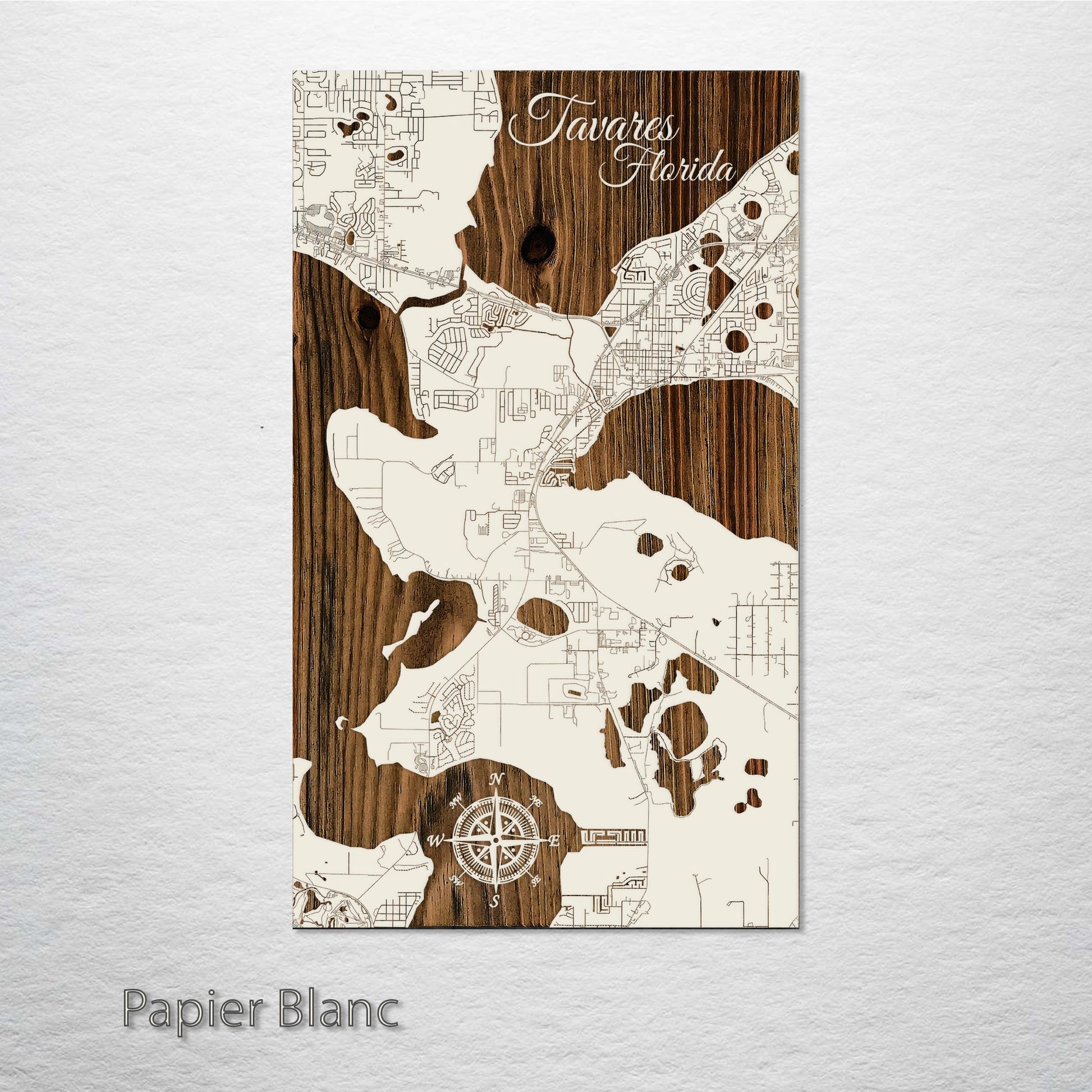 A Masterpiece for Map Enthusiasts: This wood-engraved Tavares, Florida street map is a remarkable addition to any collector's assortment. Meticulously crafted from premium pine wood, it brings the intricate details of Tavares' streets to life, creating a standout work of art. It's the perfect choice for those who have a passion for maps and cityscapes.