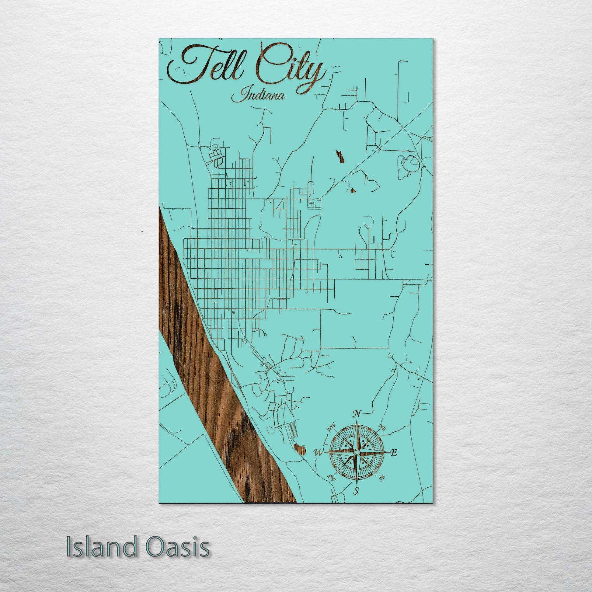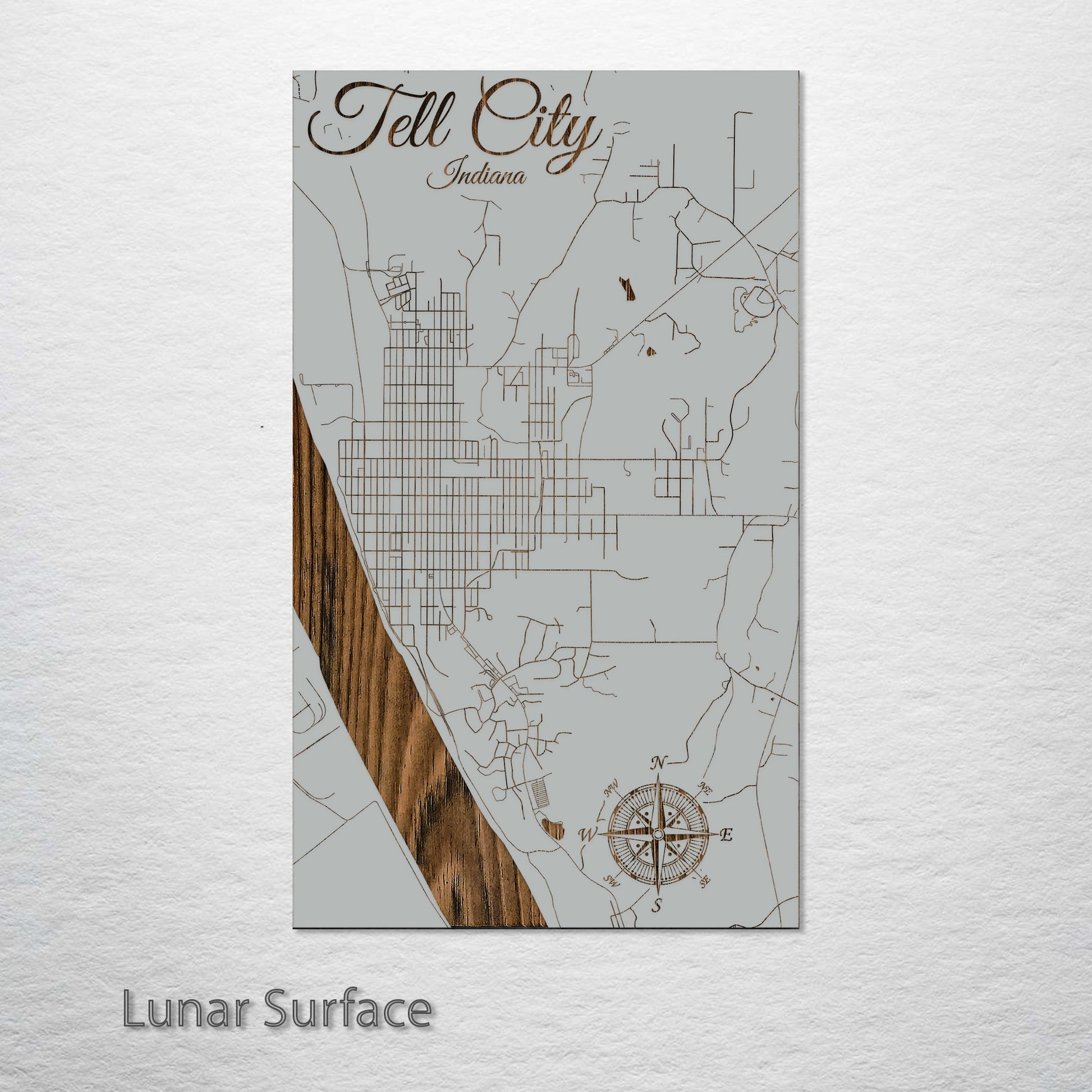 Unique Wall Art, Tell City Street Map, Indiana Home Decor: This wood-engraved map showcases the streets and layout of Tell City, Indiana. Ideal for those interested in cartography, geography, or Indiana history, the map is crafted from high-quality pine wood, providing both detail and durability.