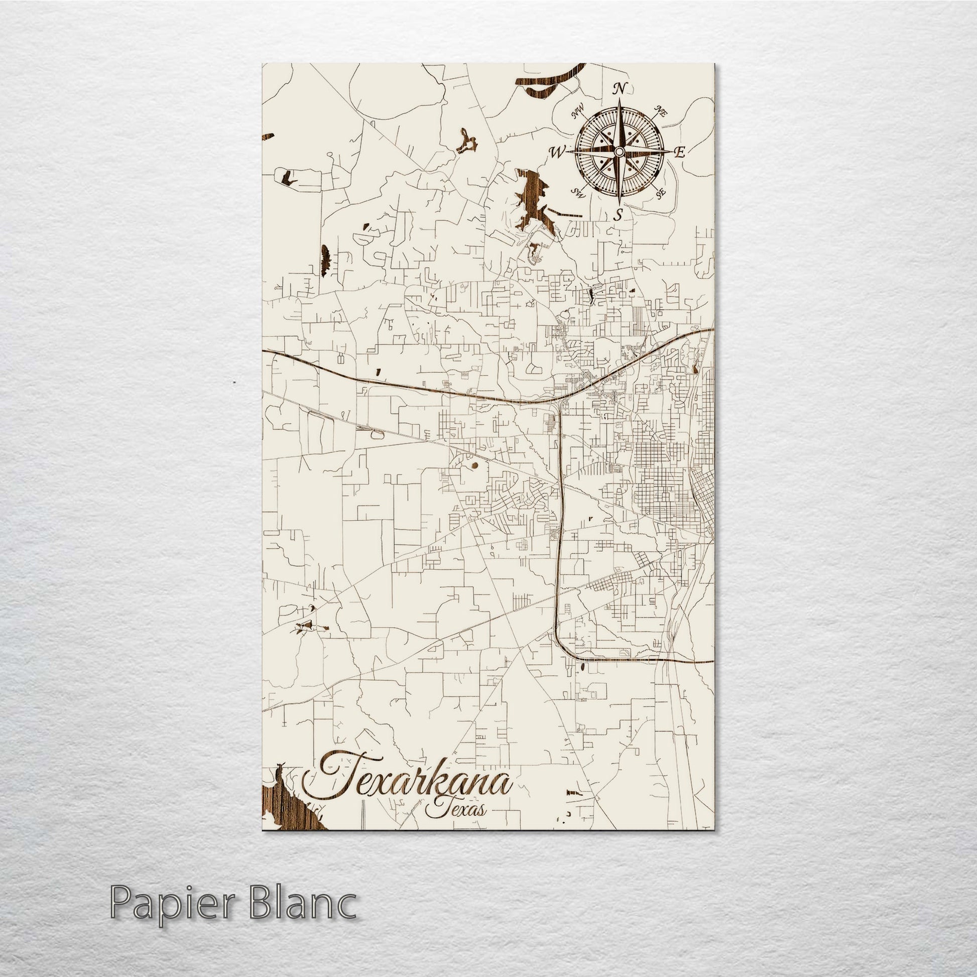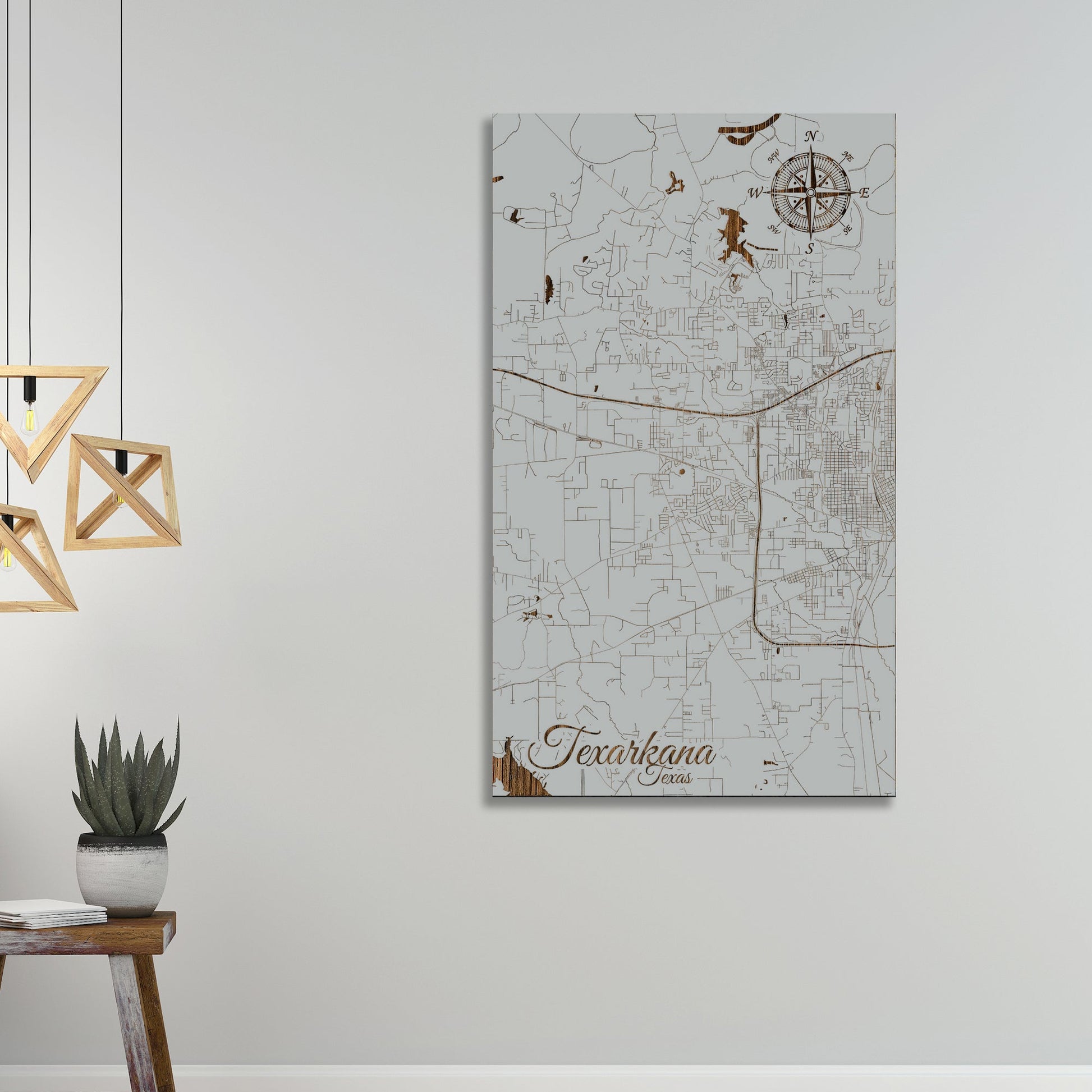 This wood-engraved Texarkana, Texas street map is a splendid addition to any art lover's collection. Meticulously crafted from top-quality pine wood, it vividly showcases the street layout of Texarkana, offering a unique blend of artistic charm and geographic precision.