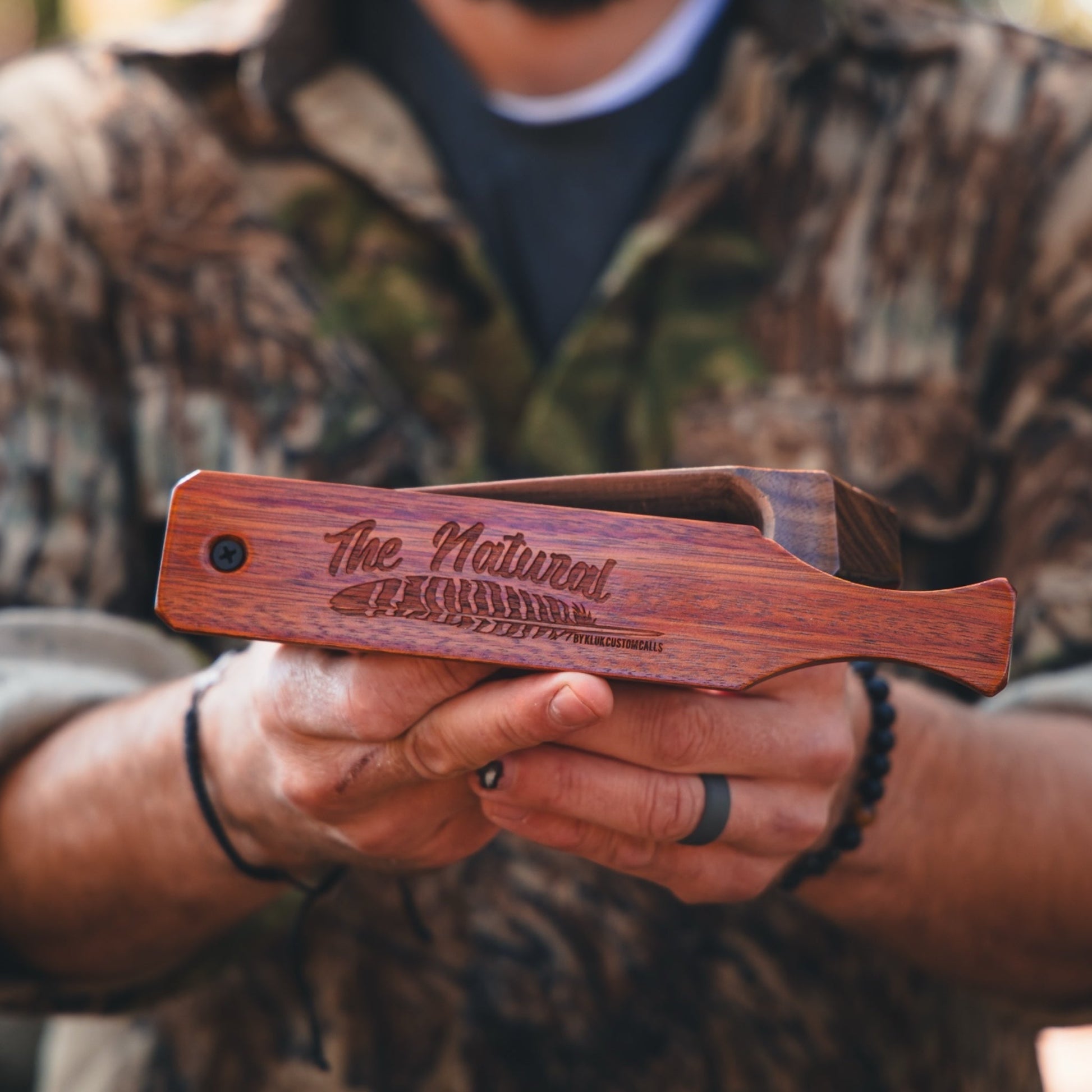 Crafted with a rich walnut box and a striking bloodwood lid, The Natural is as beautiful as it is effective. But it’s not just about looks—this call delivers unmatched performance in the field. Its crisp front-end notes roll seamlessly into a raspy backend, producing the realistic tones that turkeys can’t resist.