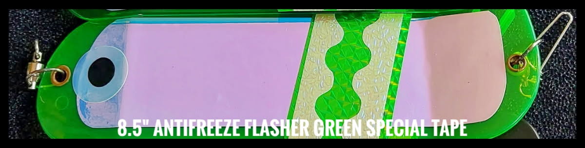 8.5” Flasher with Fins: Chrome, Metallic Green, Trans Green, Antifreeze, Black