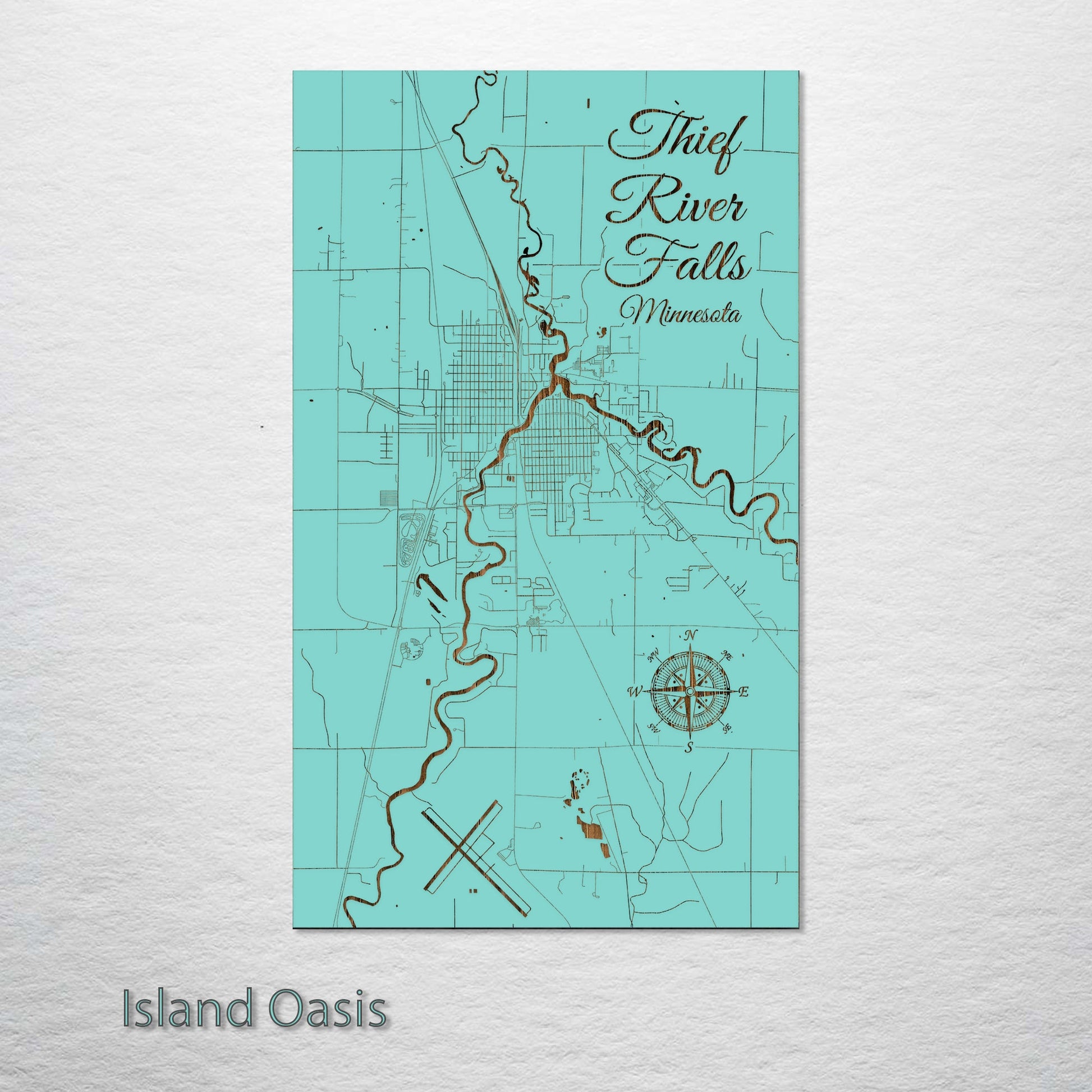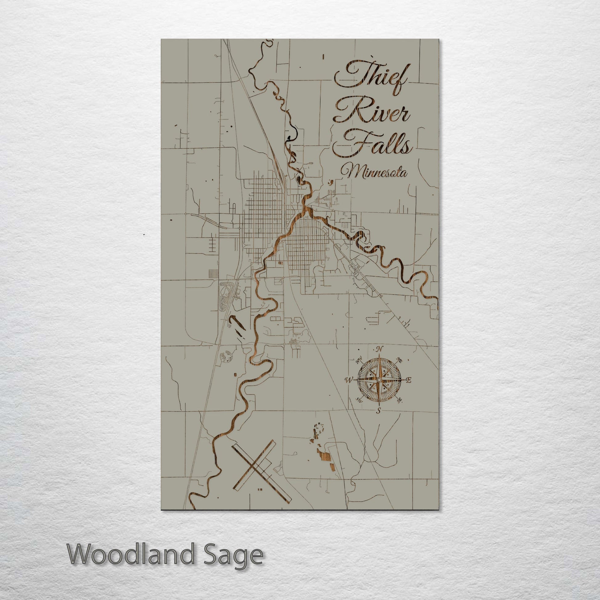 This is a street map of Thief River Falls, MN designed by Fire & Pine artists.