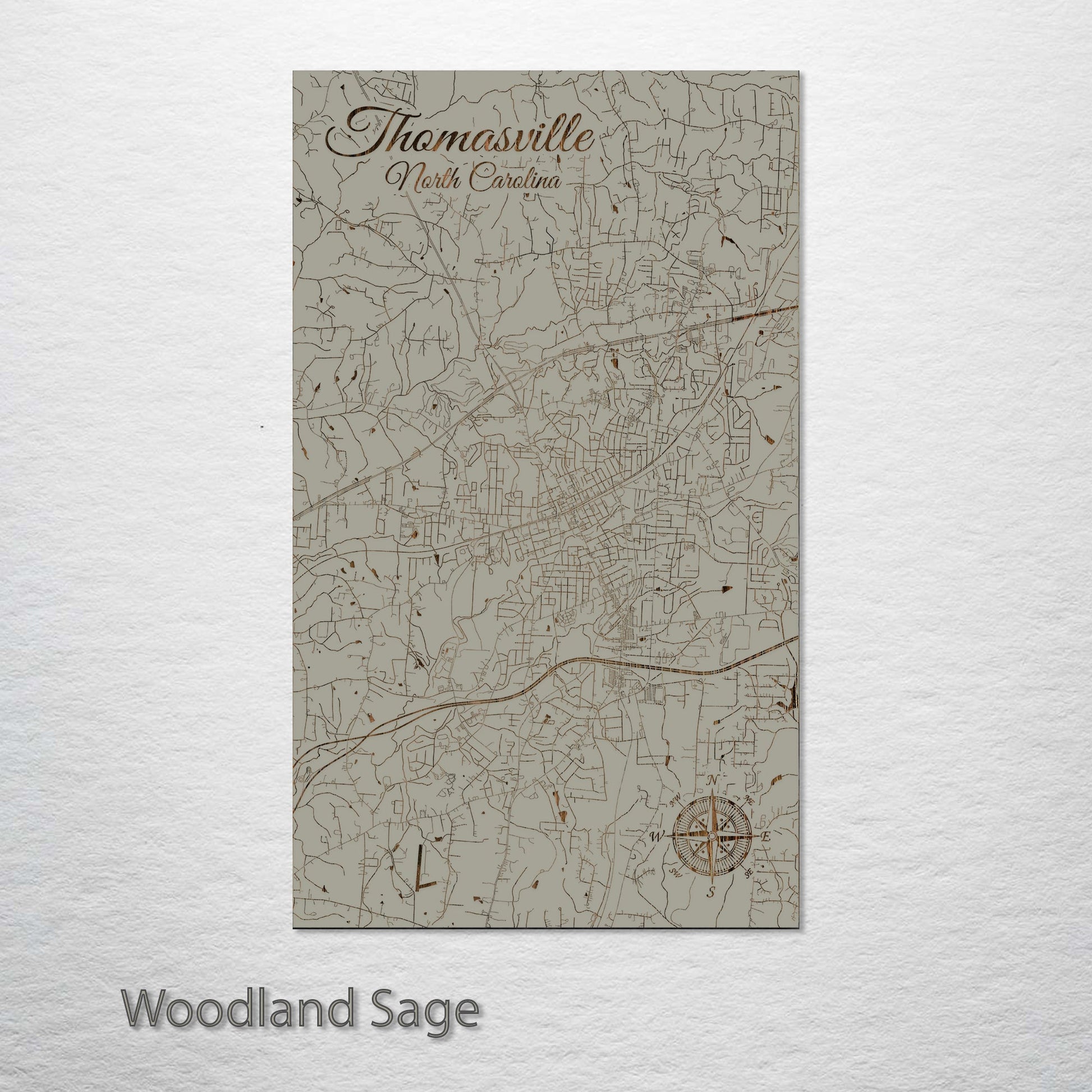 This is a street map of Thomasville, NC designed by Fire & Pine artists.