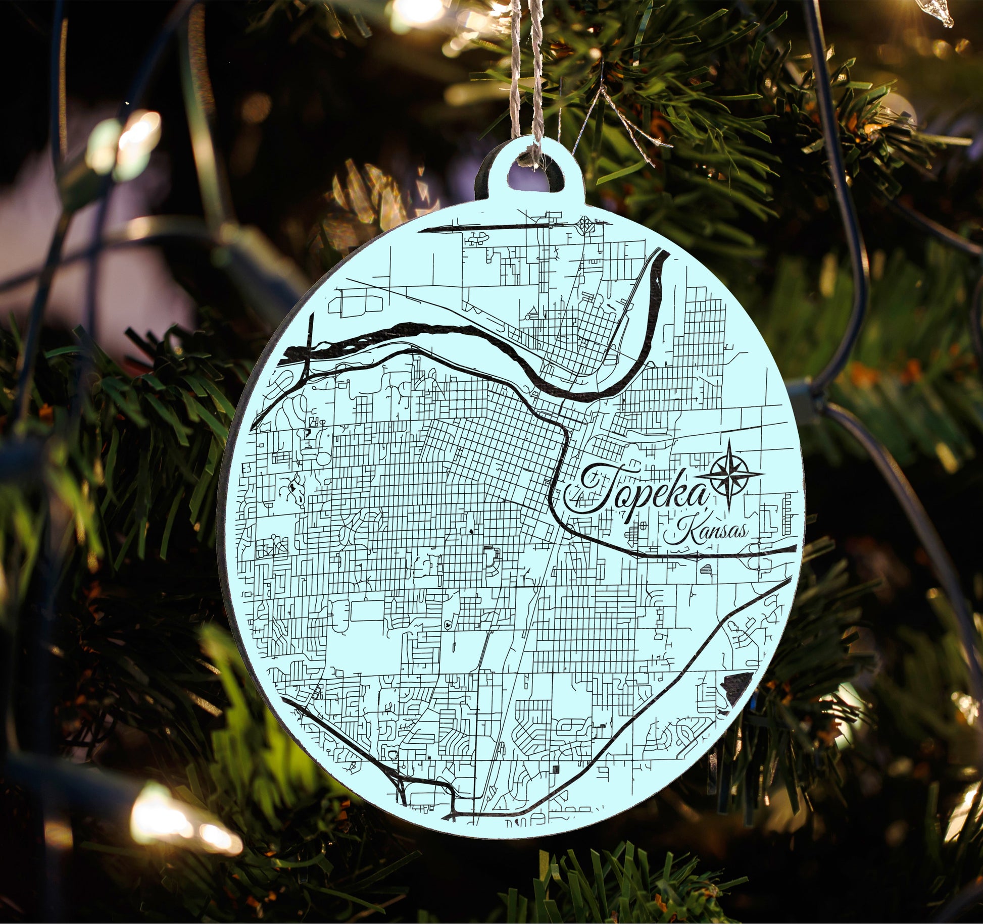 Order Your Topeka, Kansas Wooden Map Ornament Today!