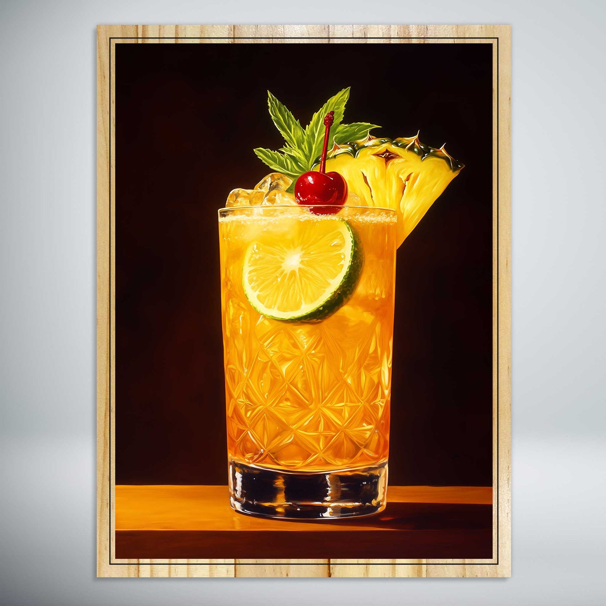 Every piece is finished with four environmentally safe waterborne sealers and color coatings for lasting durability. Because pine wood features unique grain patterns and organic variations, each Tropical Twilight: Mai Tai print is one-of-a-kind — truly as unique as the drink it celebrates.