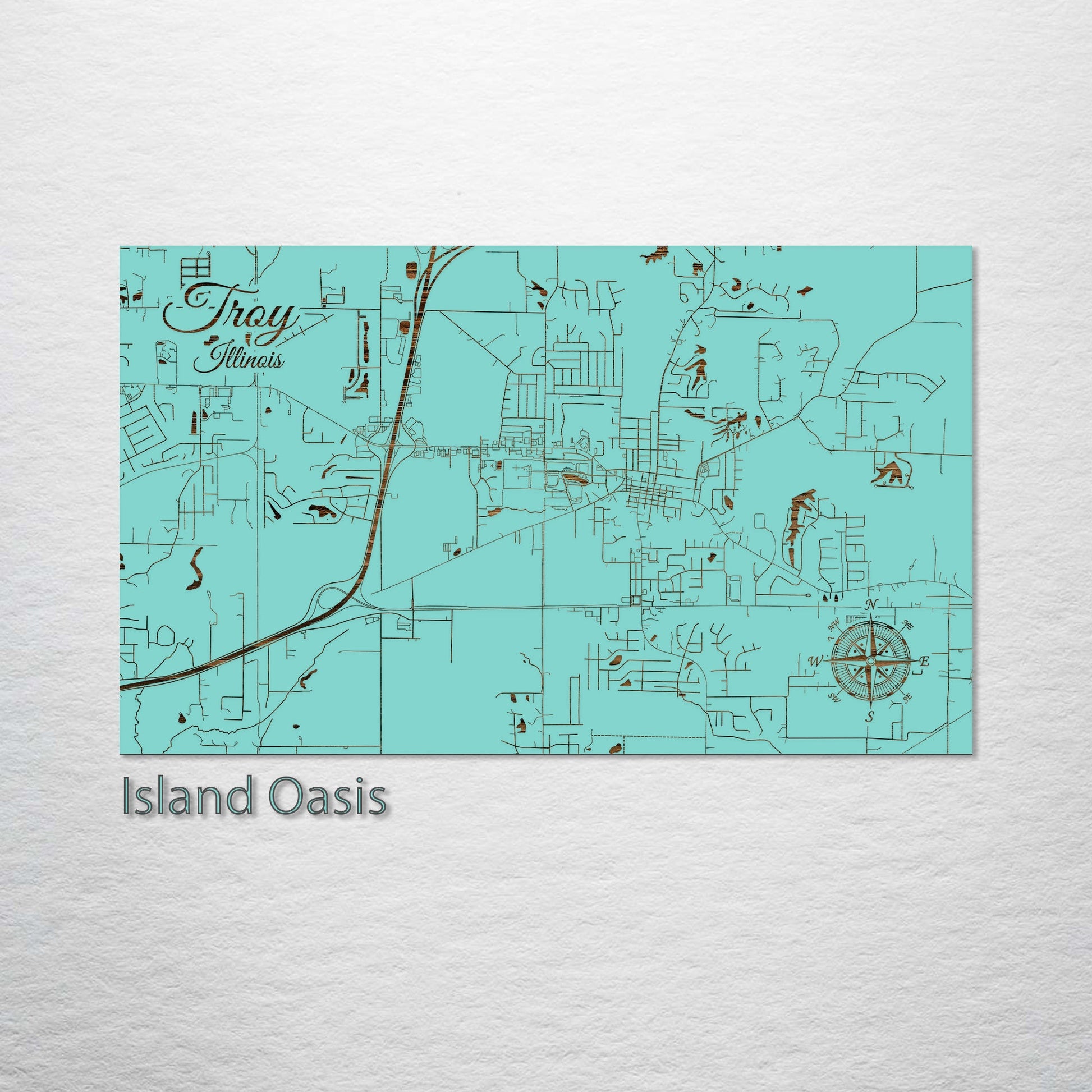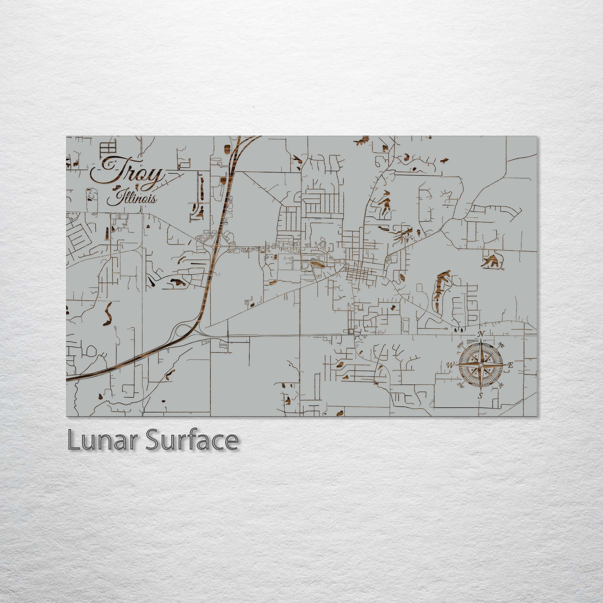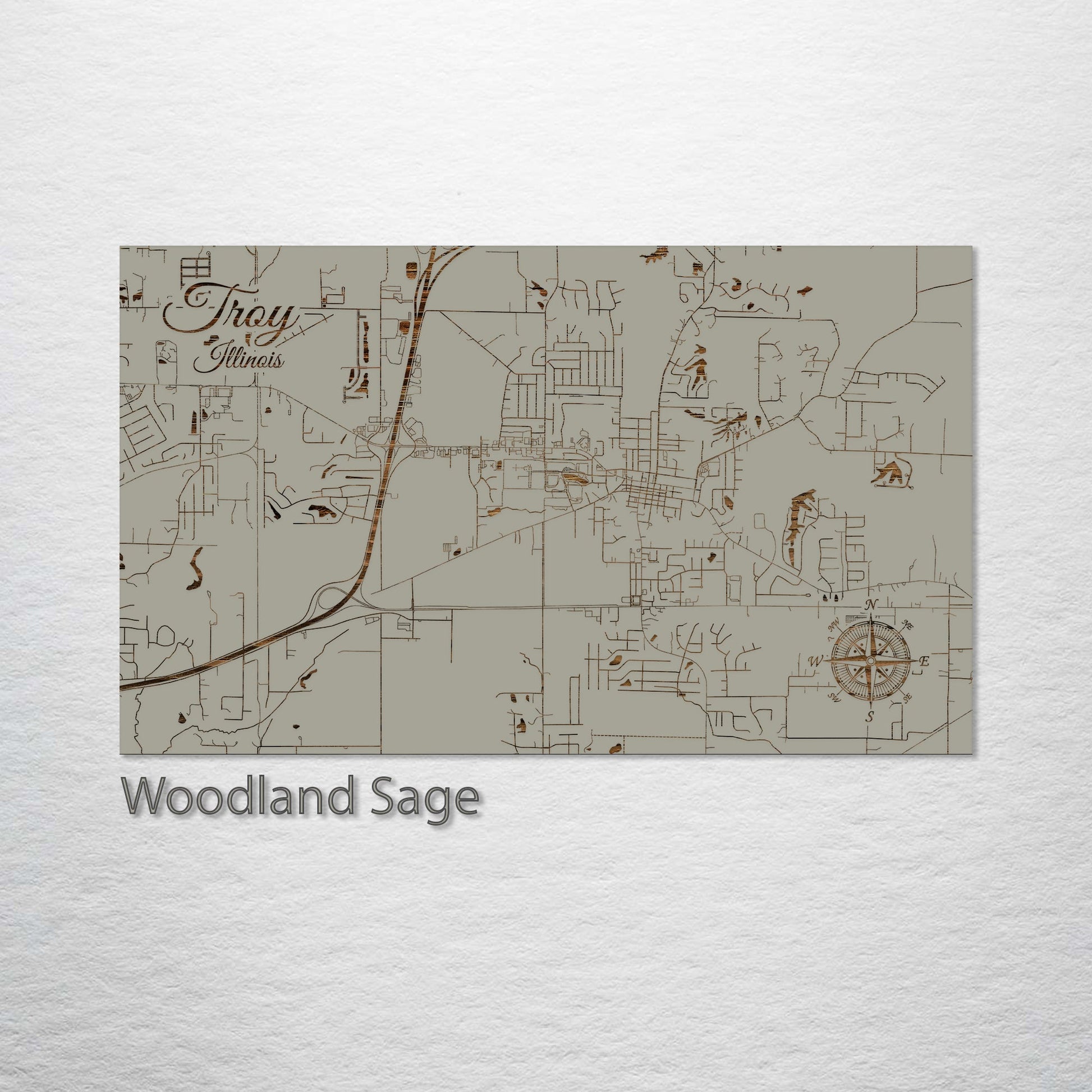 This is a street map of Troy, IL designed by Fire & Pine artists.
