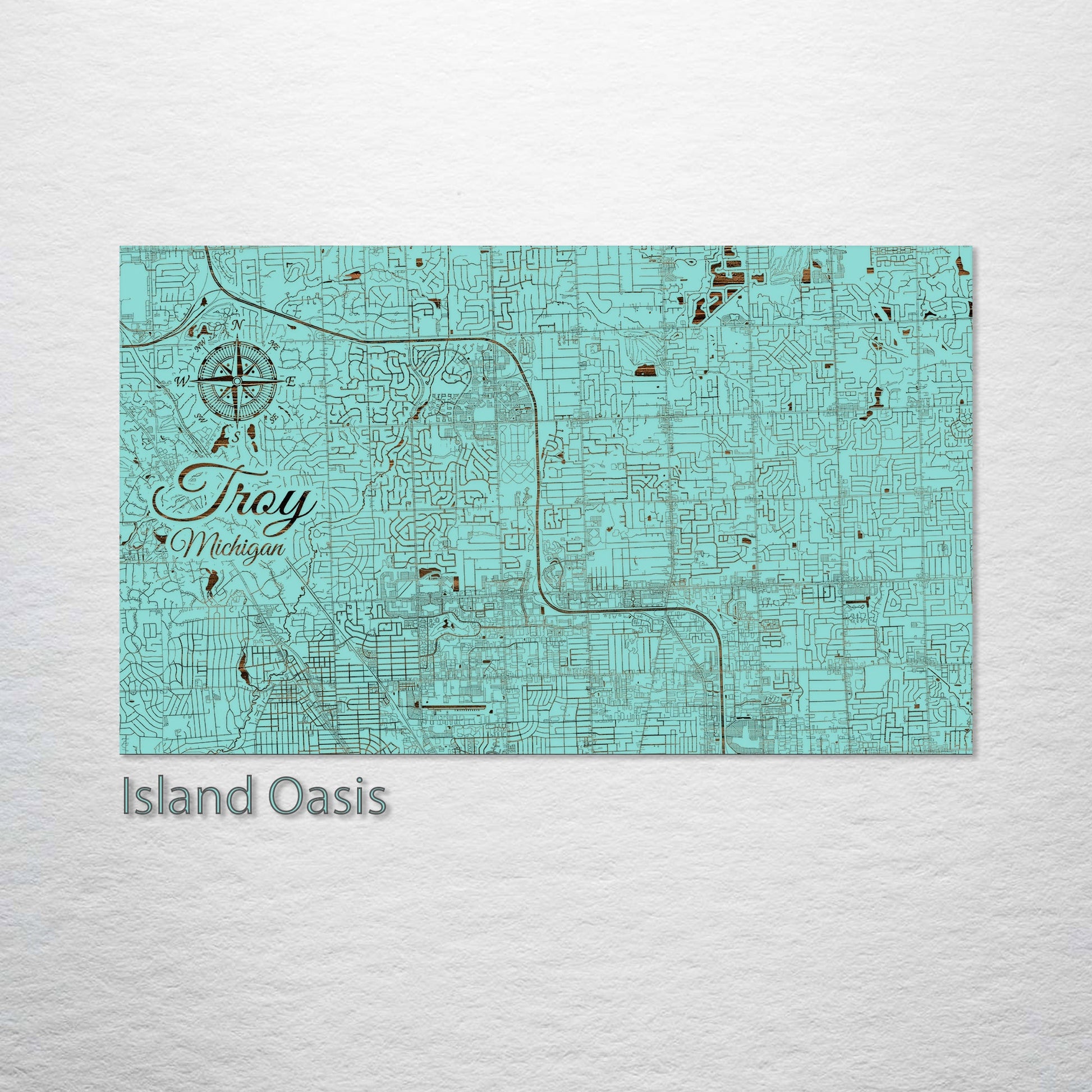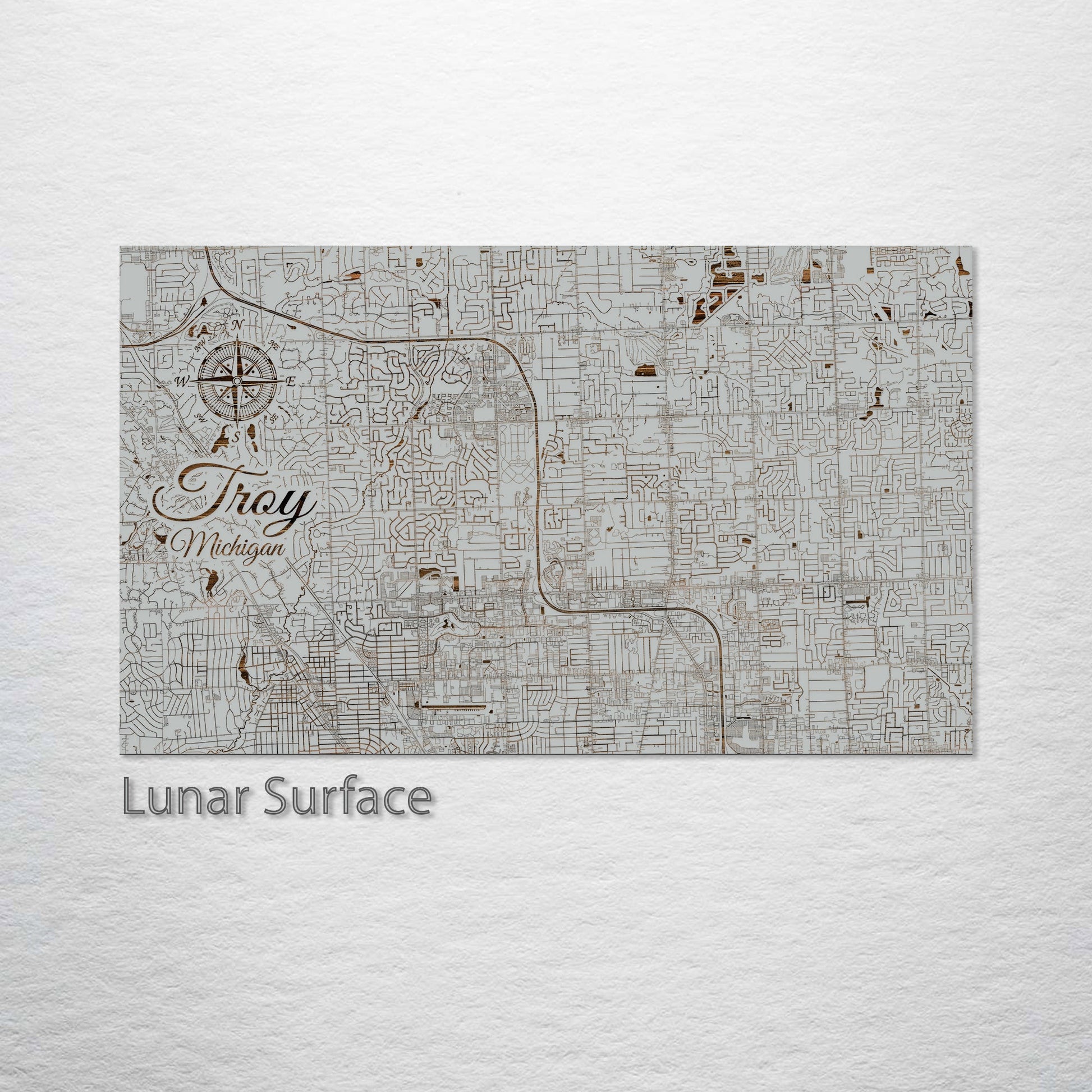 This is a street map of Troy, MI designed by Fire & Pine artists.