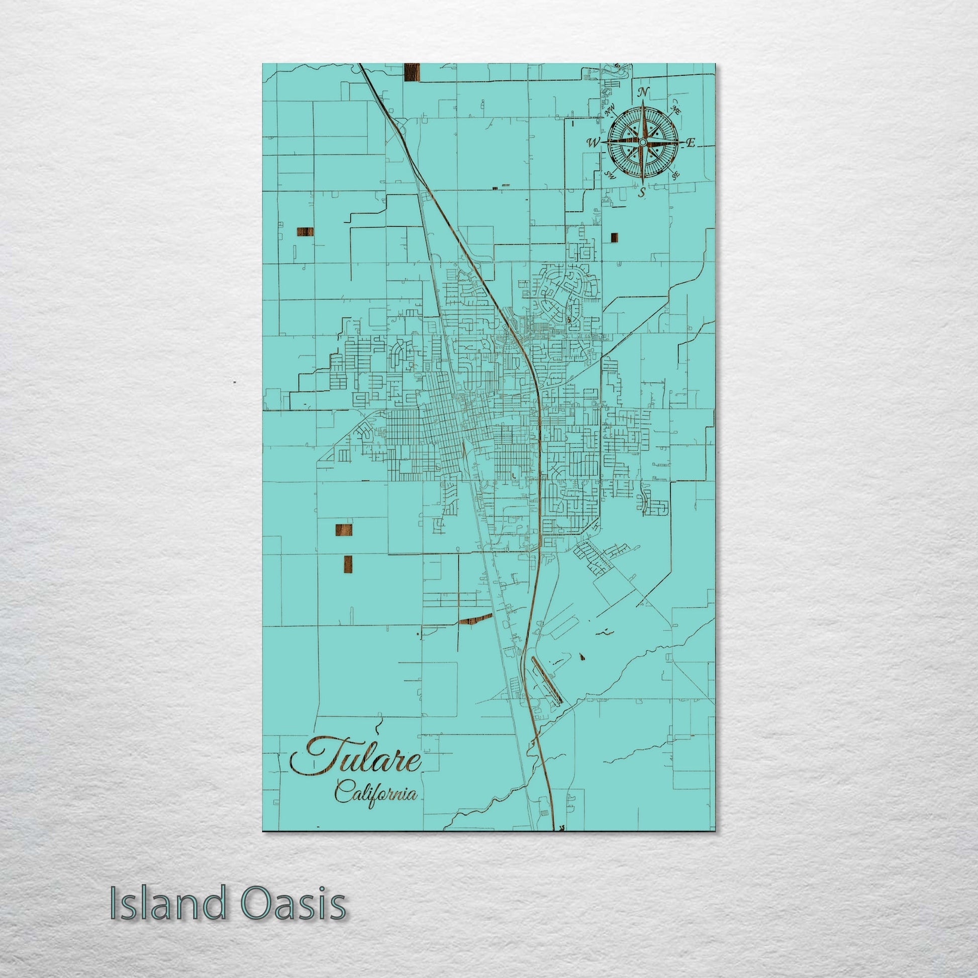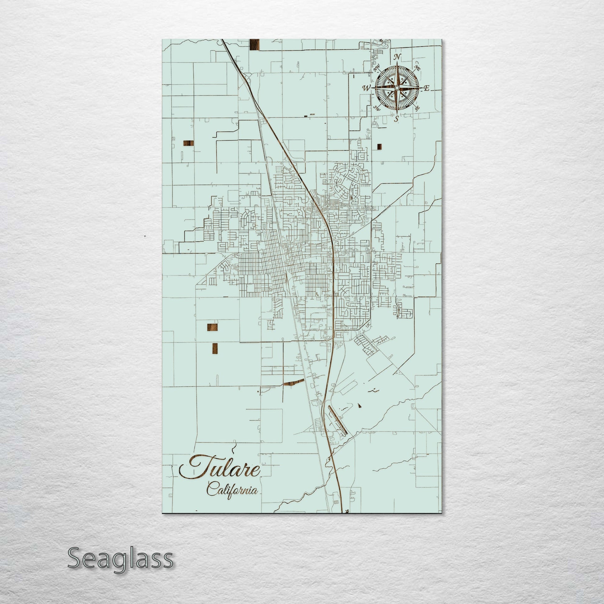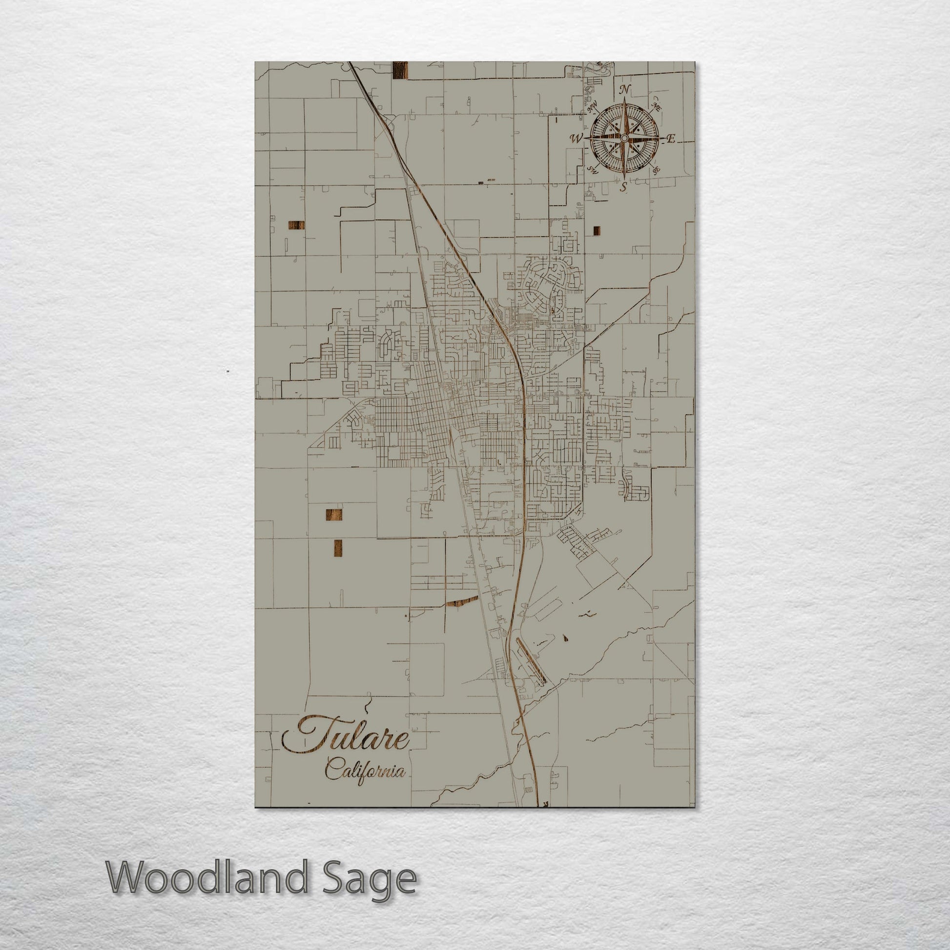 This is a street map of Tulare, CA designed by Fire & Pine artists.