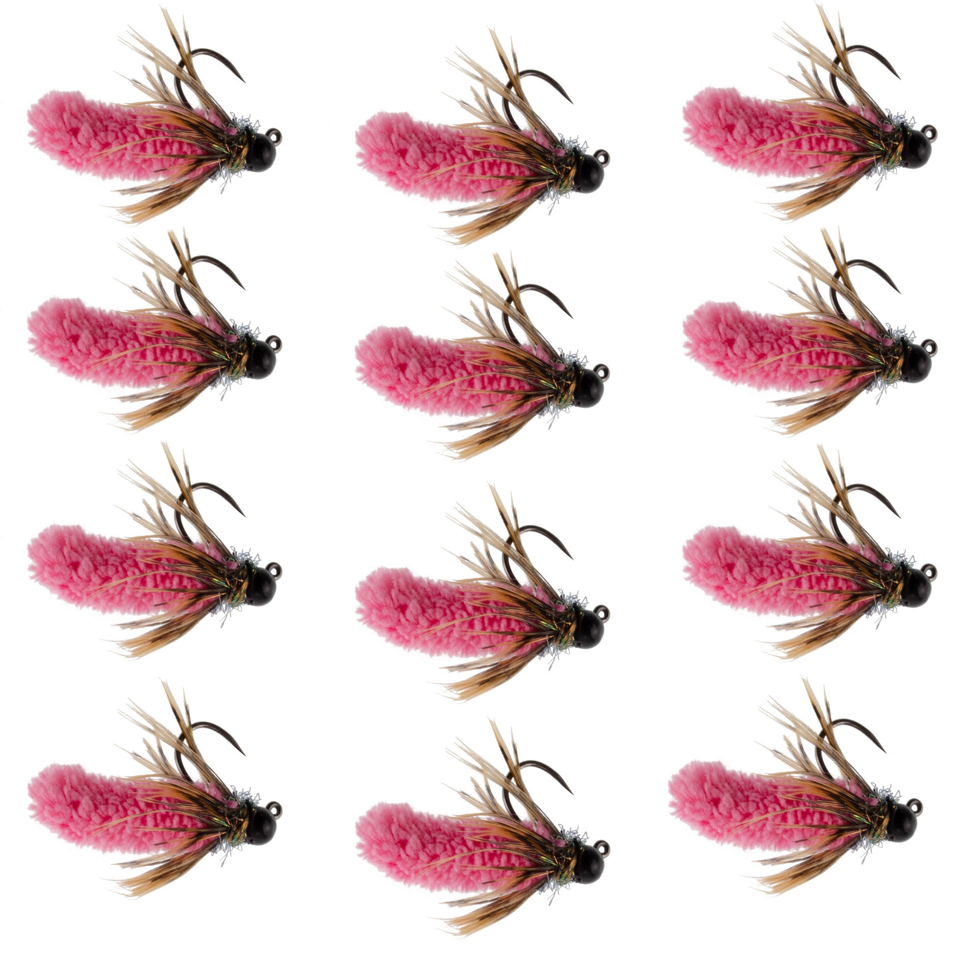 Tungsten Bead Hot Pink Mop Fly Tactical Jig Czech Euro Nymph Barbless Fly 12 Flies - Size 14