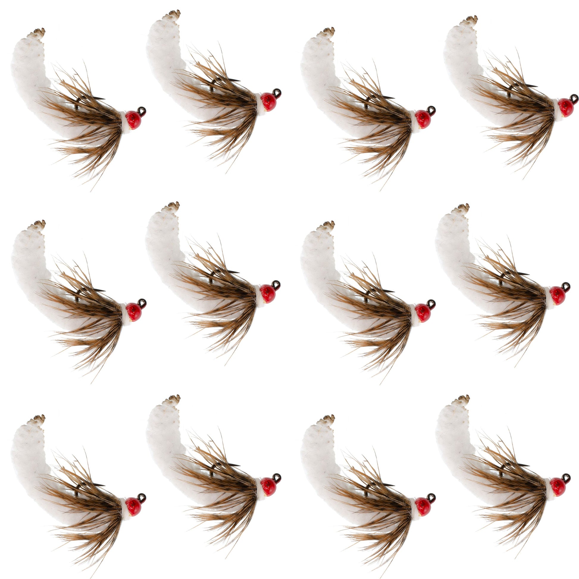 Tungsten Bead White Mop Fly Tactical Jig Czech Euro Nymph Barbless Fly - 1 Dozen Flies Size 14