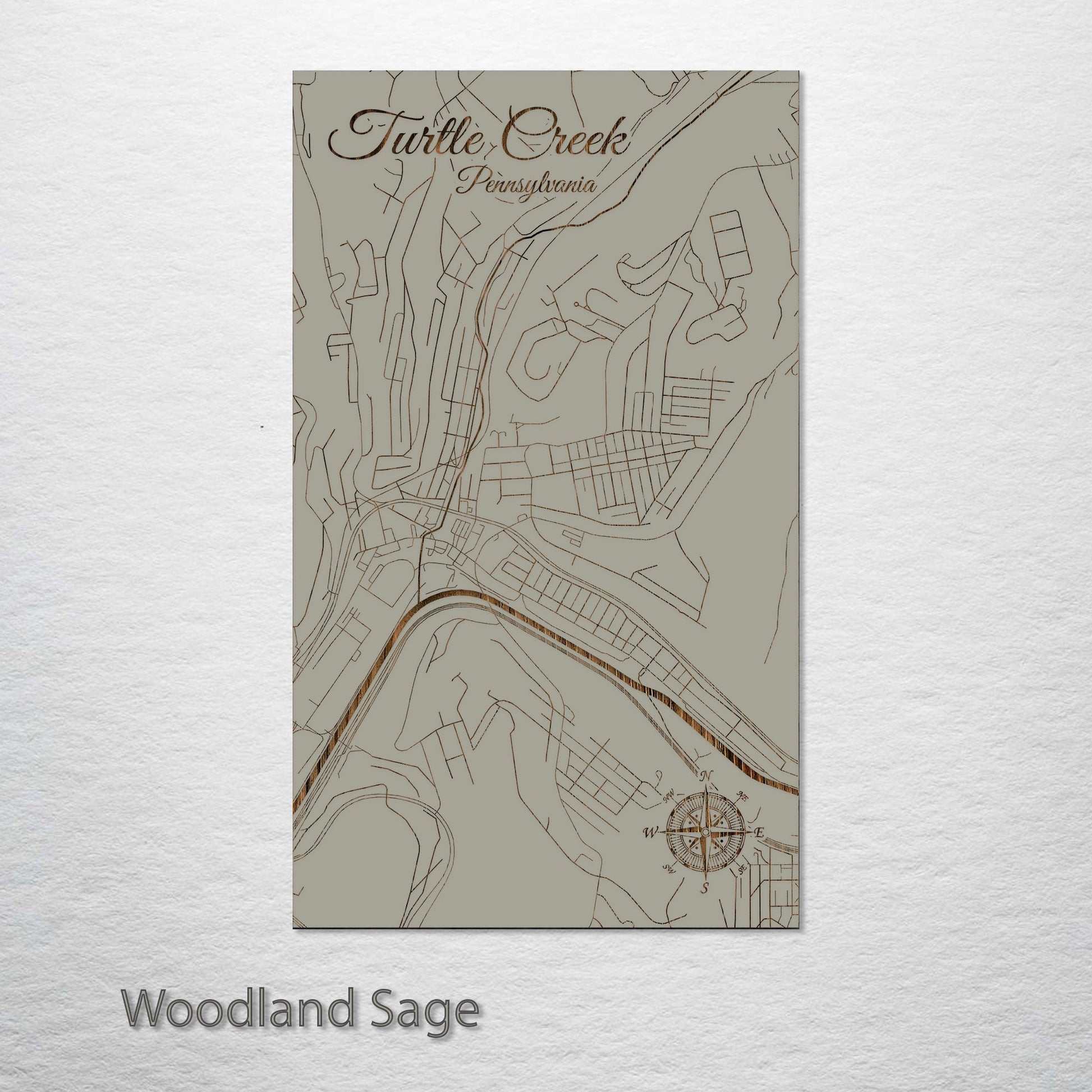 This is a street map of Turtle Creek, PA designed by Fire & Pine artists.