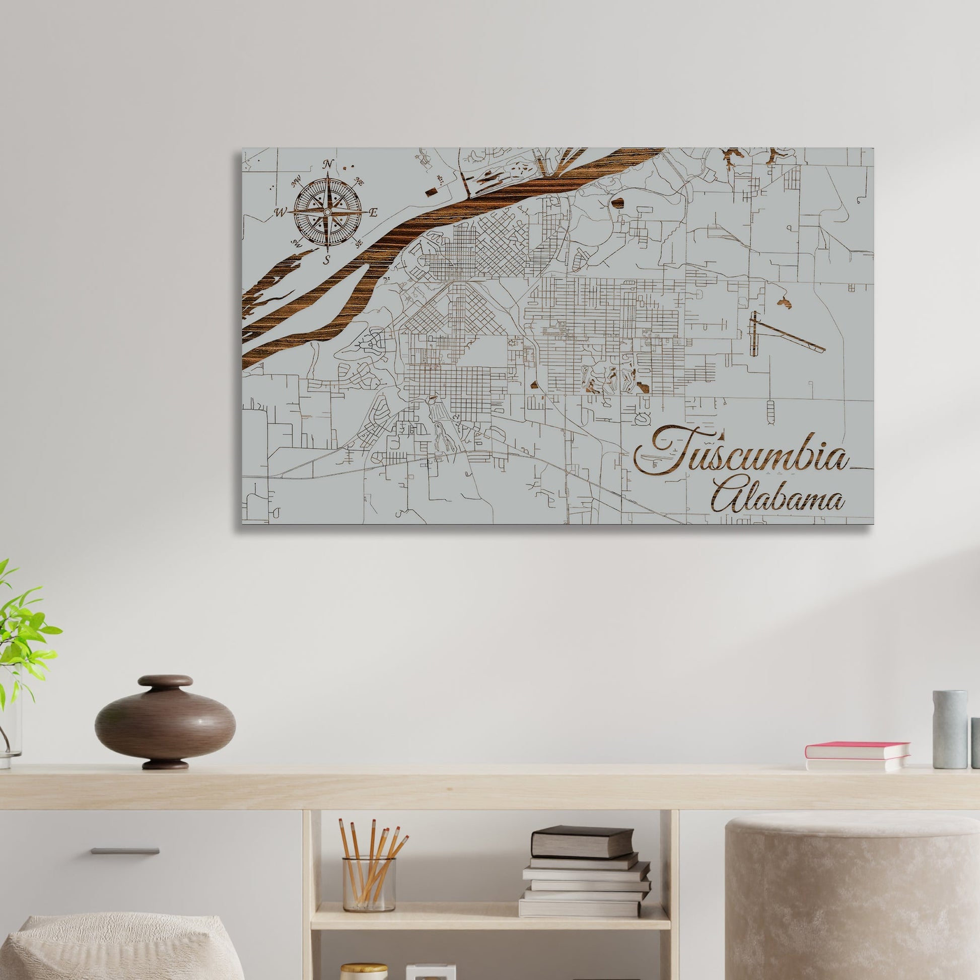 This is a street map of Tuscumbia, AL designed by Fire & Pine artists.