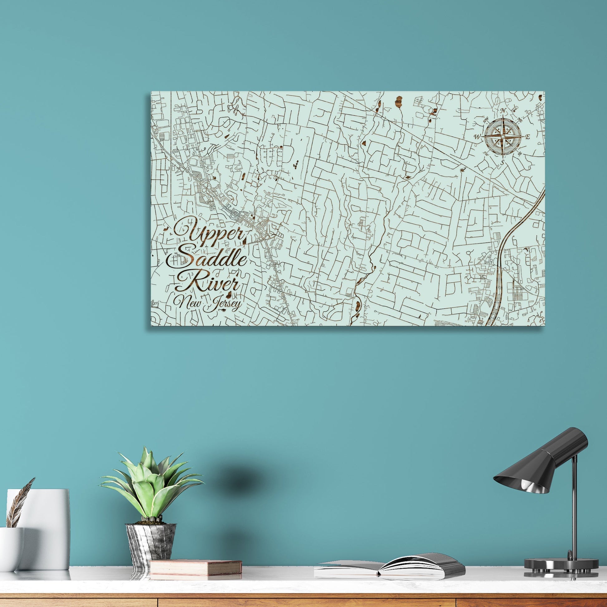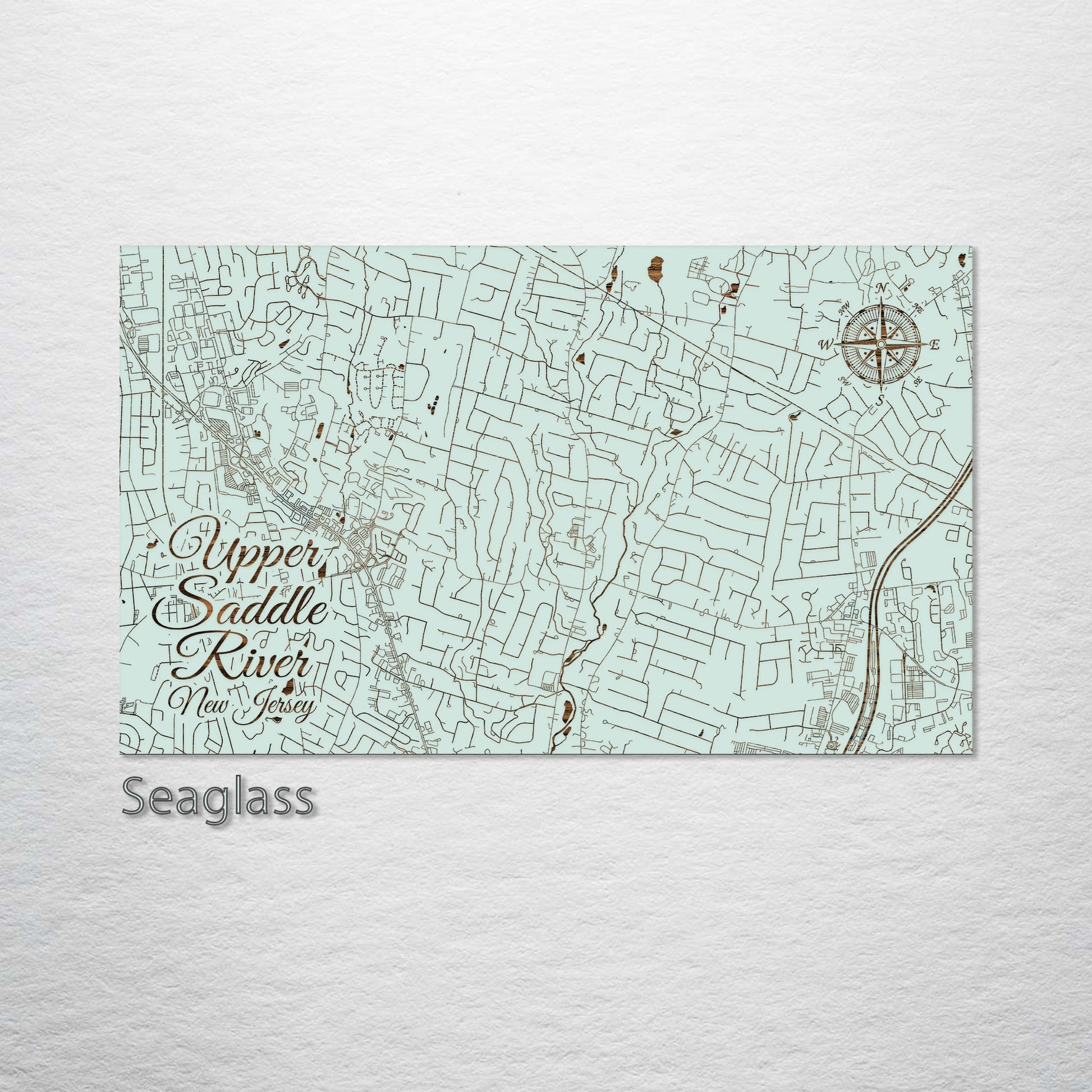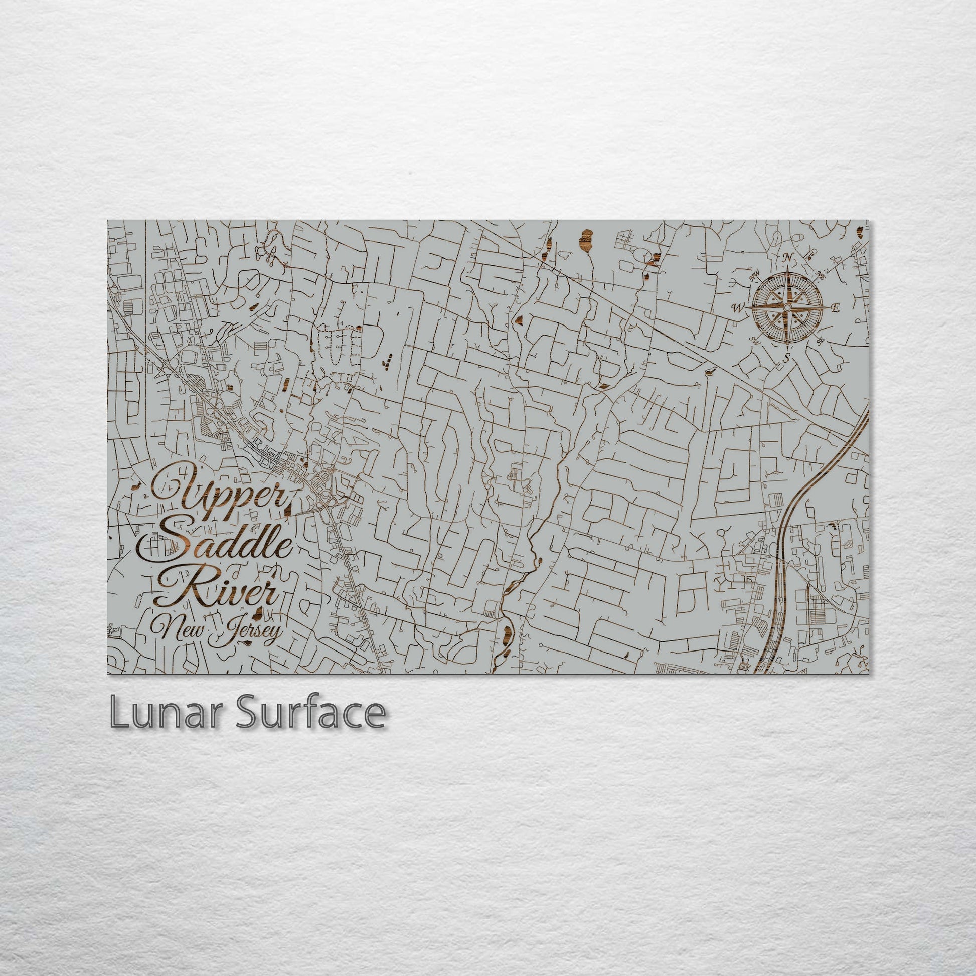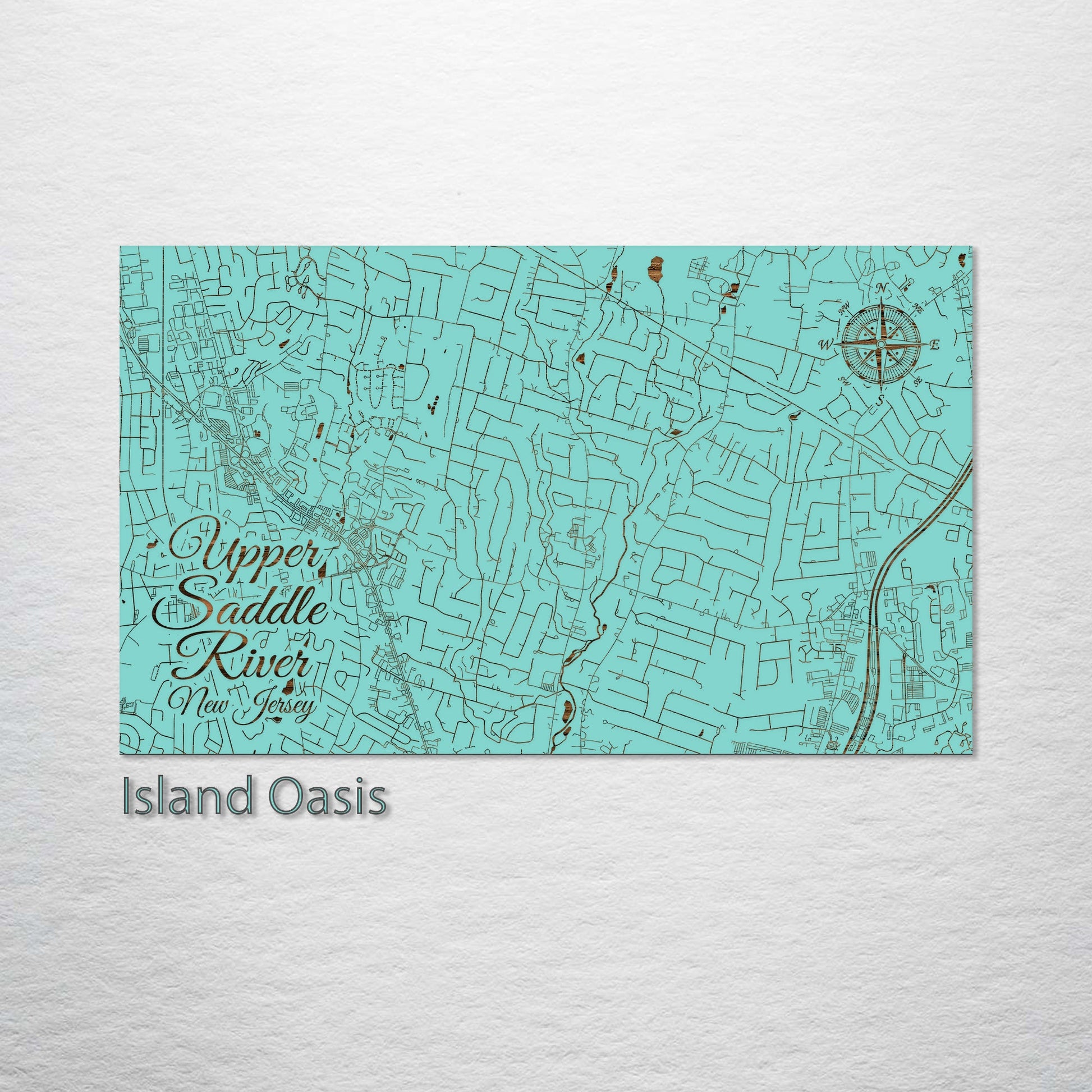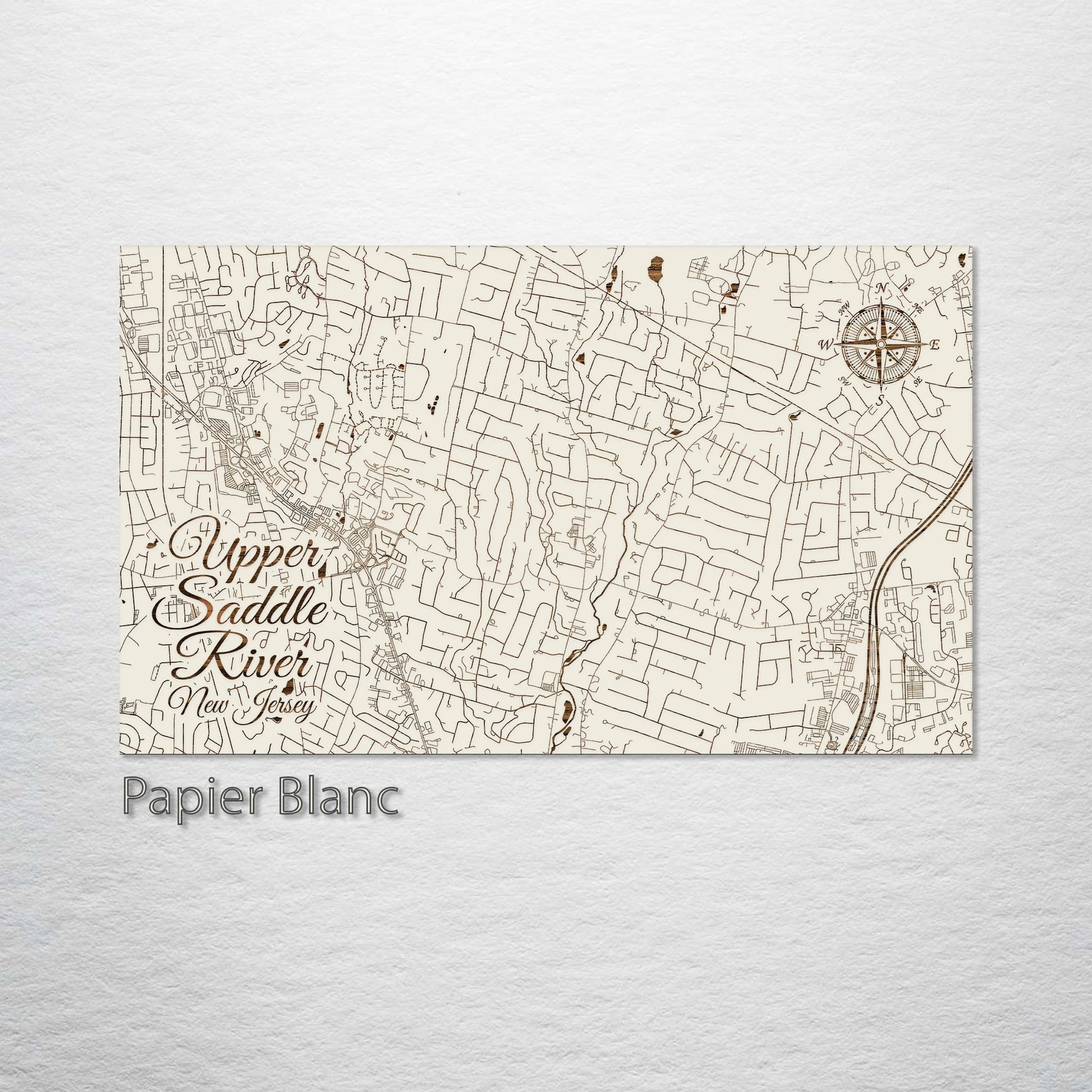This is a street map of Upper Saddle River, NJ designed by Fire & Pine artists.