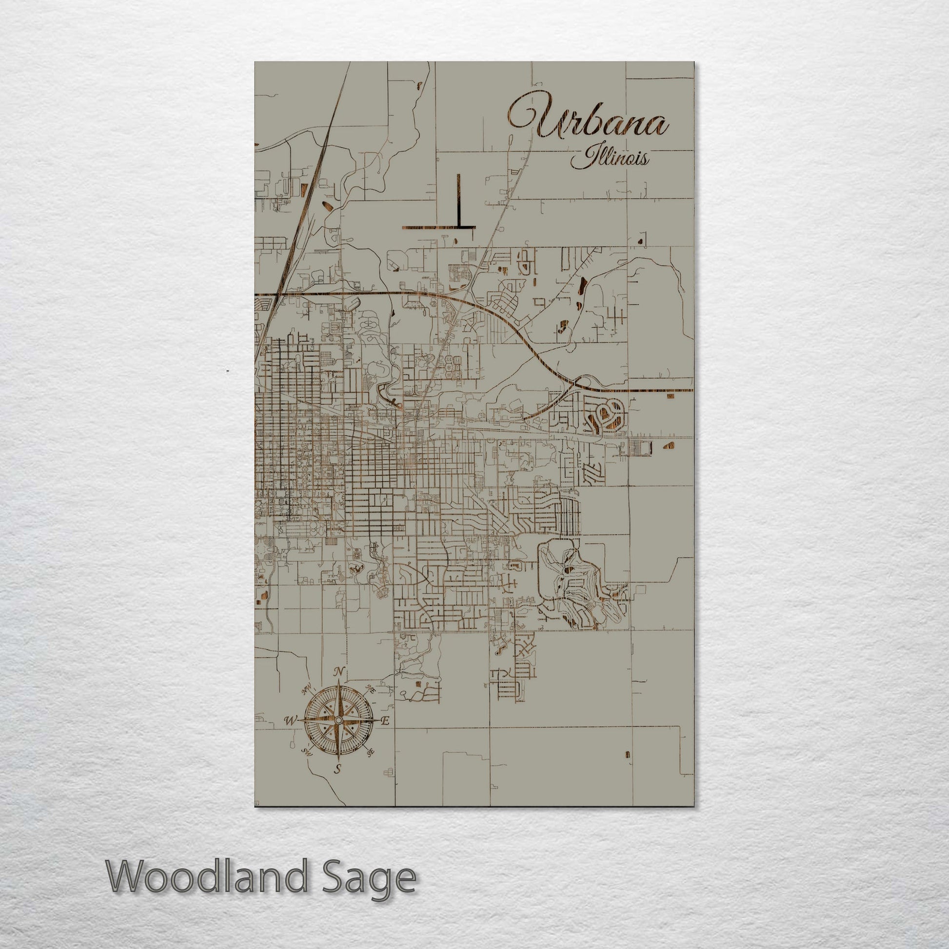 This is a street map of Urbana, IL designed by Fire & Pine artists.