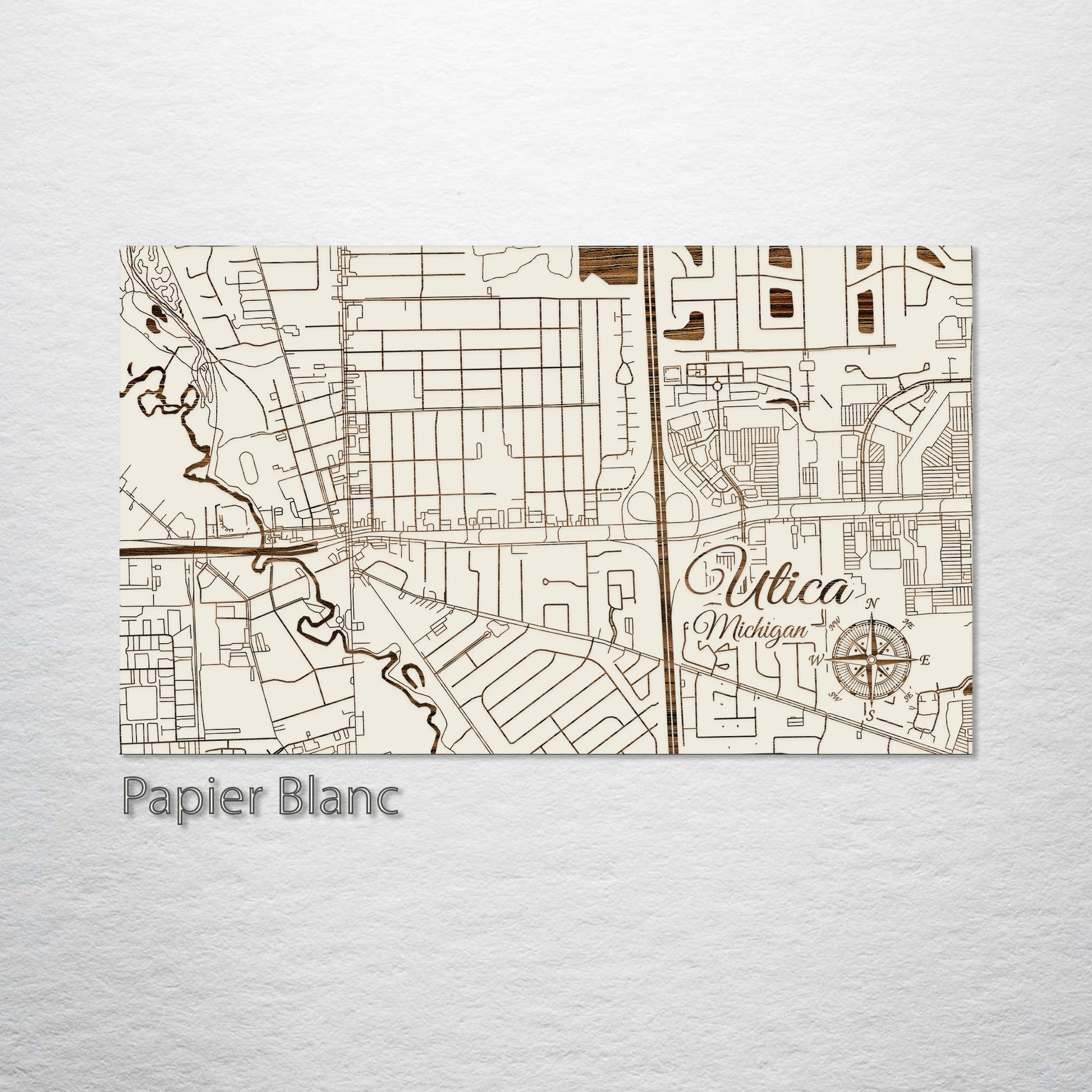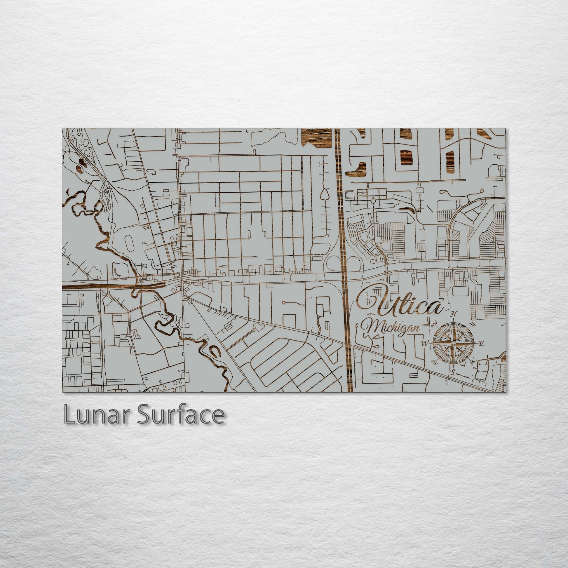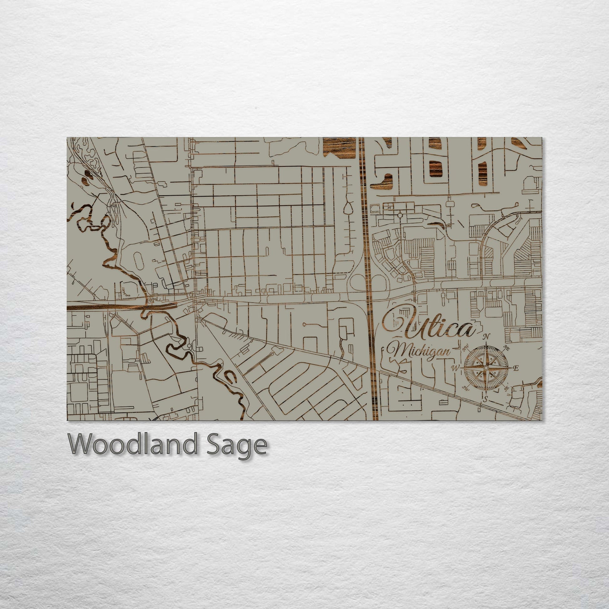 This is a street map of Utica, MI designed by Fire & Pine artists.