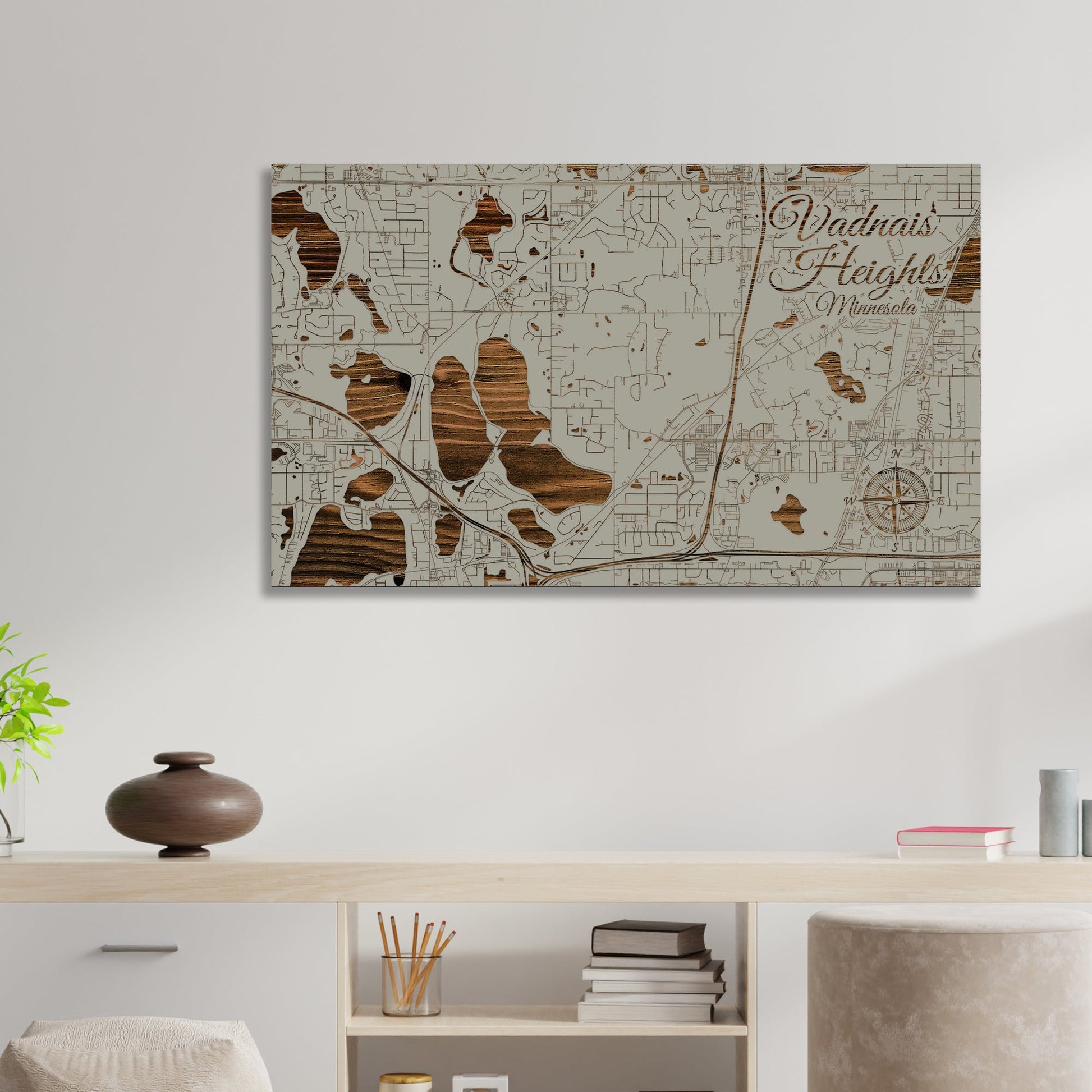 This is a street map of Vadnais Heights, MN designed by Fire & Pine artists.