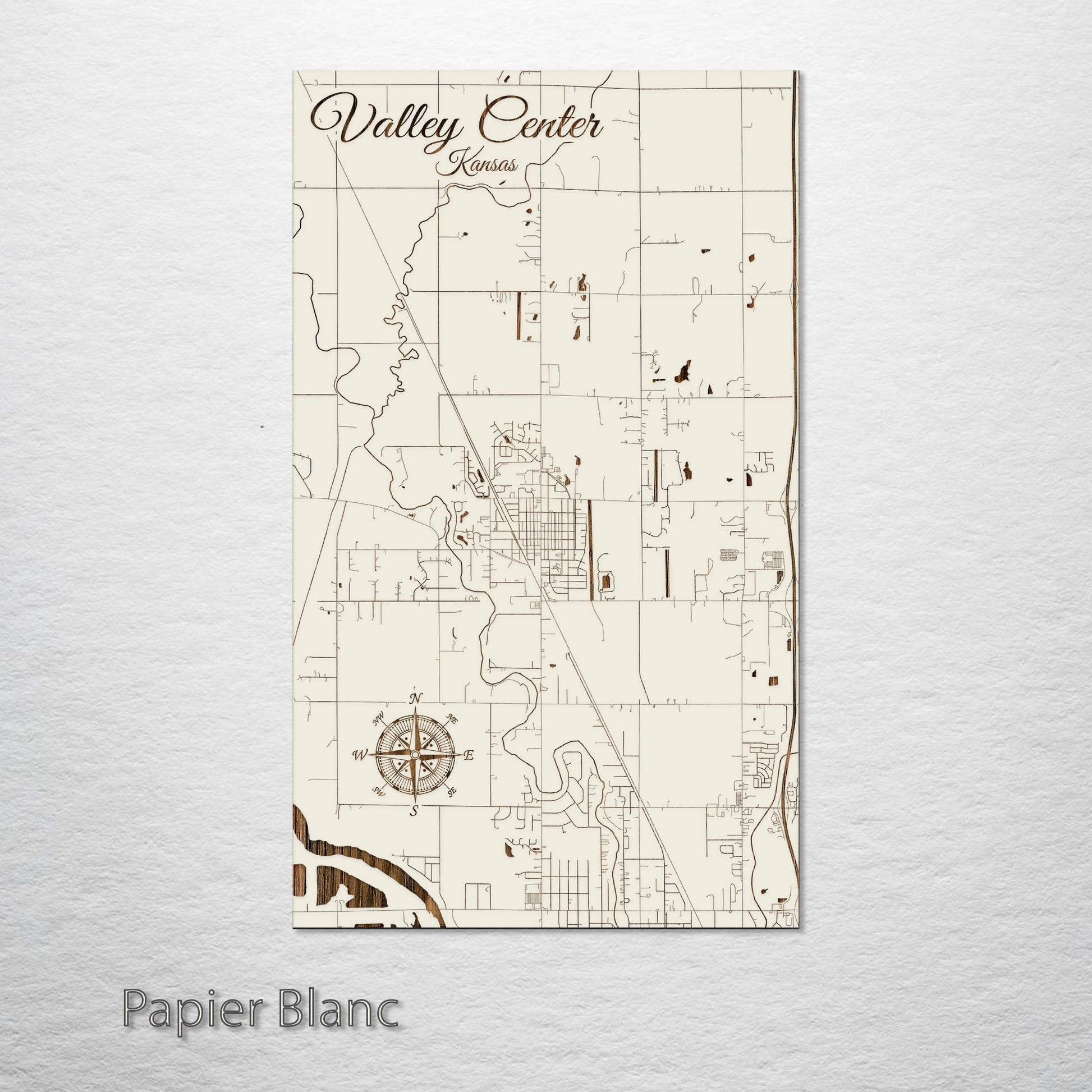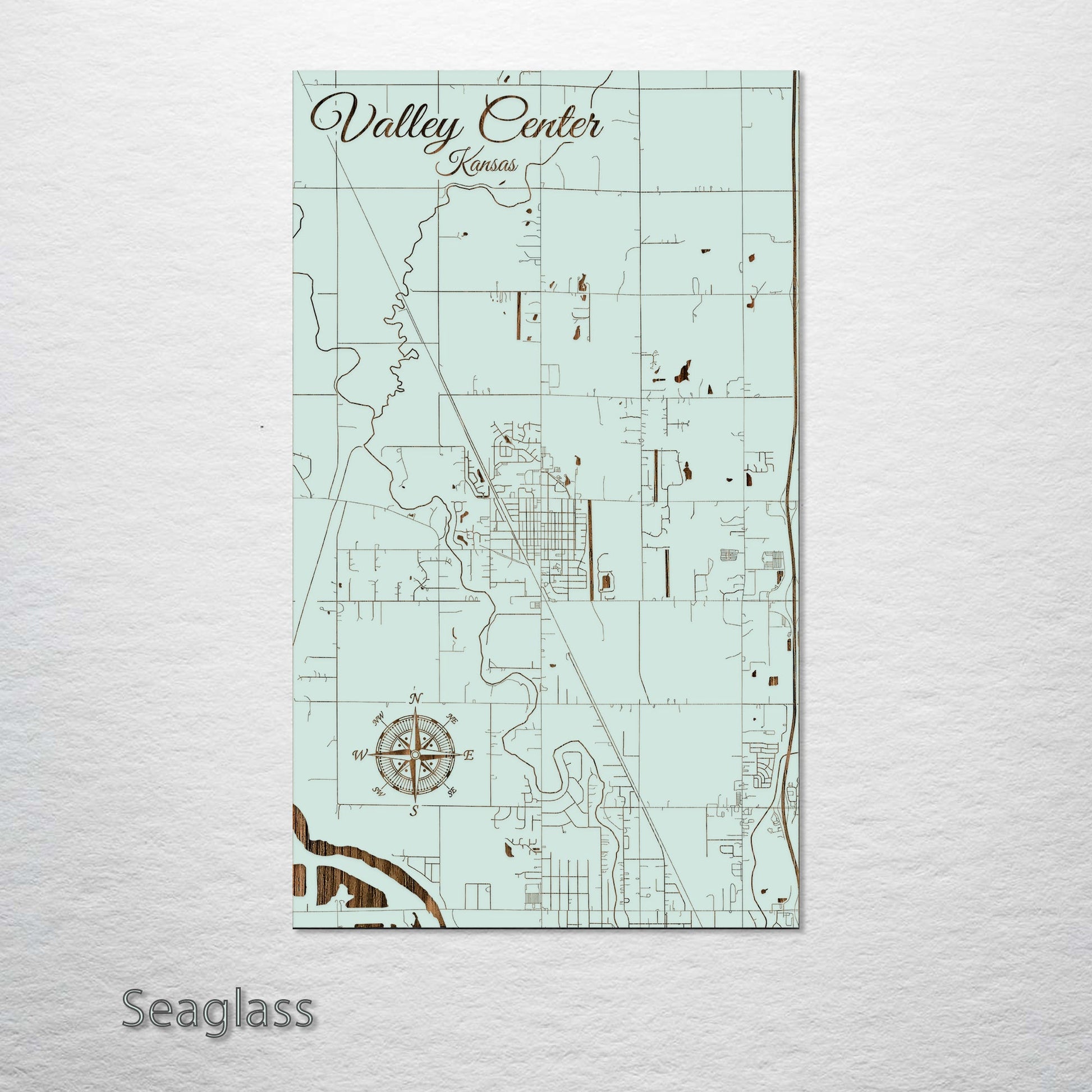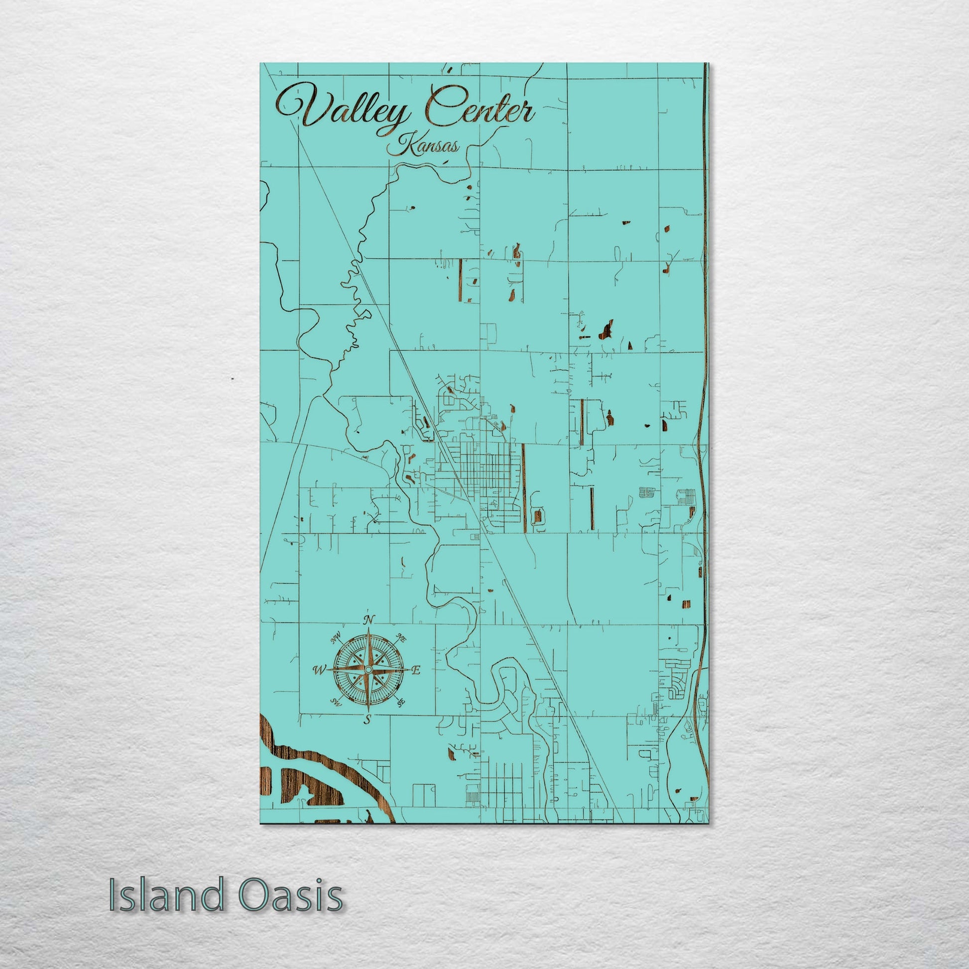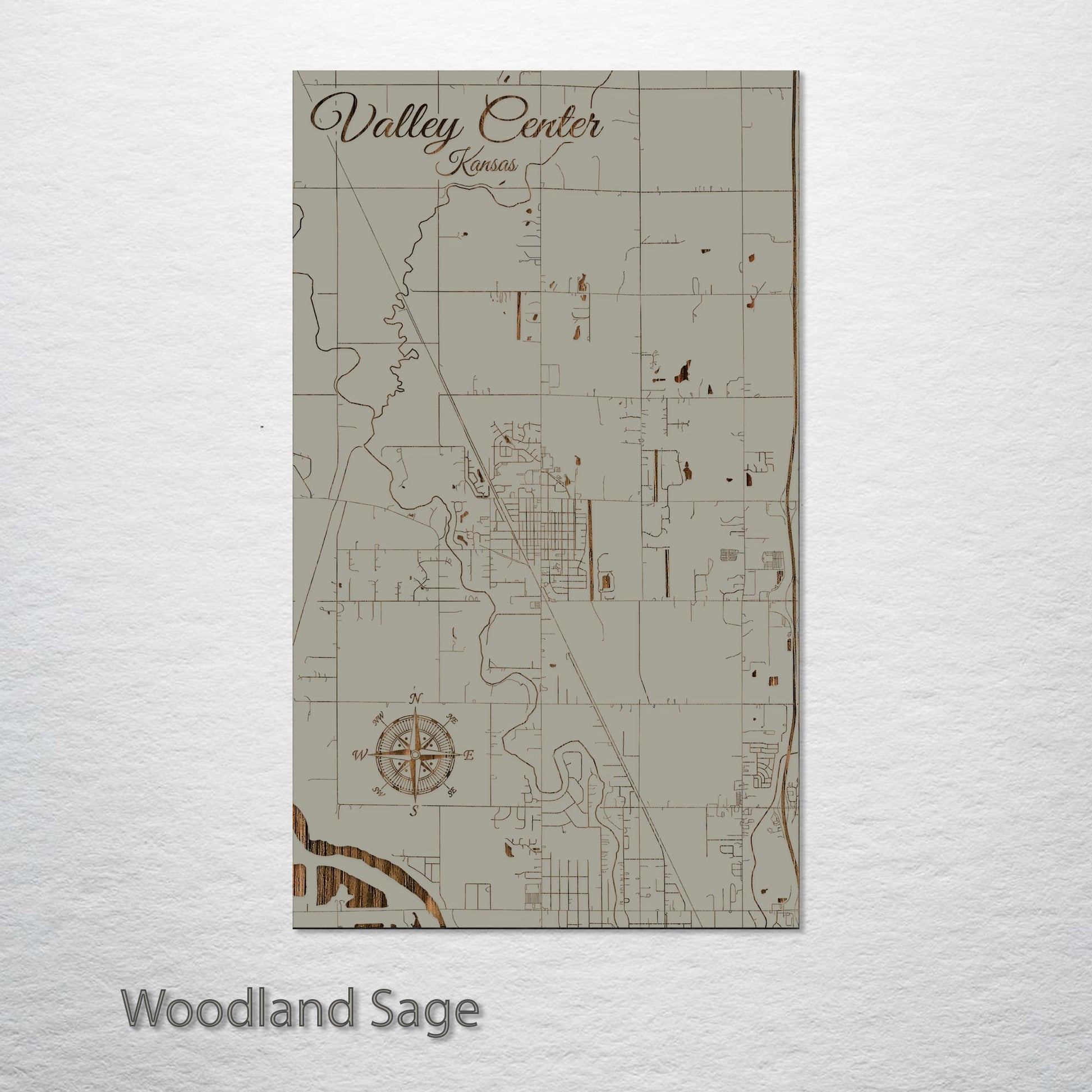 This is a street map of Valley Center, KS designed by Fire & Pine artists.