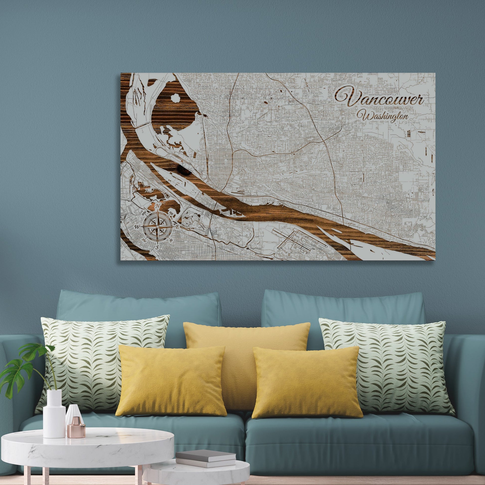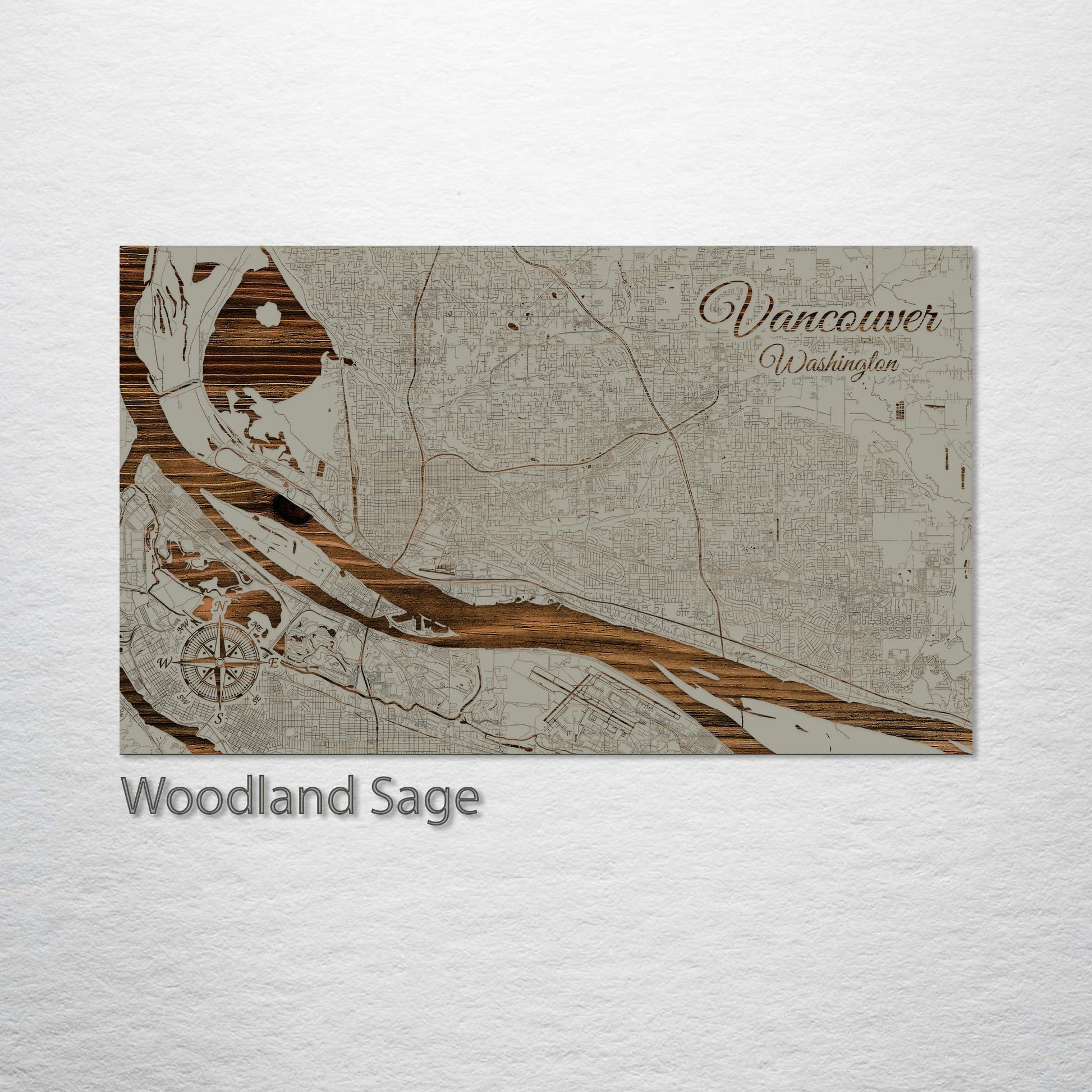 This is a street map of Vancouver, WA designed by Fire & Pine artists.