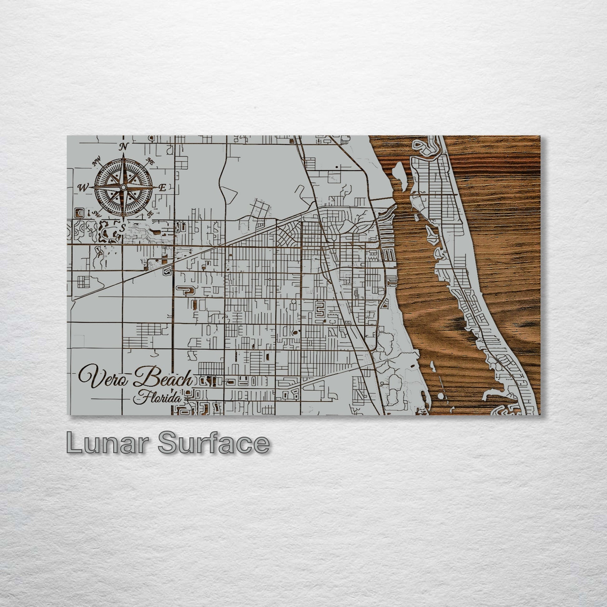 A Masterpiece for Map Enthusiasts: This wood-engraved Vero Beach, Florida street map is an exceptional addition to any collector's collection. Crafted from high-quality pine wood, it brings the intricate details of Vero Beach's streets to life, creating a standout work of art. It's the perfect choice for those who have a passion for maps and cityscapes.
