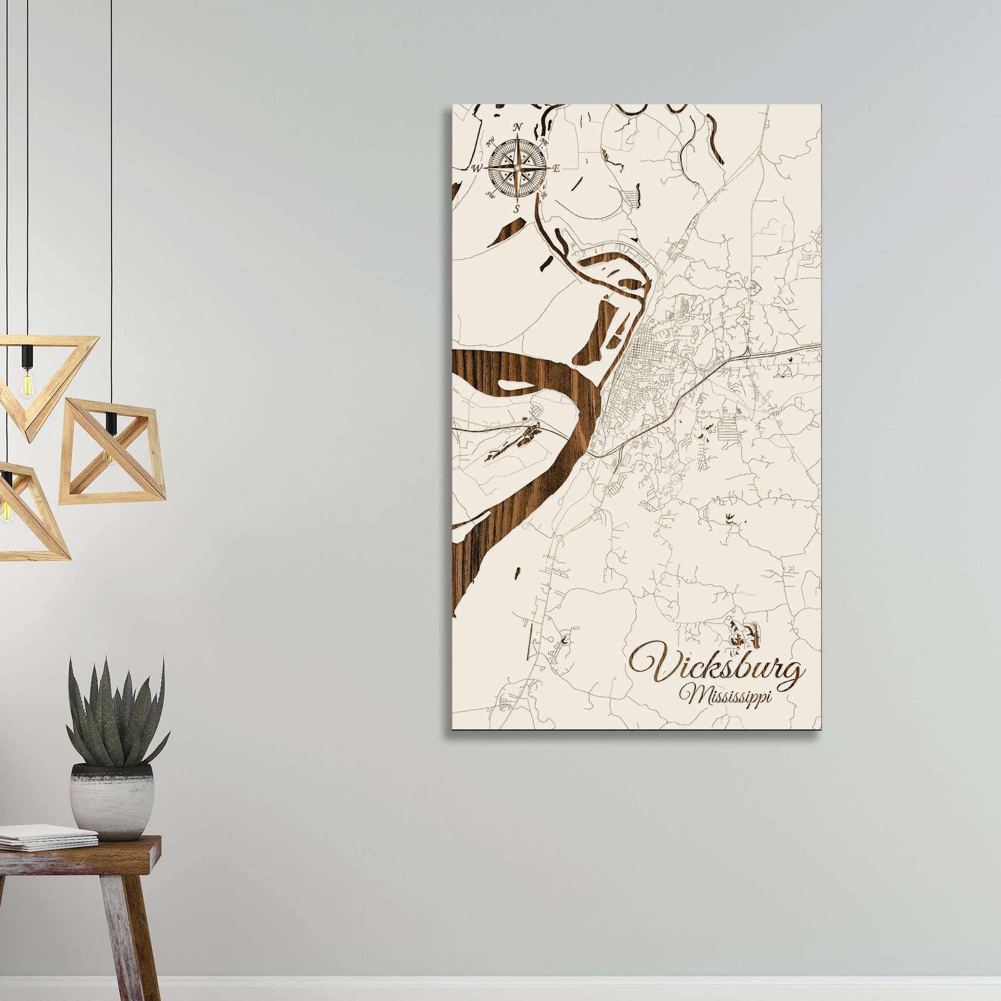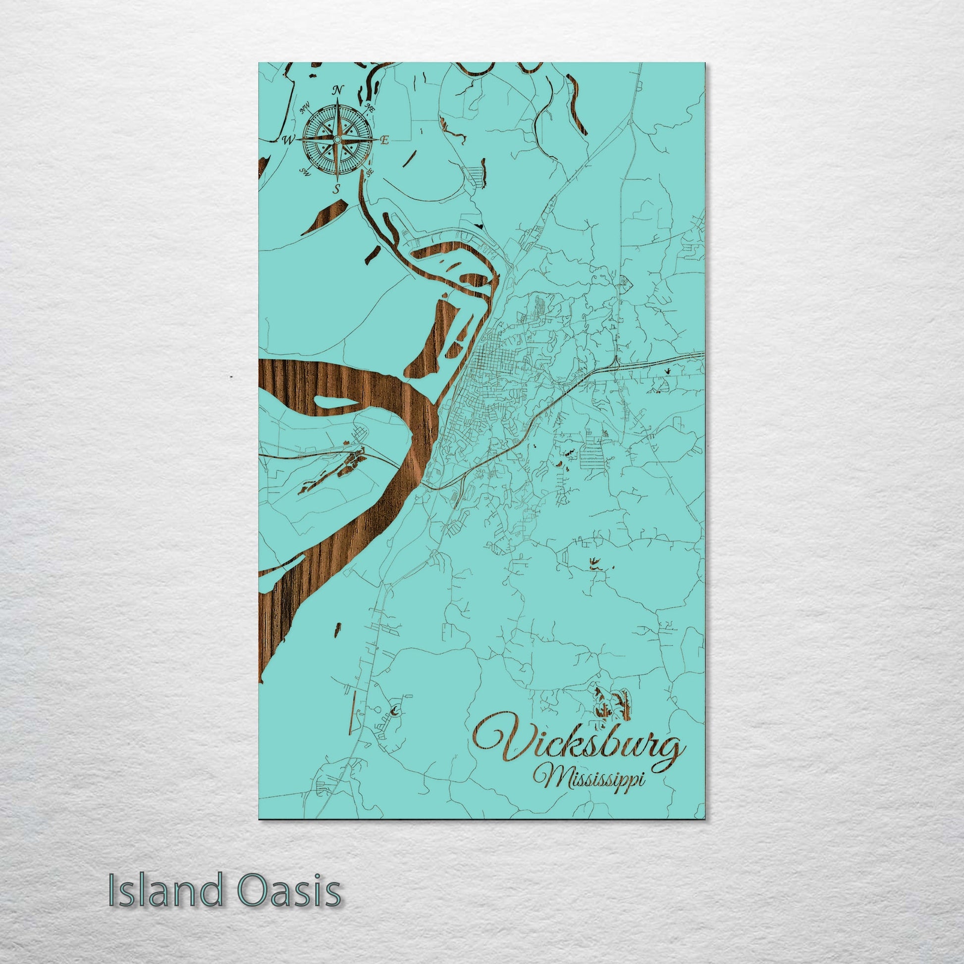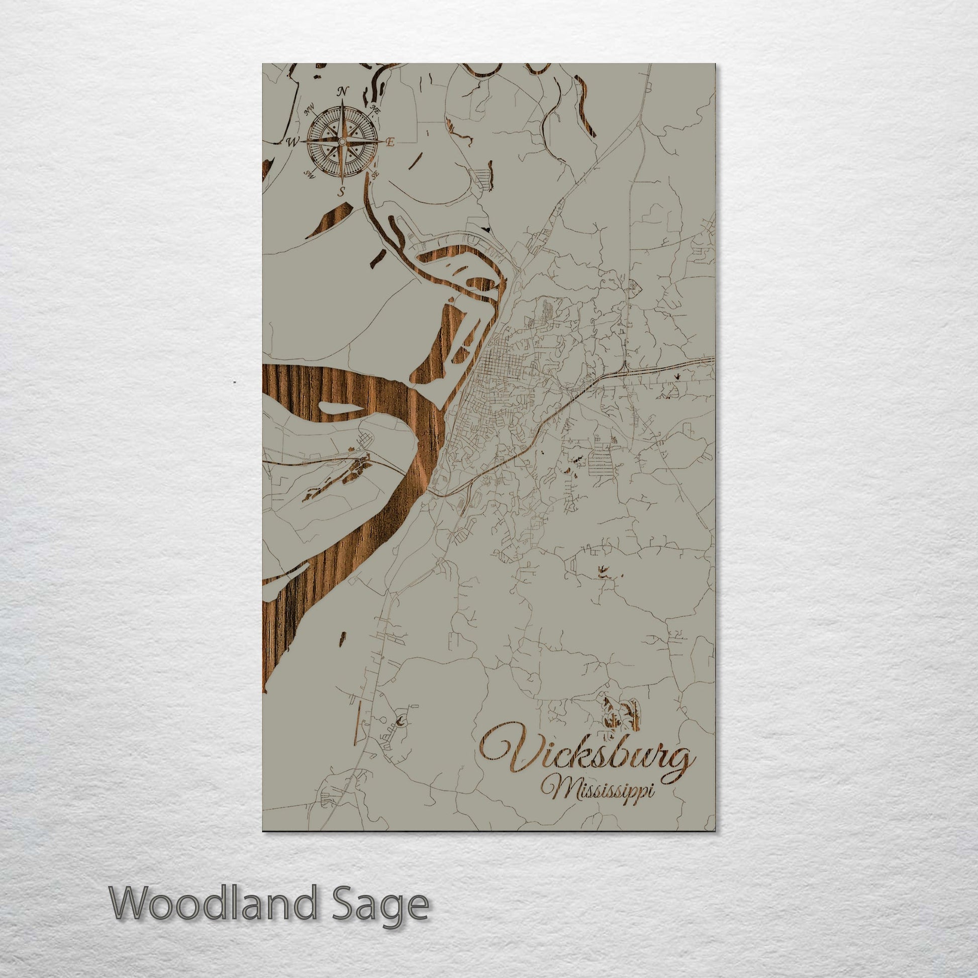 This is a street map of Vicksburg, MS designed by Fire & Pine artists.