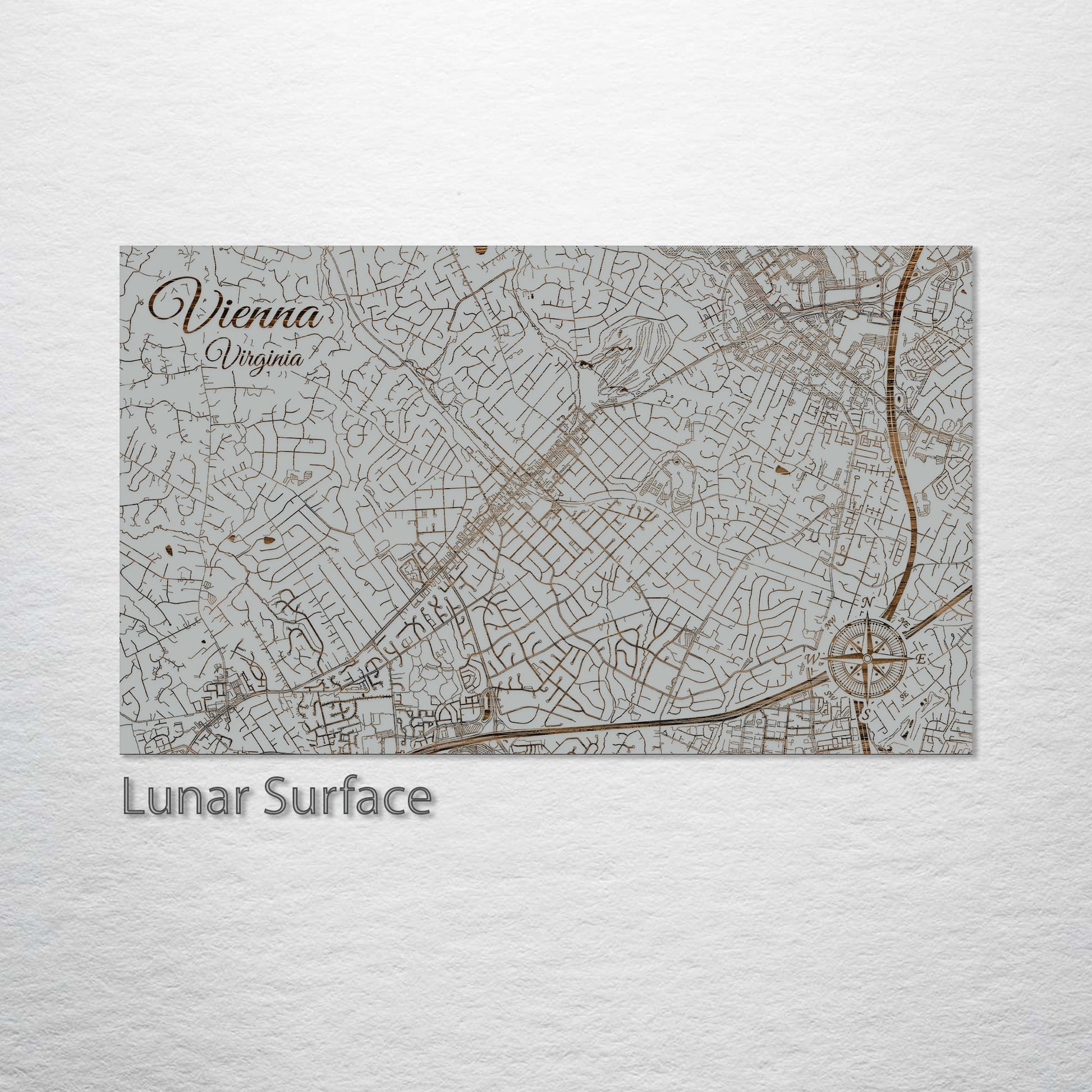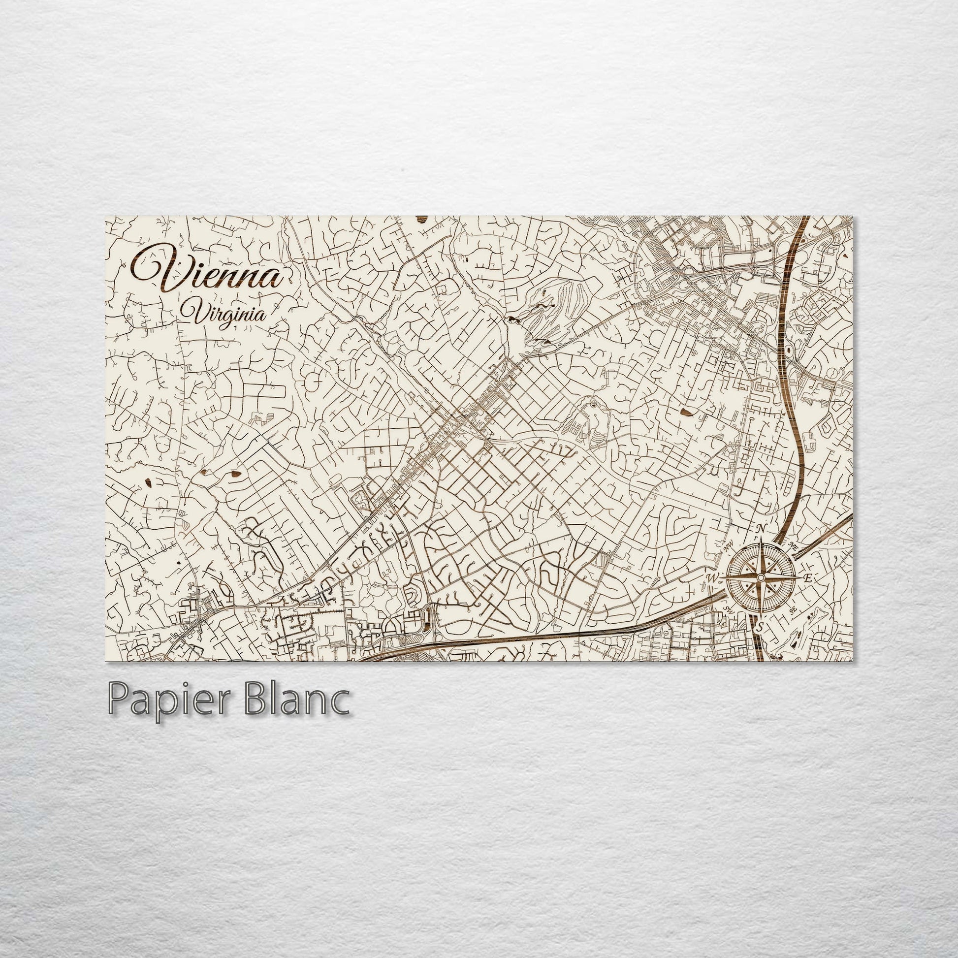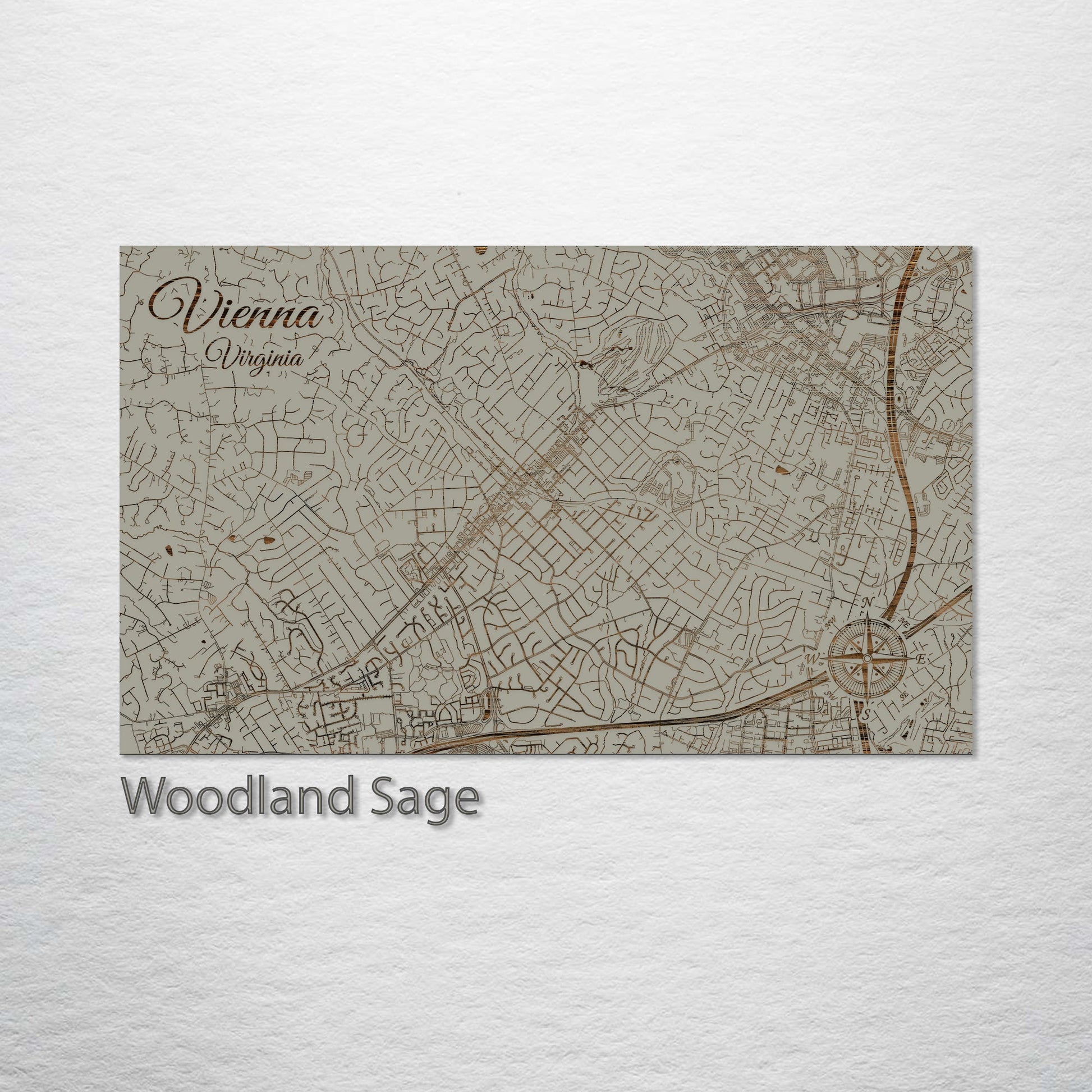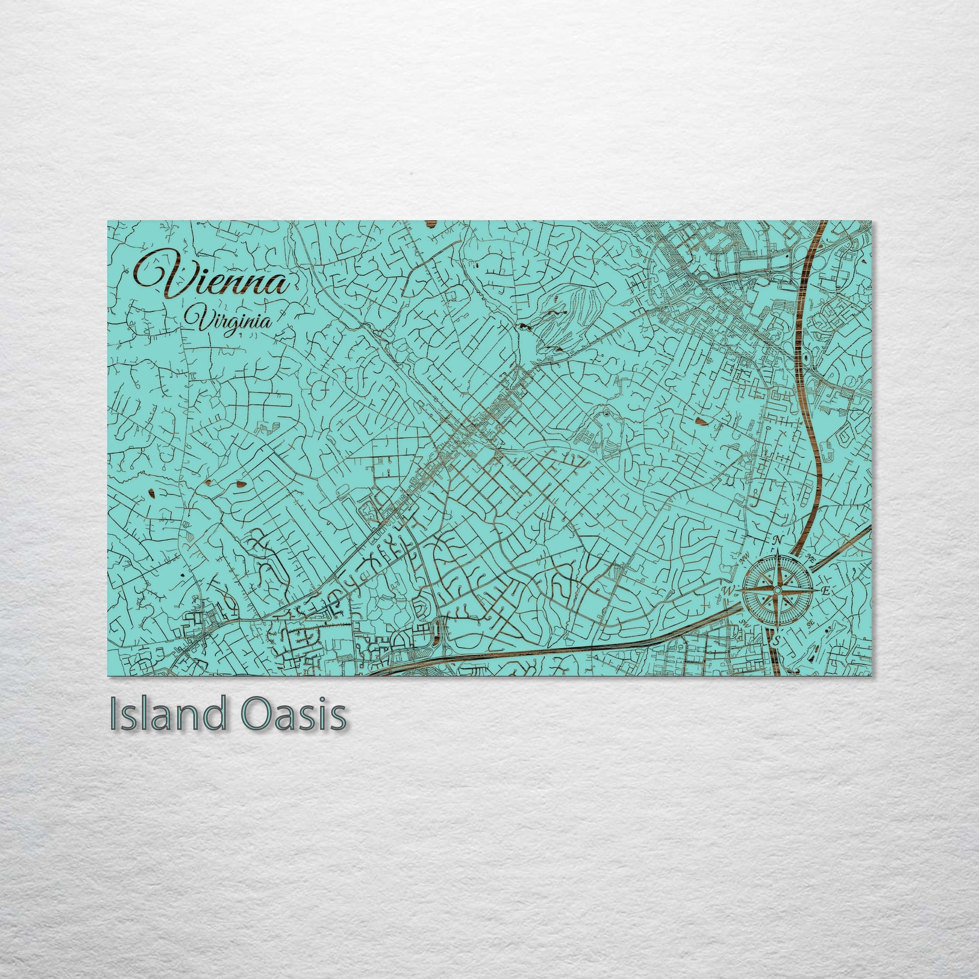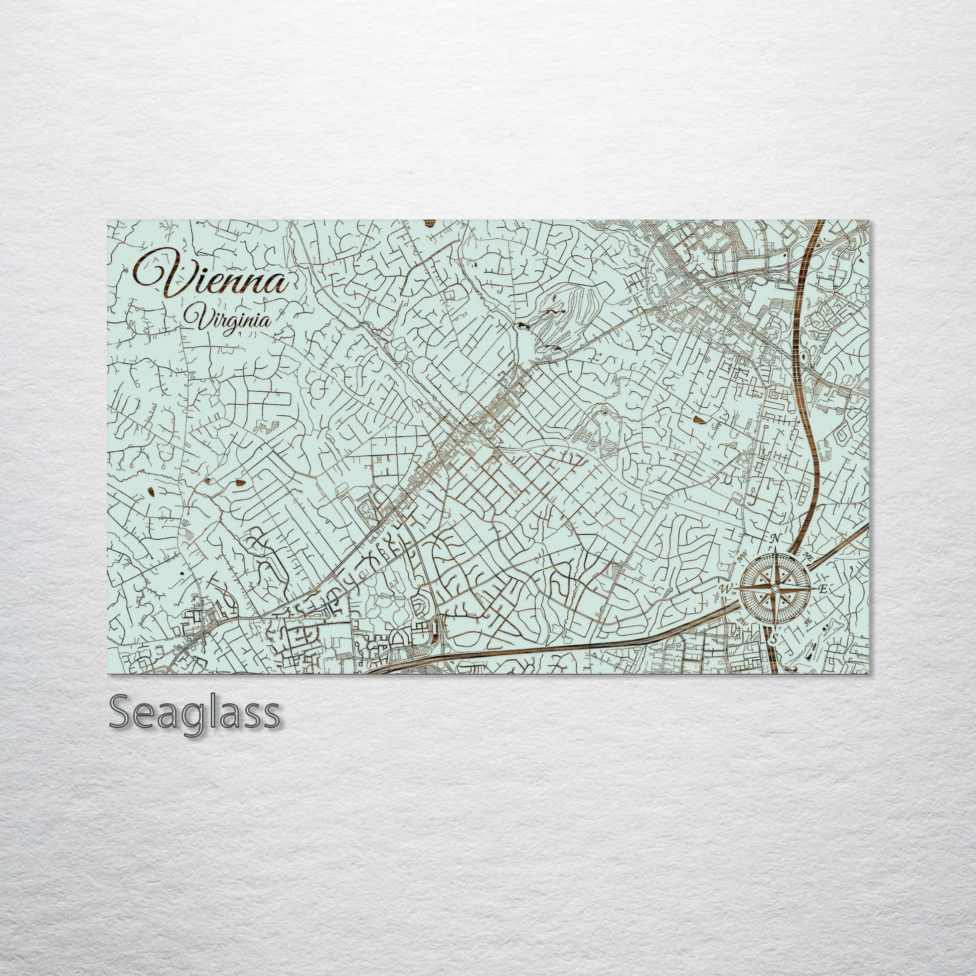 This is a street map of Vienna, VA designed by Fire & Pine artists.