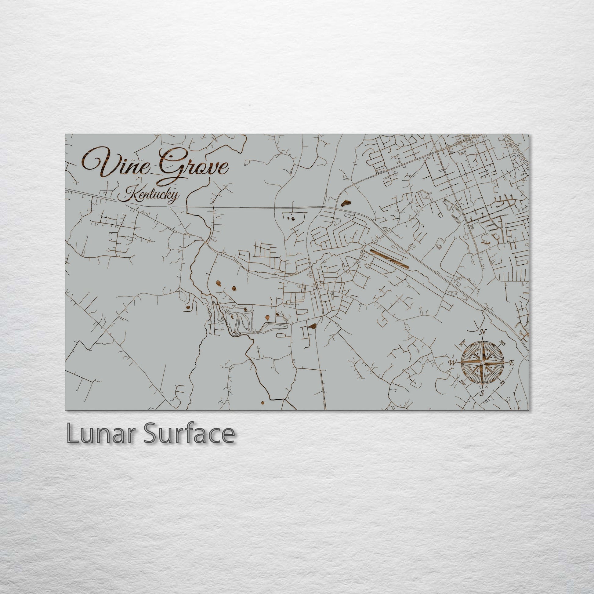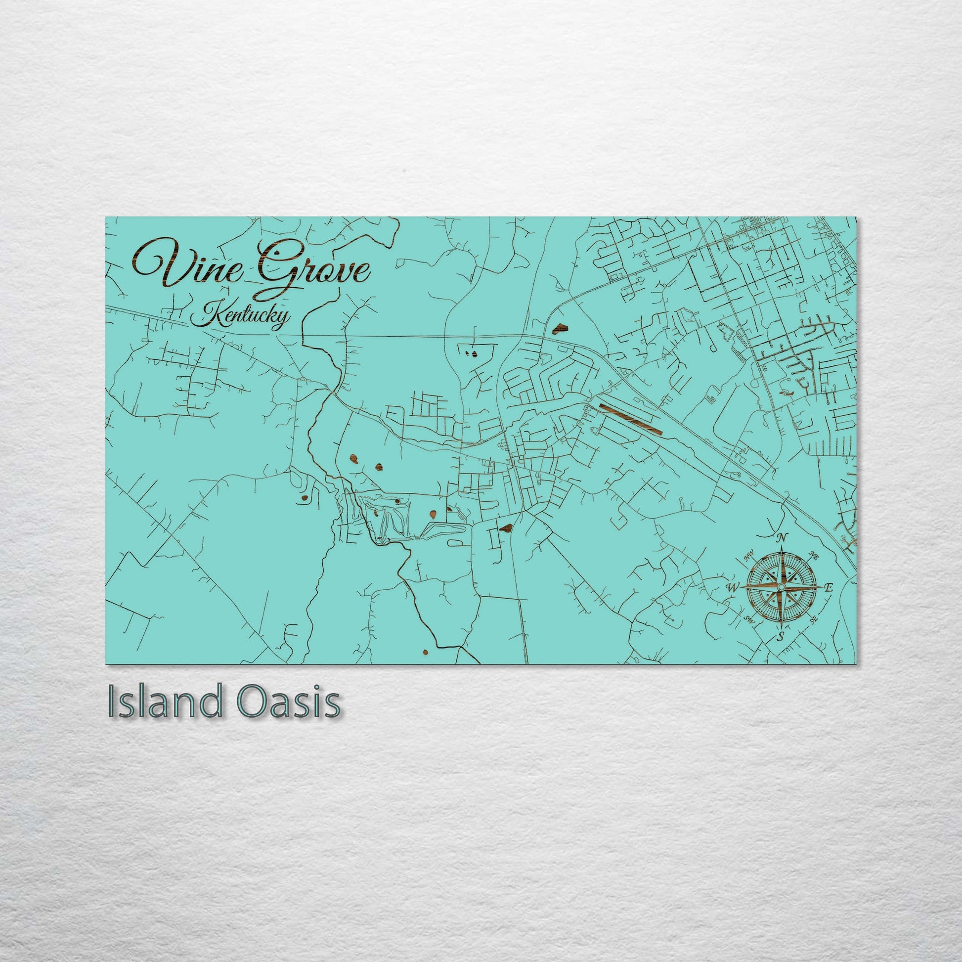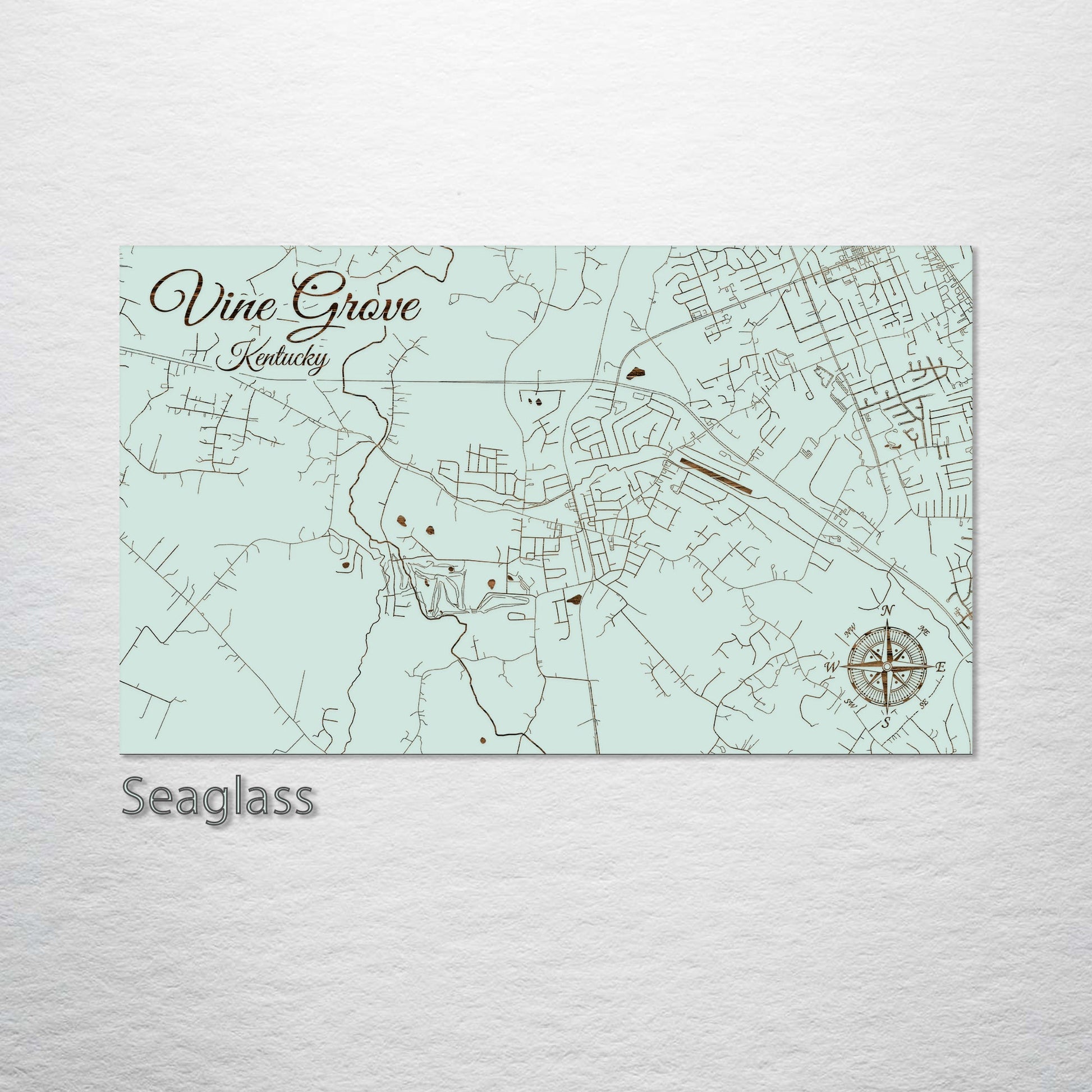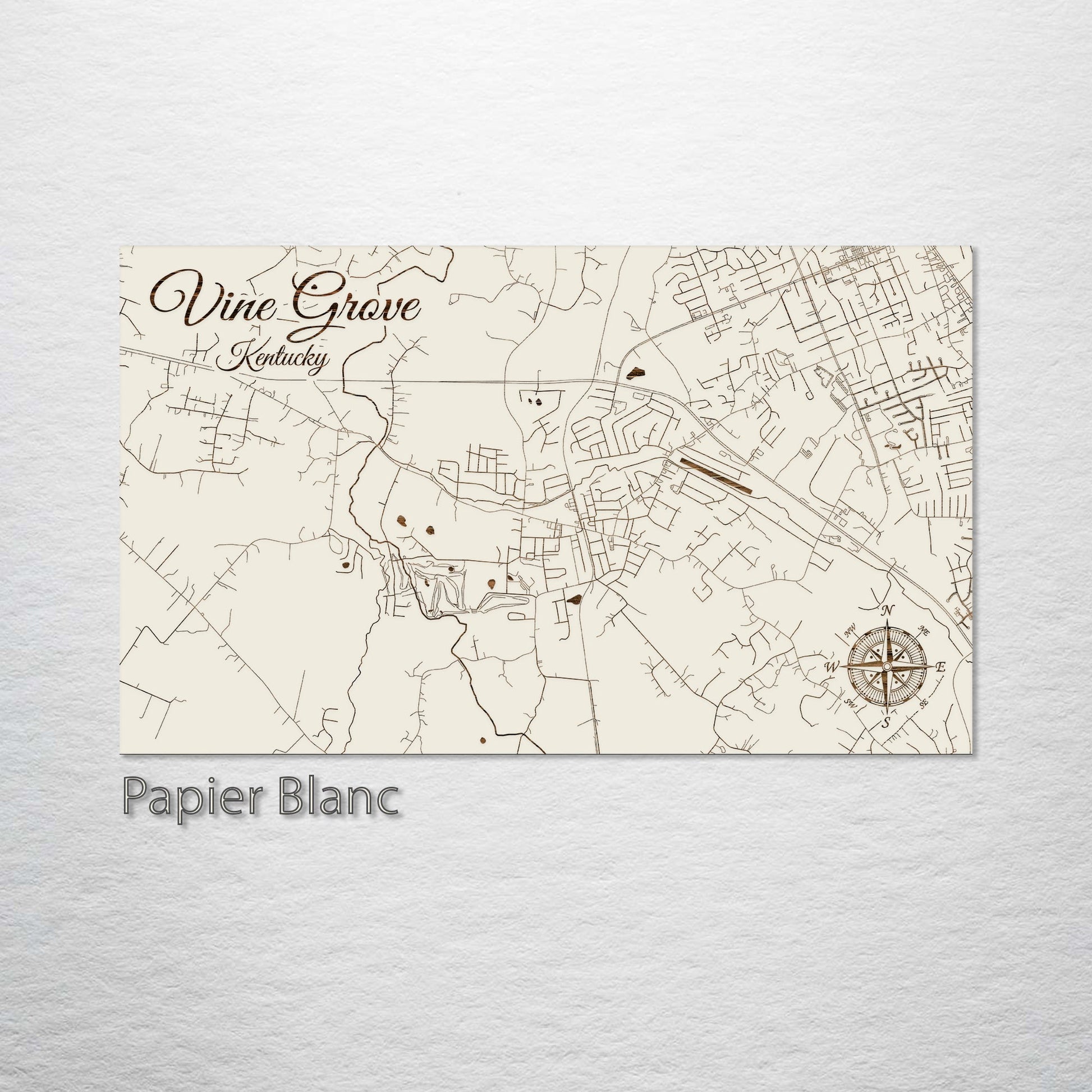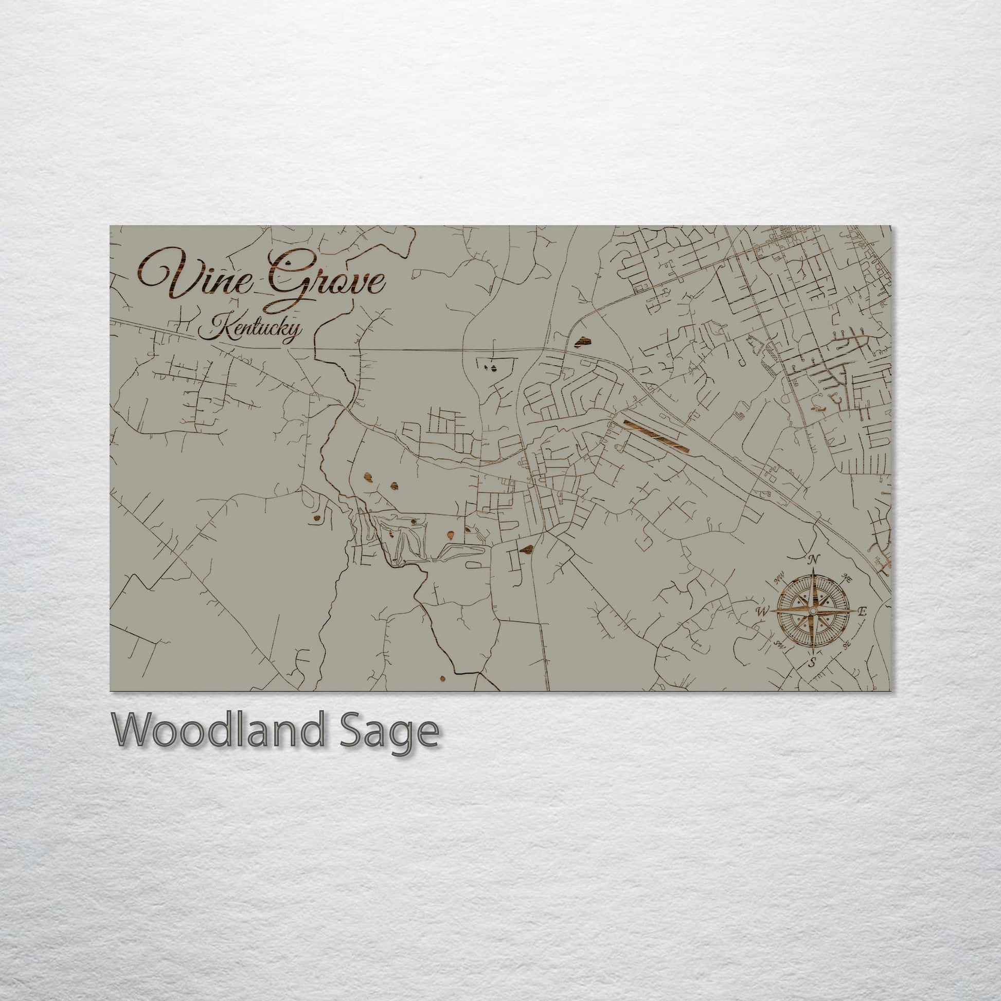 This is a street map of Vine Grove, KY designed by Fire & Pine artists.