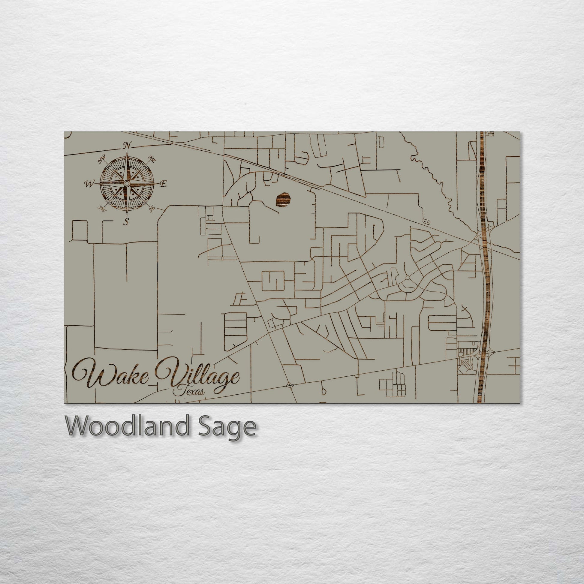 This is a street map of Wake Village, TX designed by Fire & Pine artists.