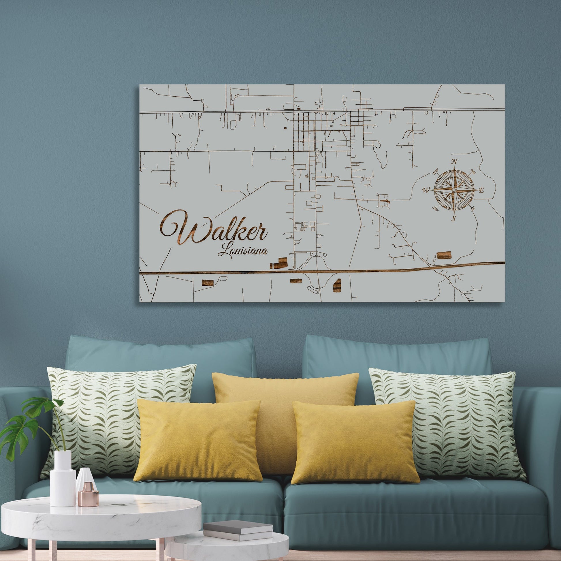 This is a street map of Walker, LA designed by Fire & Pine artists.