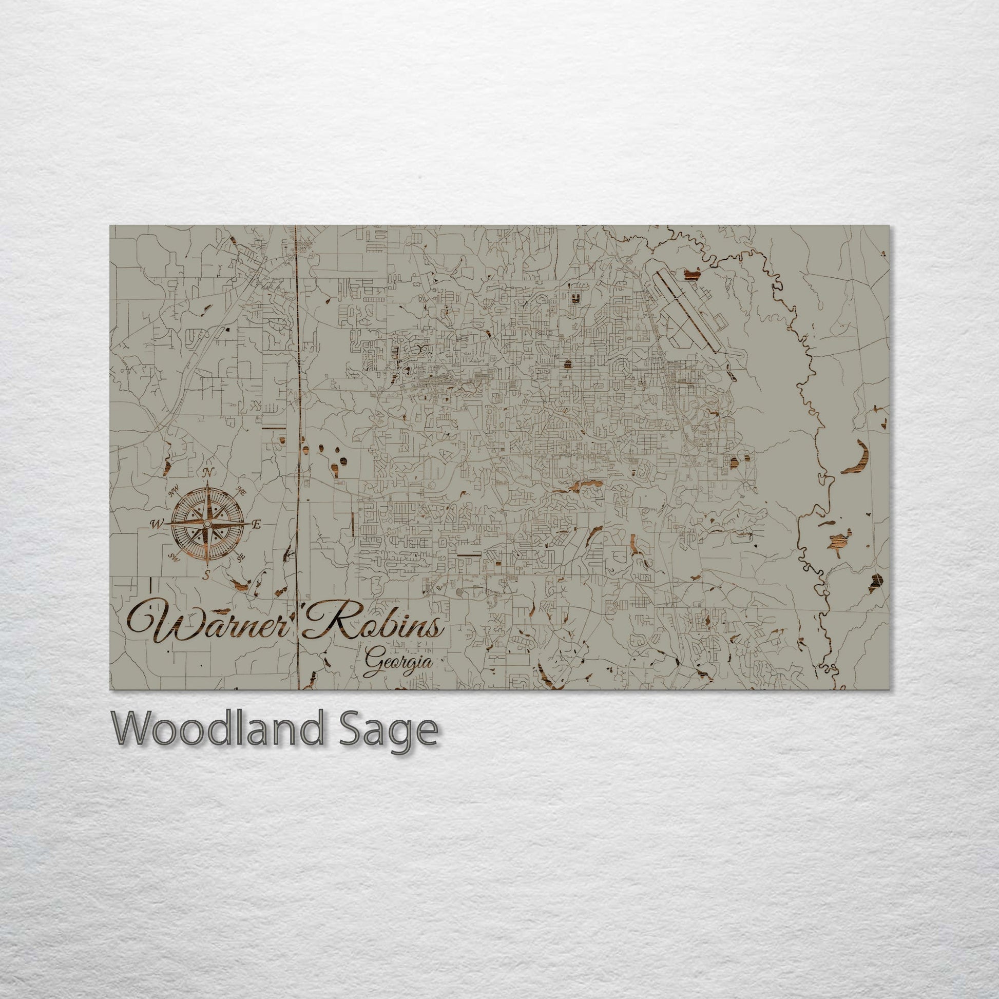 This is a street map of Warner Robins, GA designed by Fire & Pine artists.