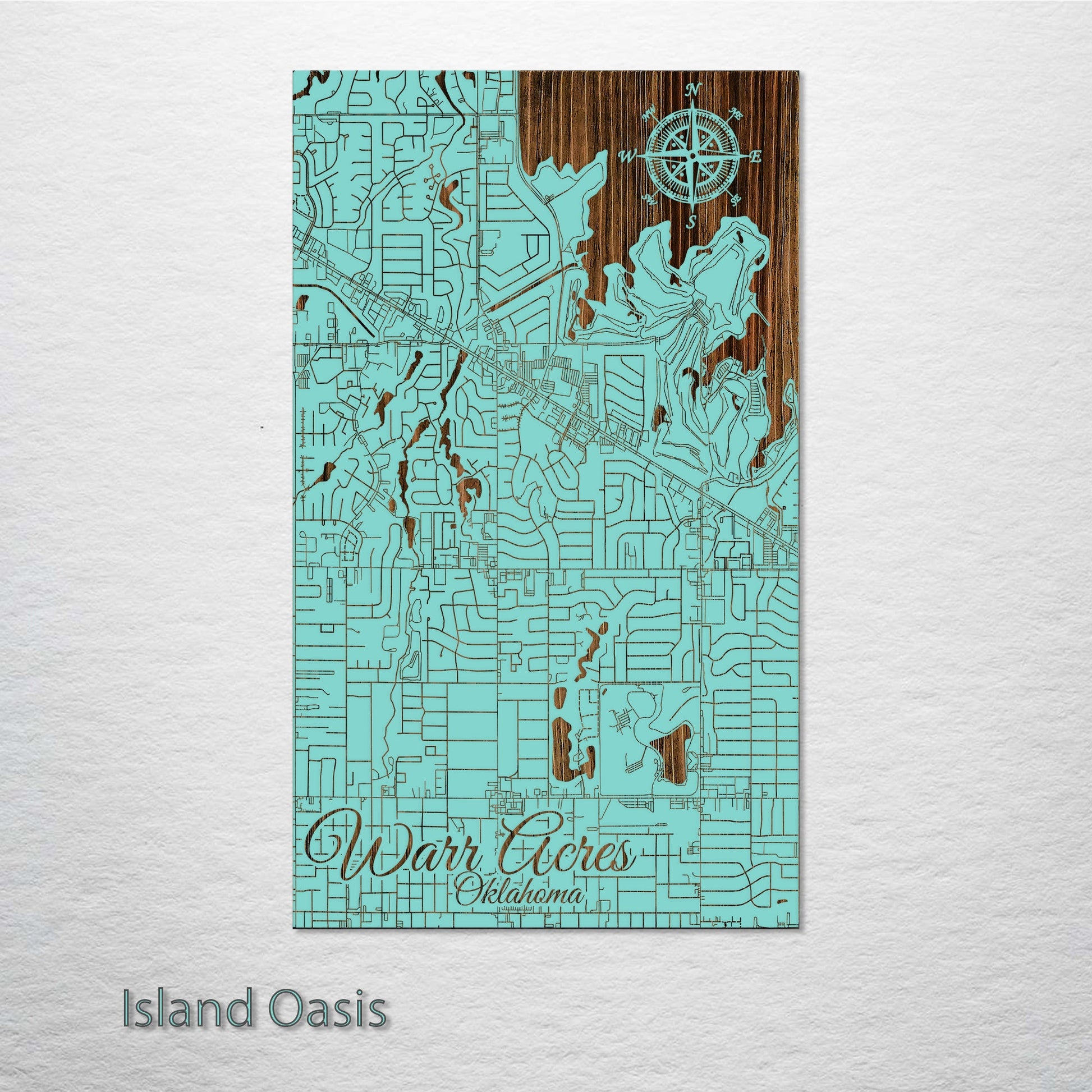 This is a street map of Warr Acres, OK designed by Fire & Pine artists.