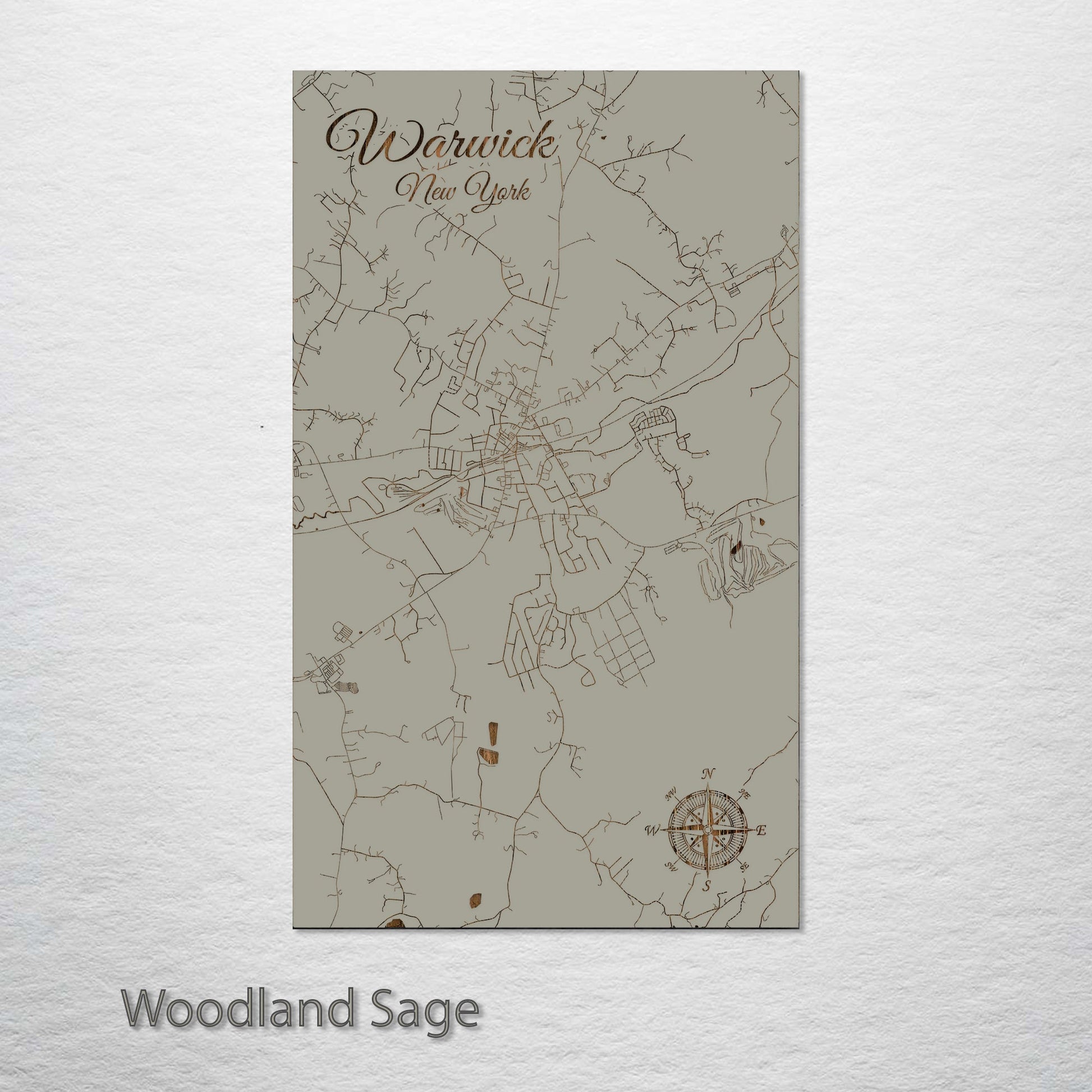 This is a street map of Warwick, NY designed by Fire & Pine artists.