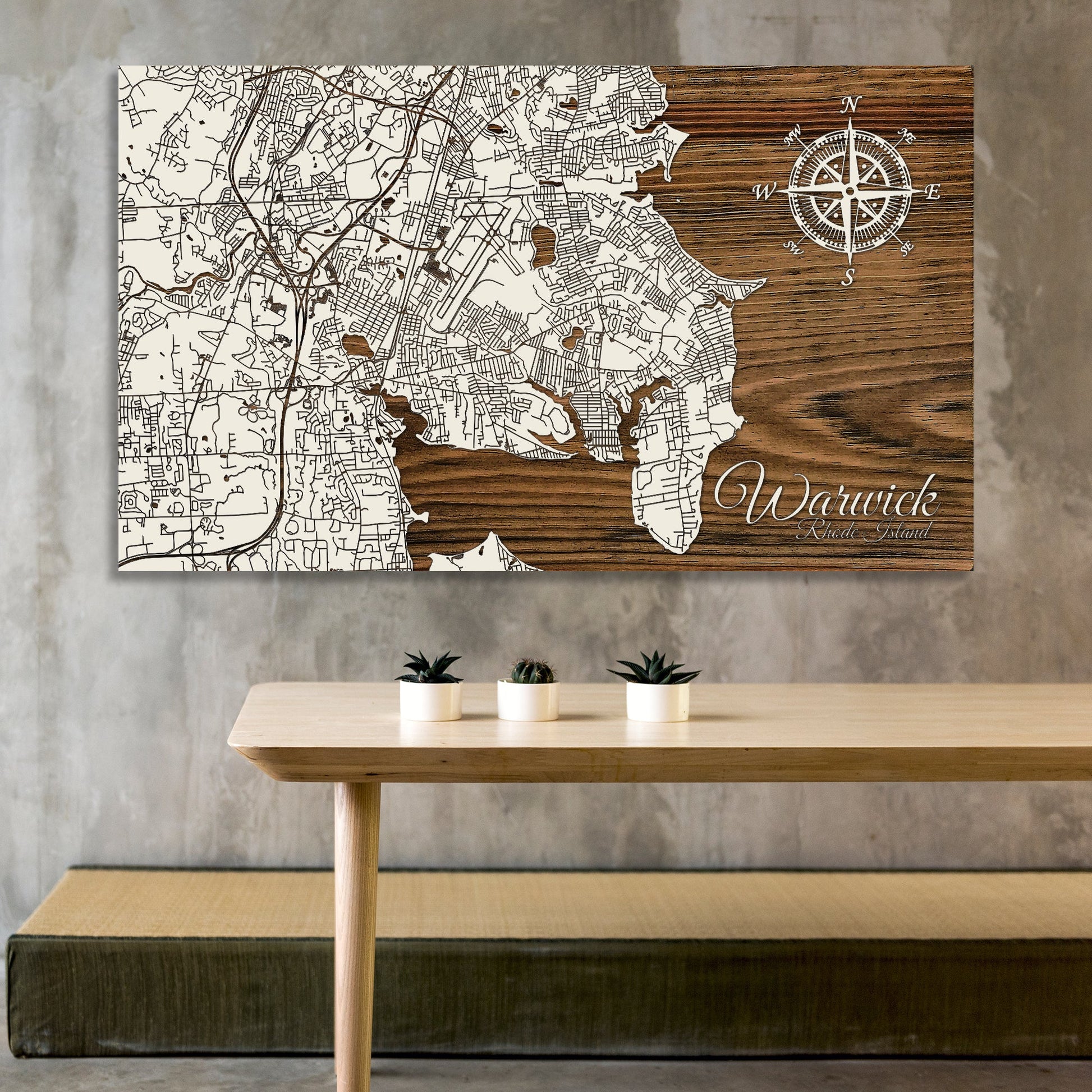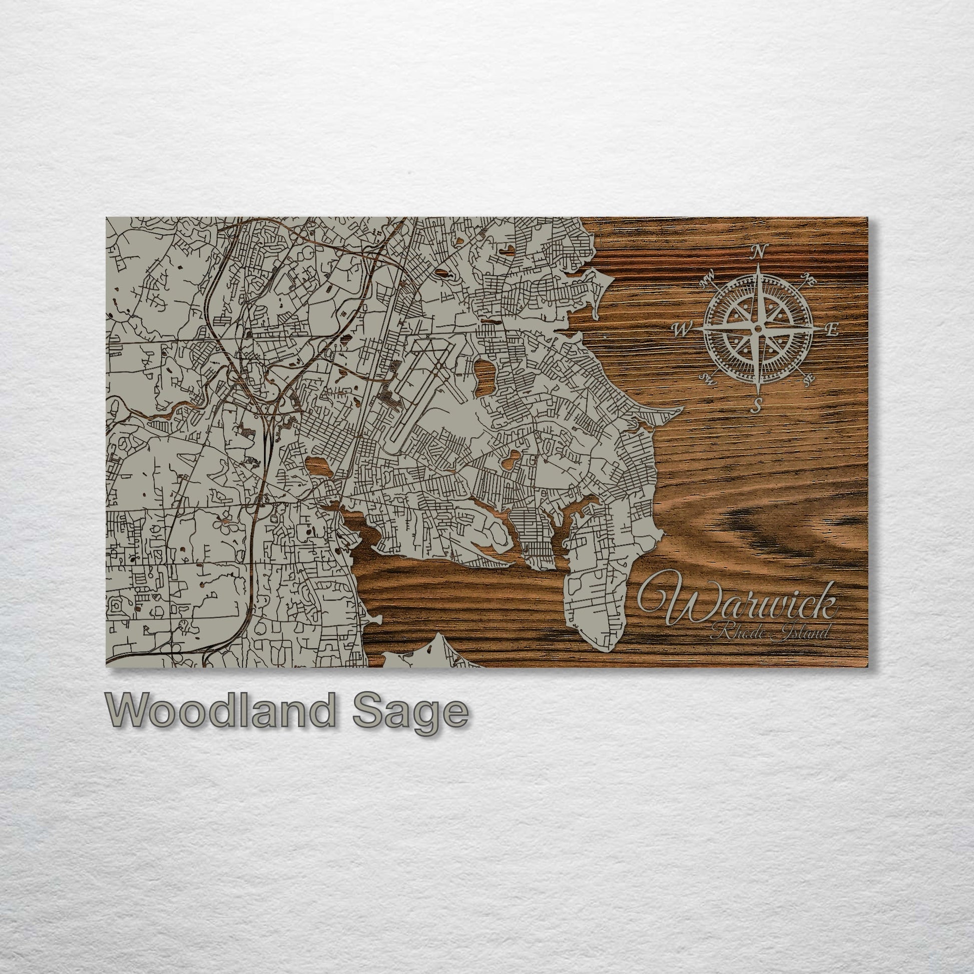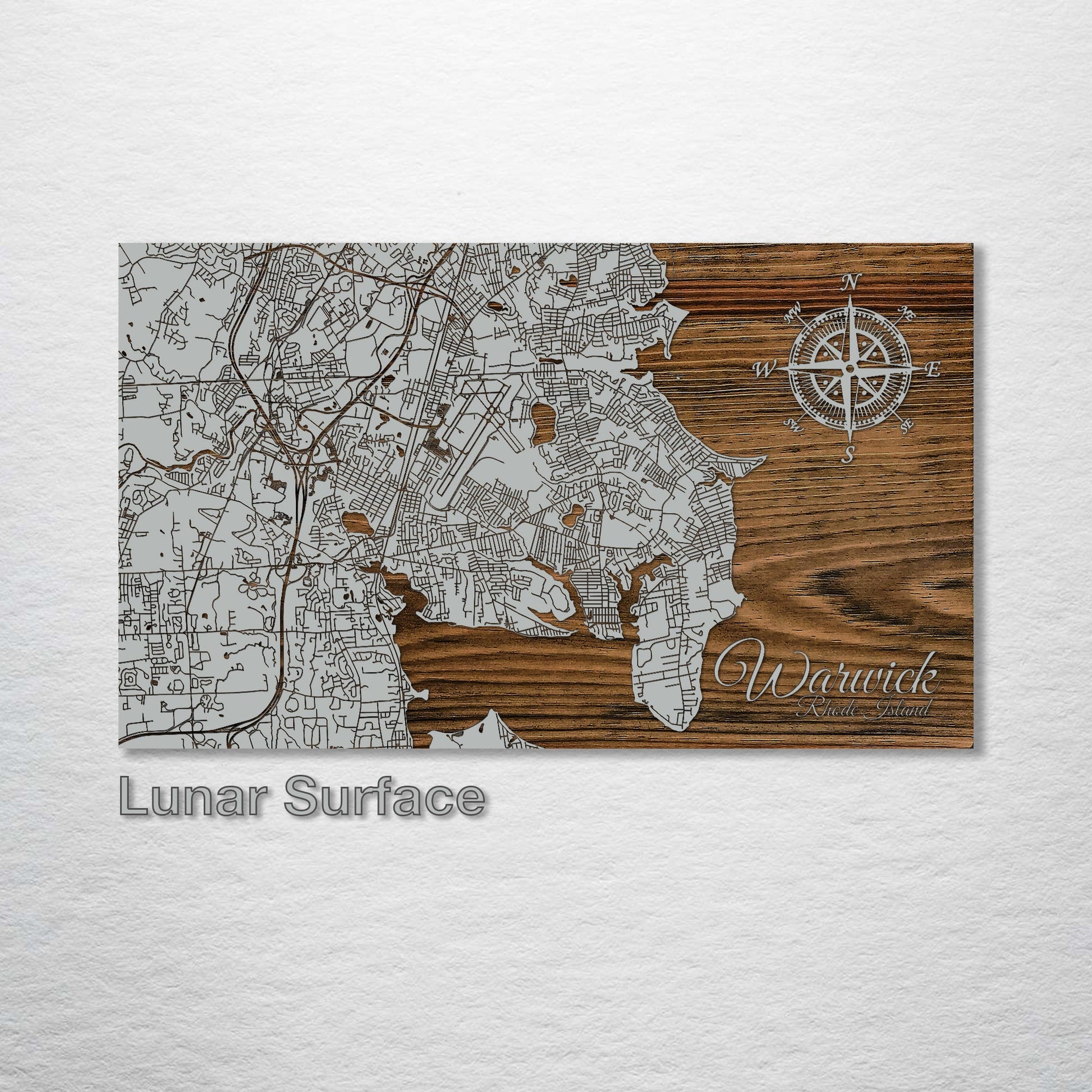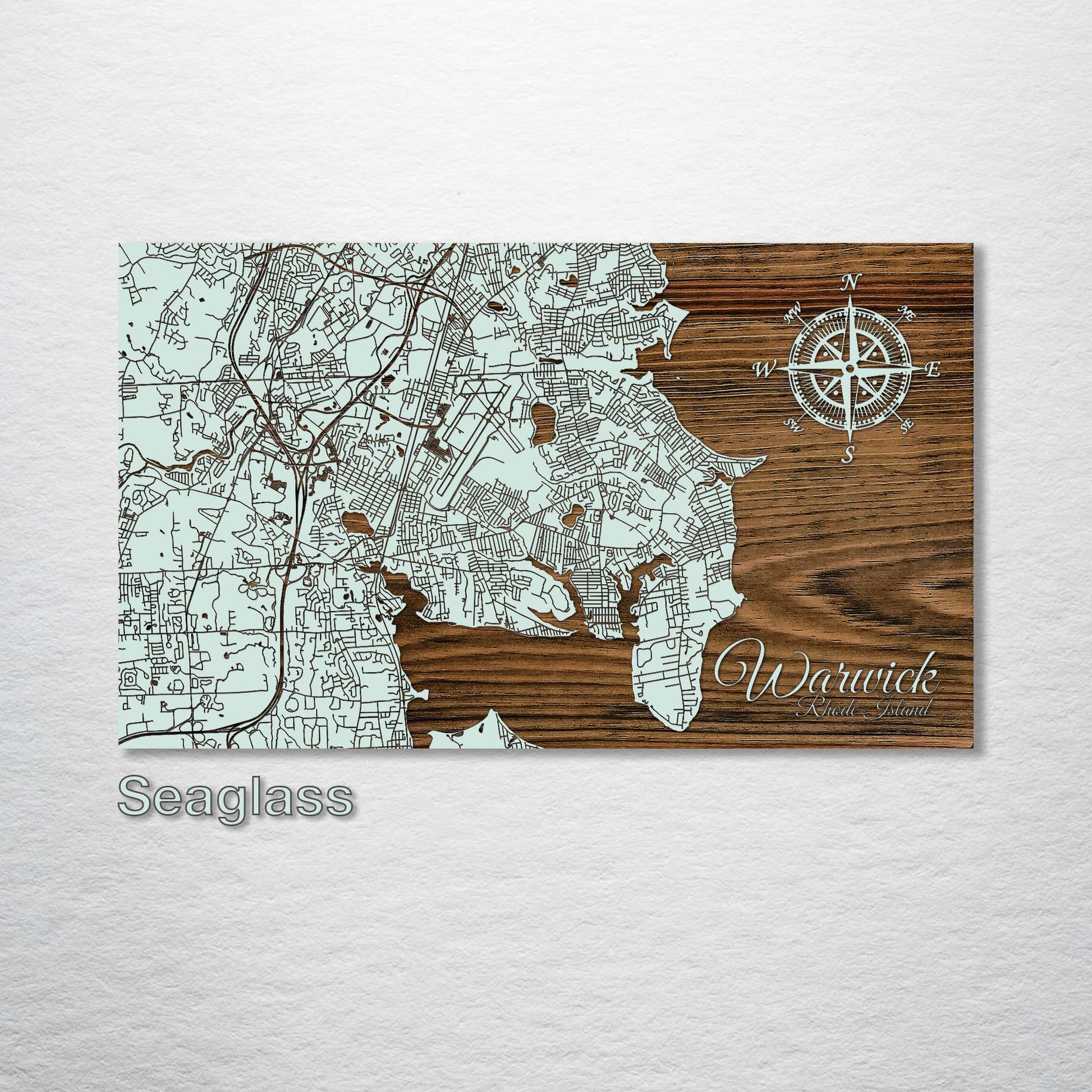This is a street map of Warwick, Rhode Island designed by Fire & Pine artists.