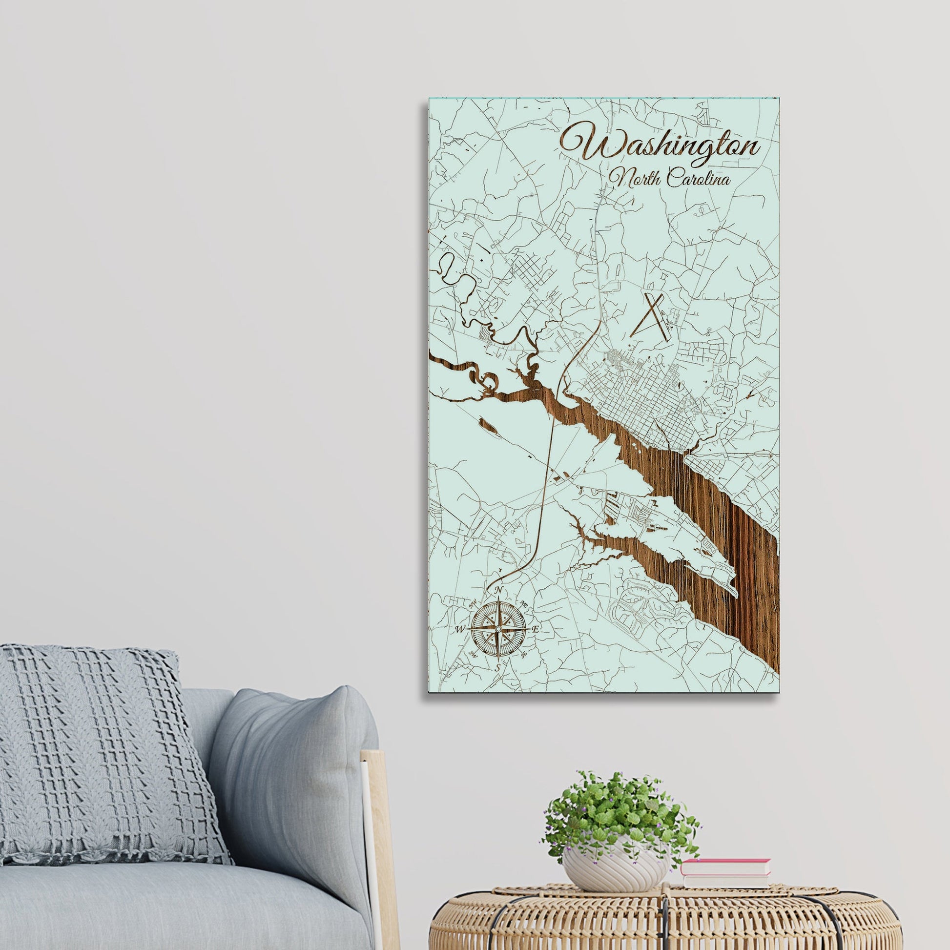 This is a street map of Washington, NC designed by Fire & Pine artists.