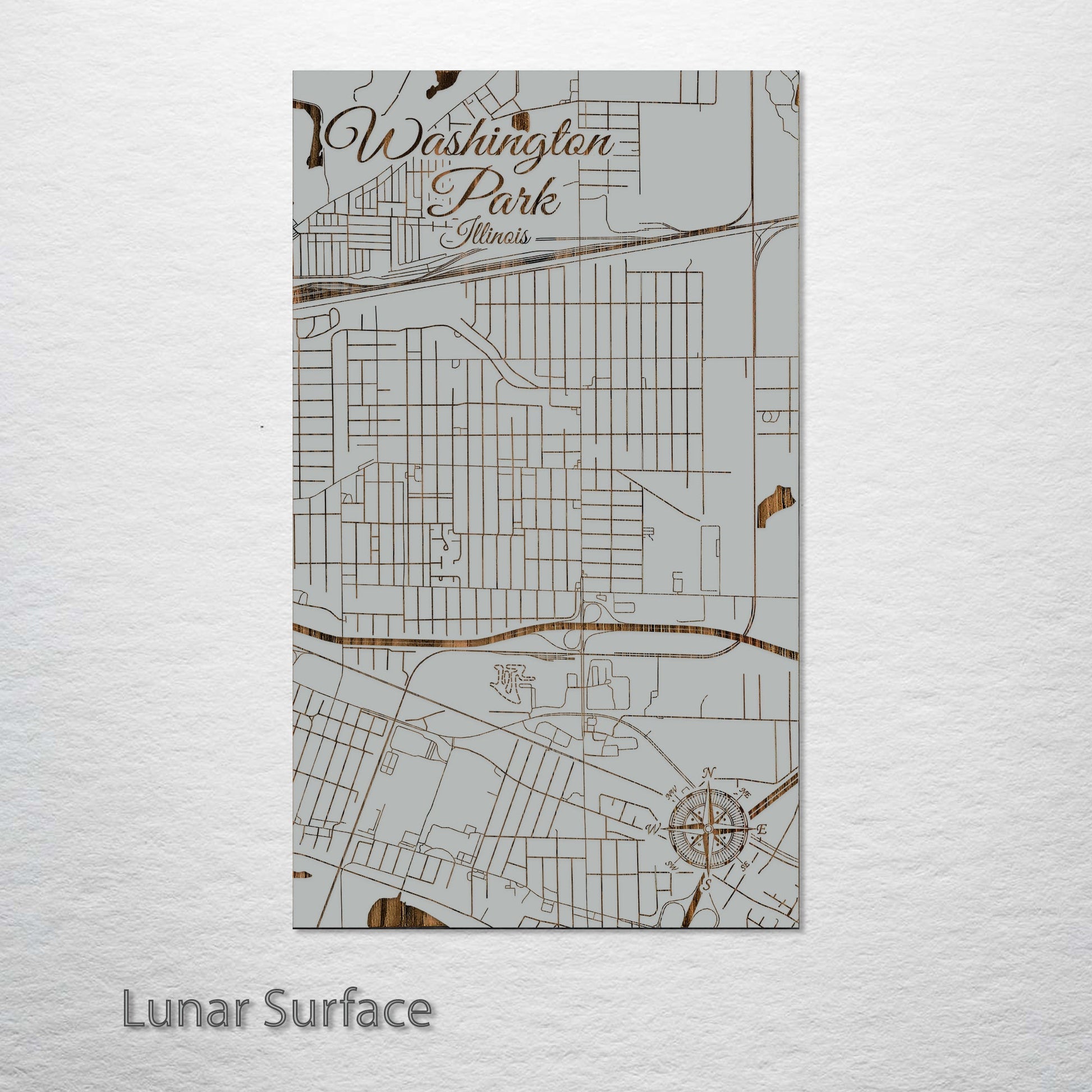 This is a street map of Washington Park, IL designed by Fire & Pine artists.